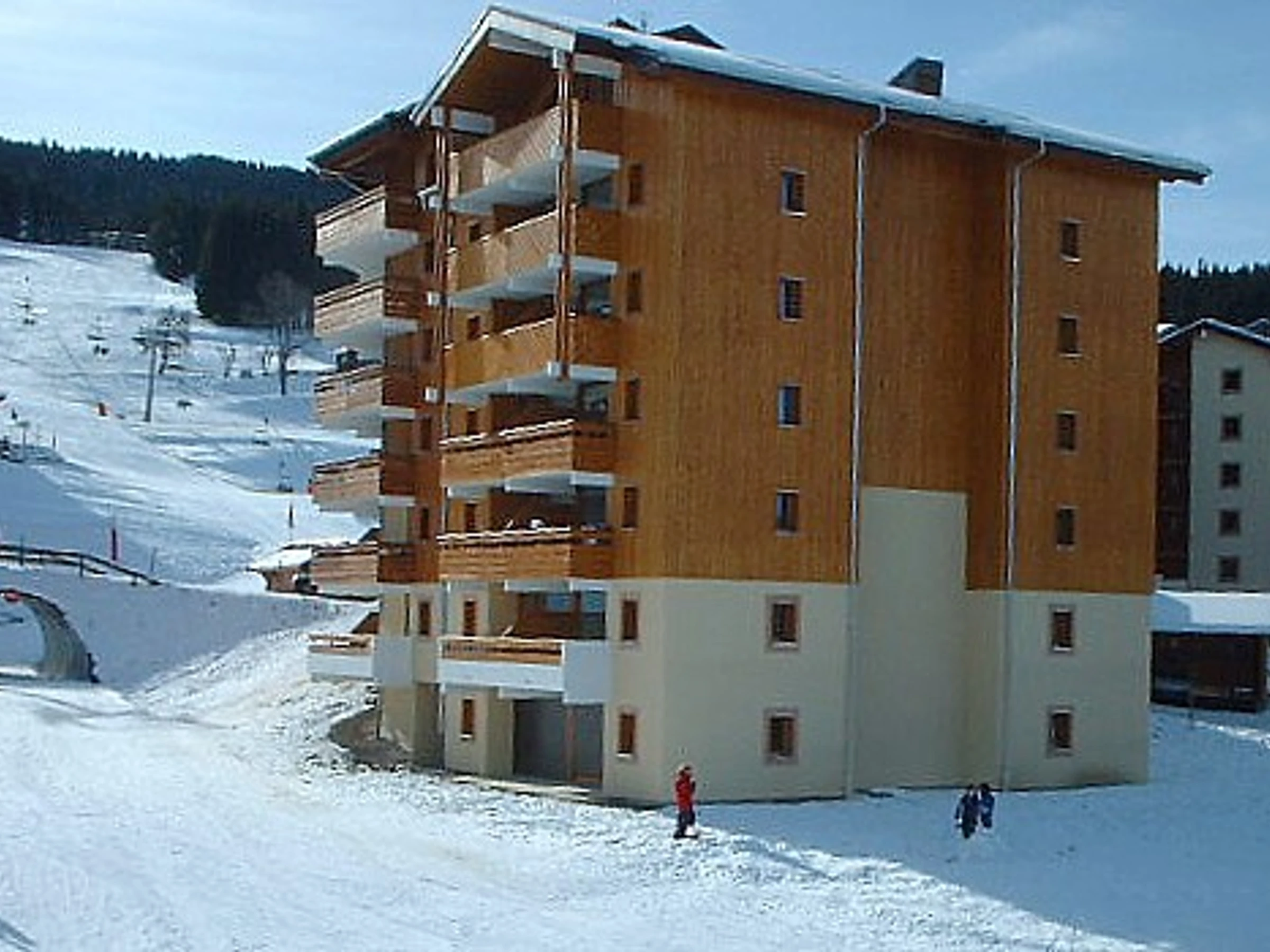 Particulièrement appréciée pour sa proximité immédiate du domaine débutant, elle permet un accès facile aux espaces dédiés aux skieurs novices. Le jardin d’enfants de l’école de ski est situé juste en contrebas de la résidence, un atout majeur pour les familles avec de jeunes enfants souhaitant profiter des premières glisses en toute sérénité.