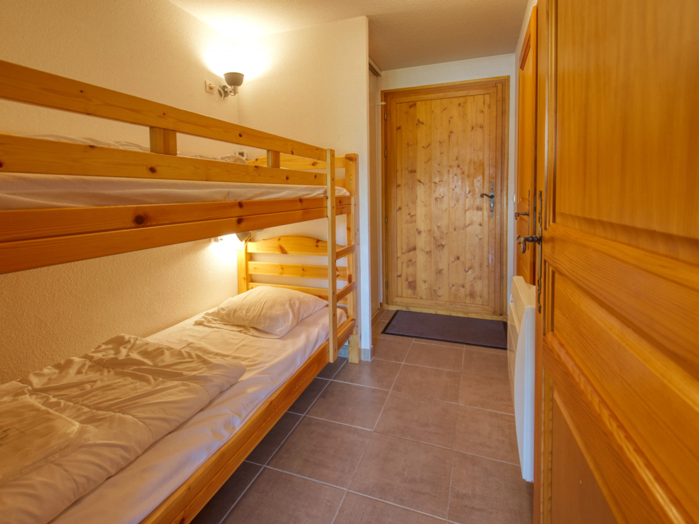 Coin-montagne : lits superposés (80x190 cm) veuillez noter que le couchage en hauteur ne convient pas aux enfants de moins de 6 ans