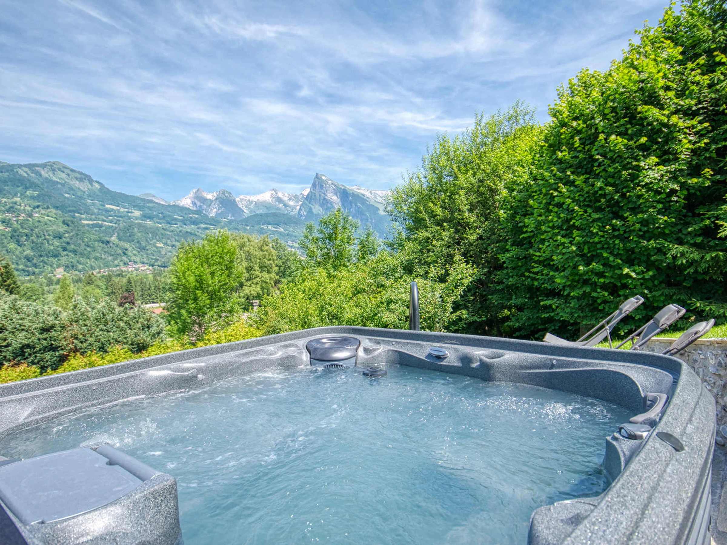 À l’extérieur, un jacuzzi privatif vous attend pour des moments de détente inoubliables, été comme hiver, face aux sommets enneigés ou aux paysages verdoyants.