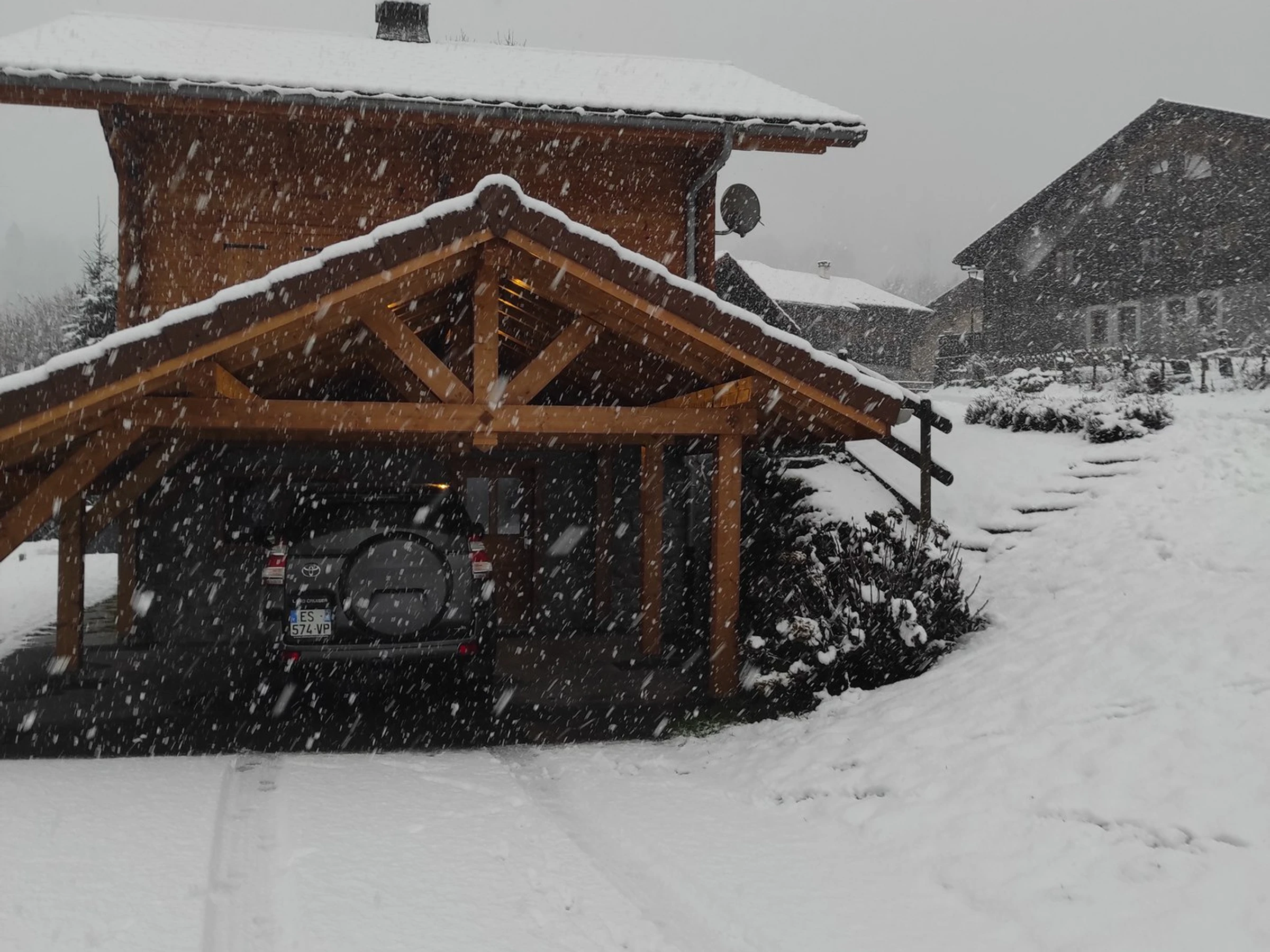 Un abri voiture donne sur l'entrée du chalet au niveau du sous -sol, qui comprend :