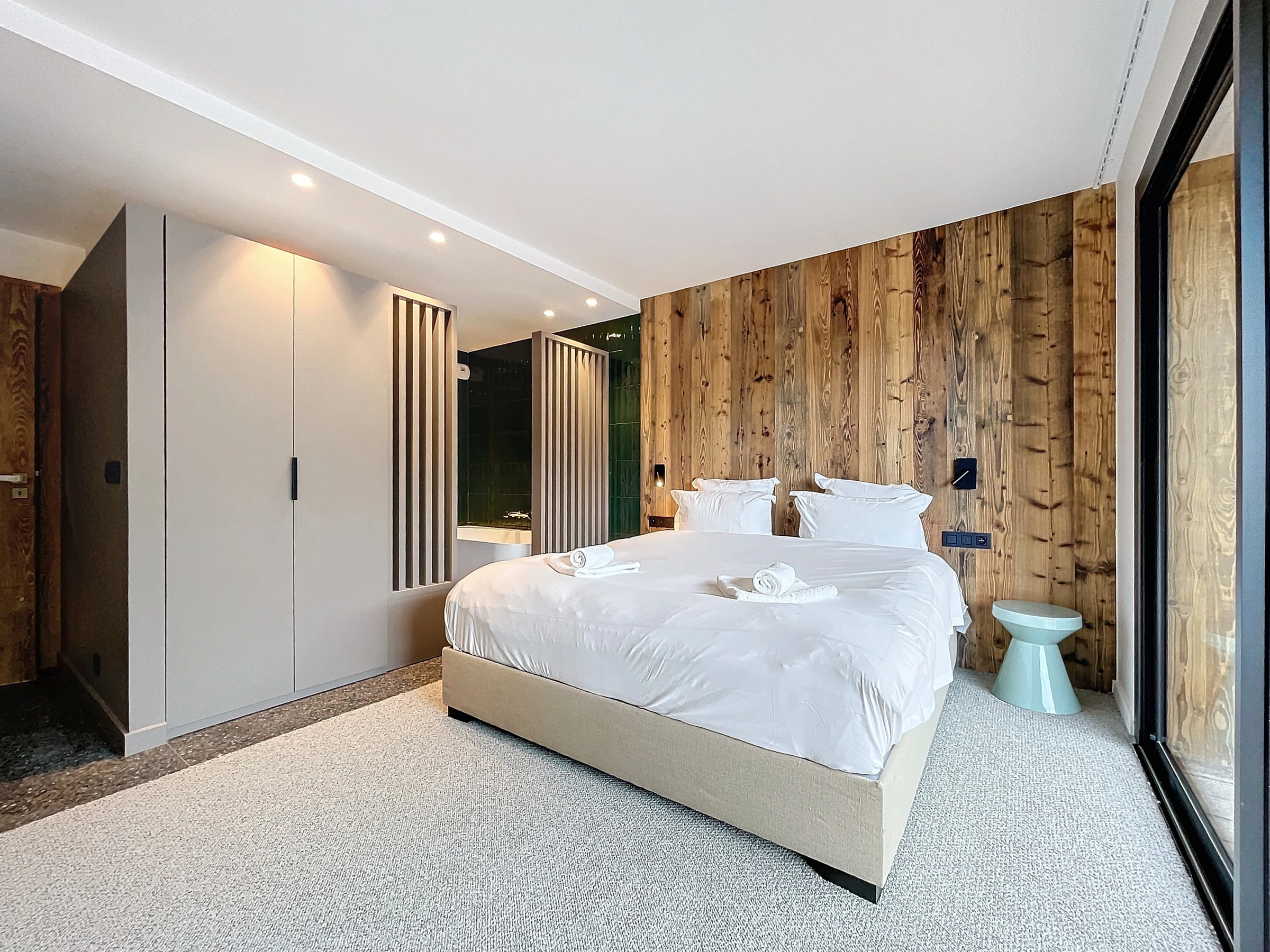 8 pièces + 1 studio de 30 m² indépendant et entièrement équipé, 5 chambres avec lit double 180 x 200 – 1 chambres avec 4 lits 90 x 200 , 1 grand studio avec cuisine équipée, salle de bain et wc , 6 salles de bains - 5 douches et 2 baignoires – 7 wc, Espace Sauna , Salle Cinéma, Table de tennis de table, Cheminée, Sols chauffant, Ski room avec sèche chaussures / gants, 5 places de parking dont deux couvertes, Vue panoramiques