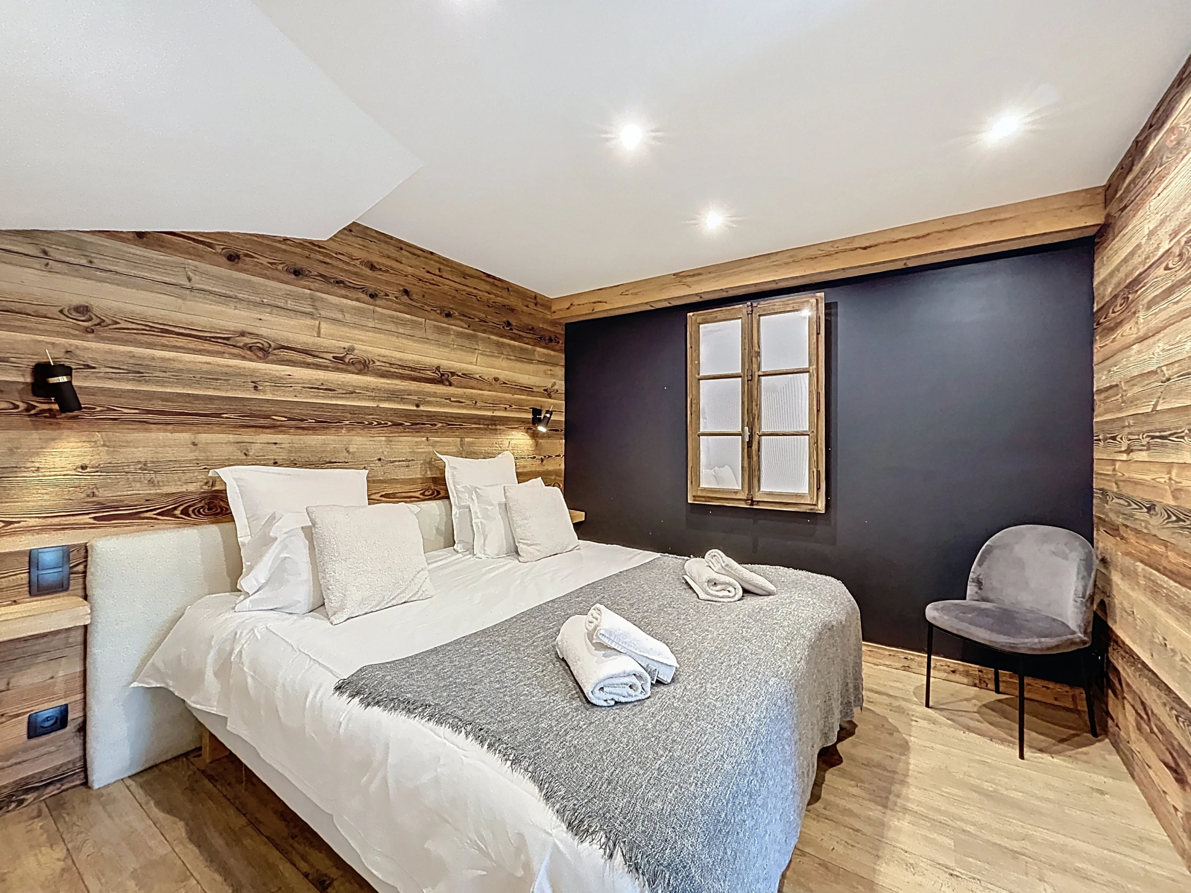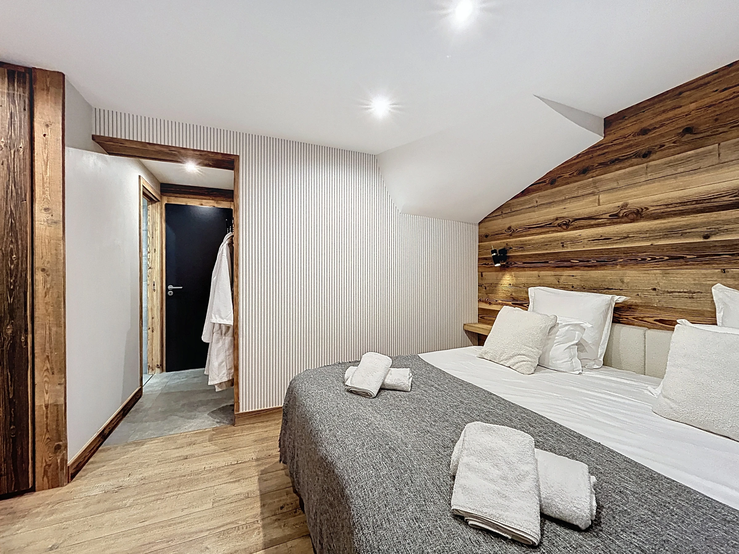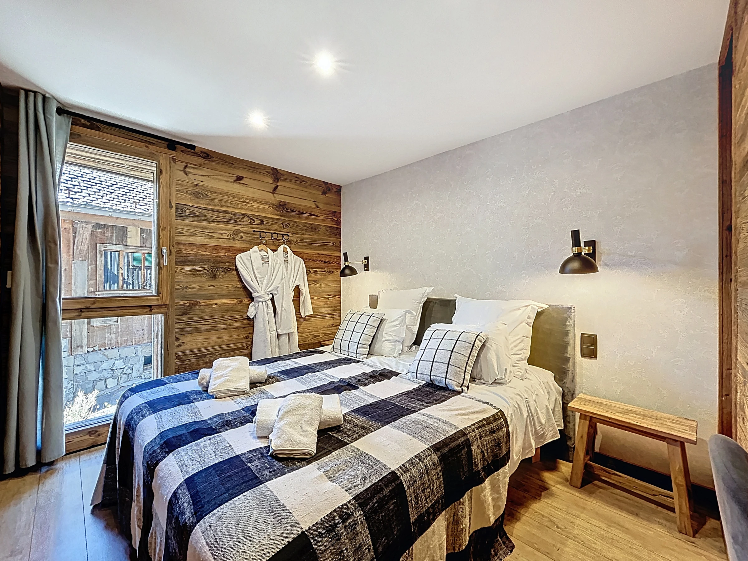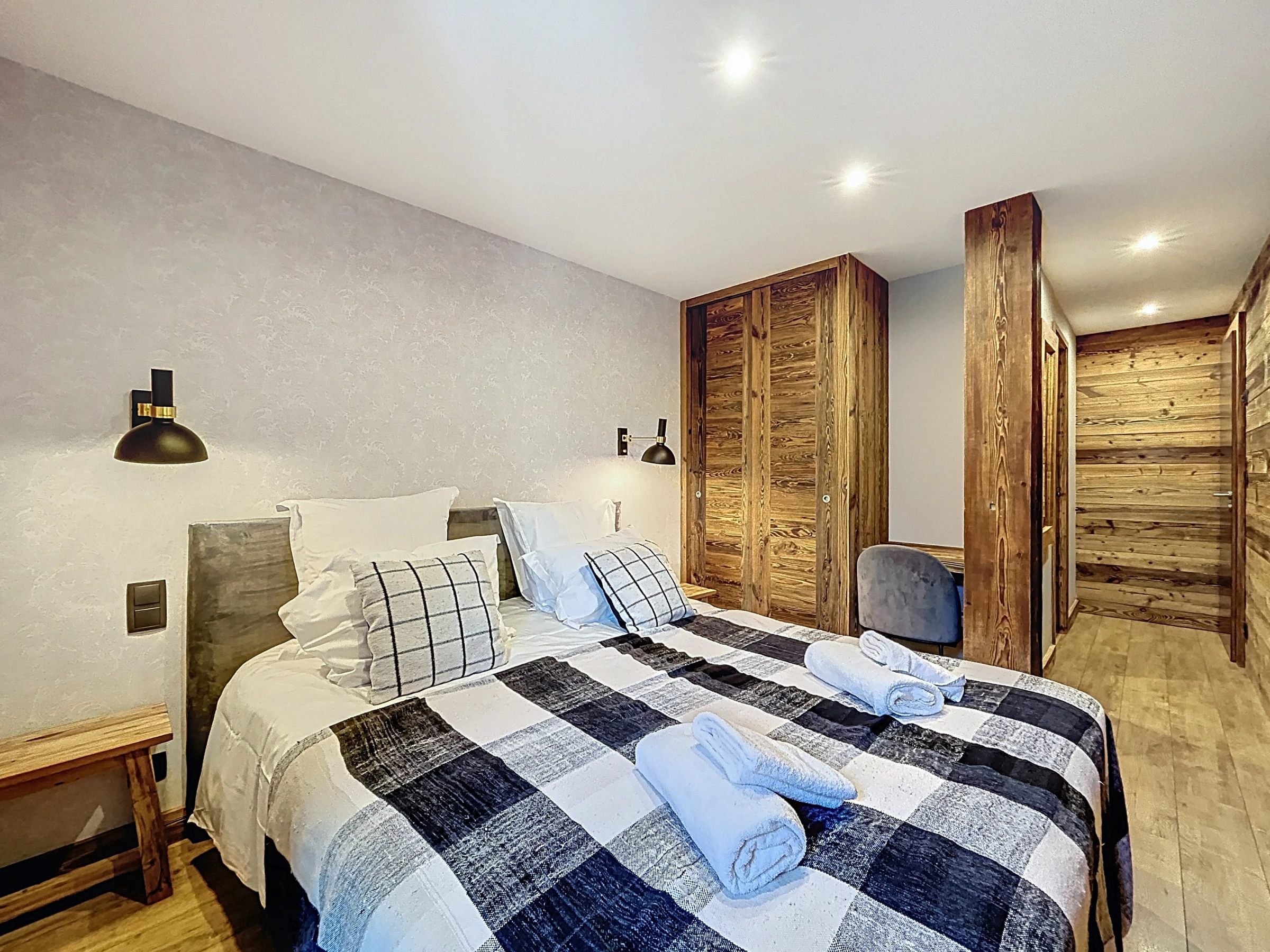 L’Appartement Vigneron incarne l’élégance alpine dans un esprit montagne-chic. Aménagé dans une ancienne grange entièrement rénovée, il marie le charme de l’authenticité à des prestations haut de gamme. Avec ses 105 m², il peut accueillir confortablement jusqu’à huit personnes dans quatre chambres en suite, chacune équipée d’un lit queen size modulable en deux lits simples. Trois salles de douche et une salle de bain complètent l’agencement, offrant confort et intimité à tous les occupants.