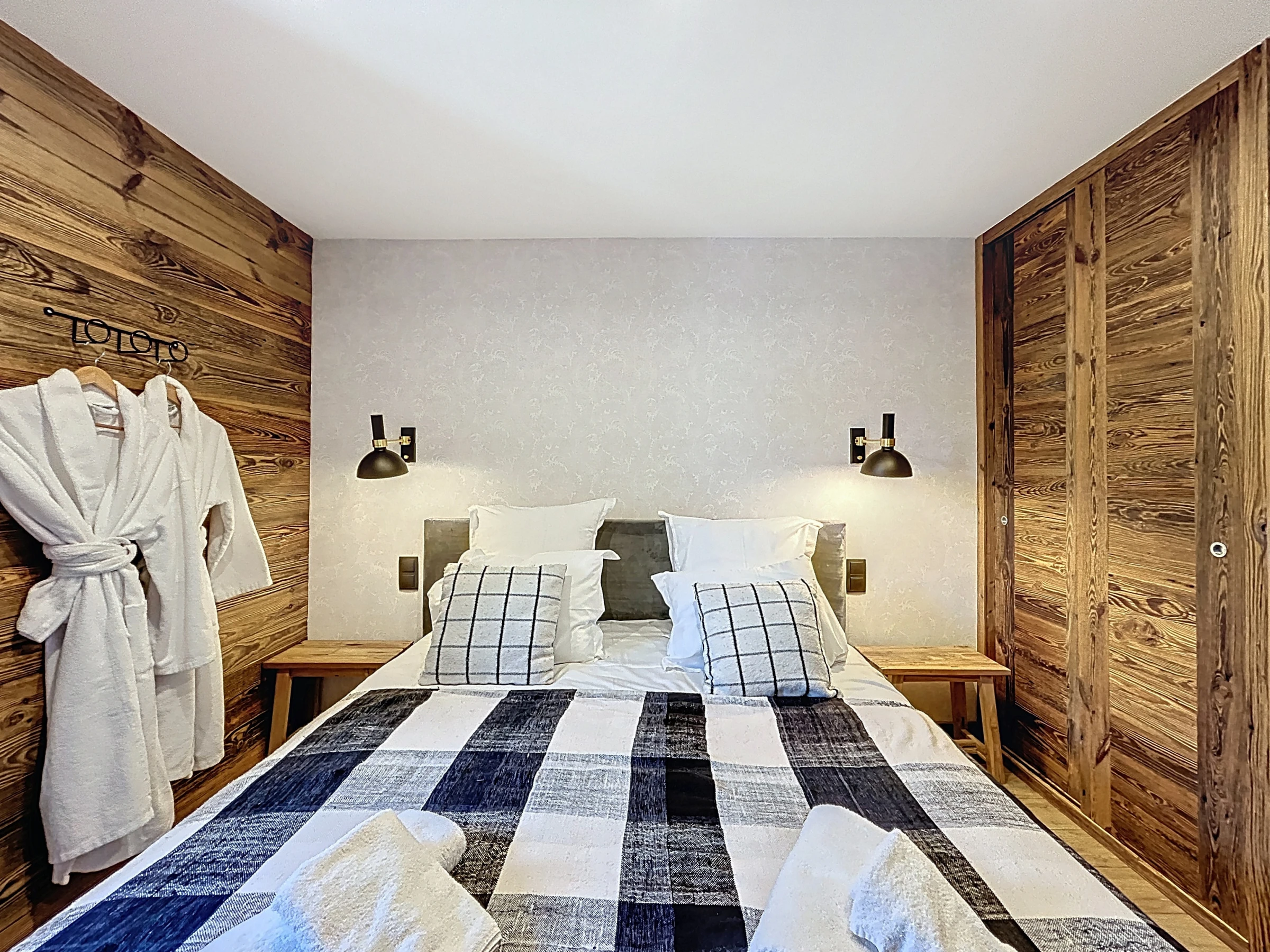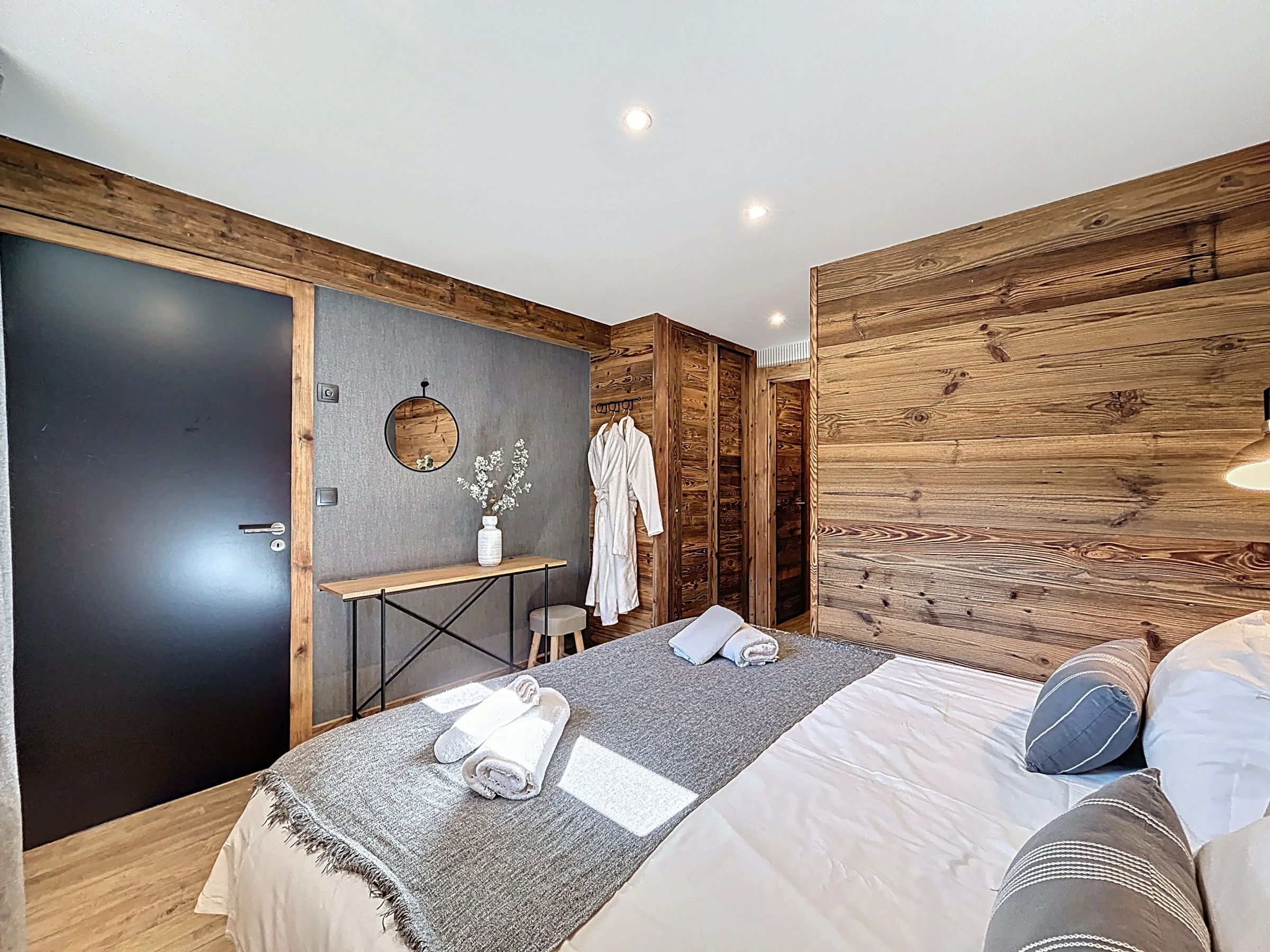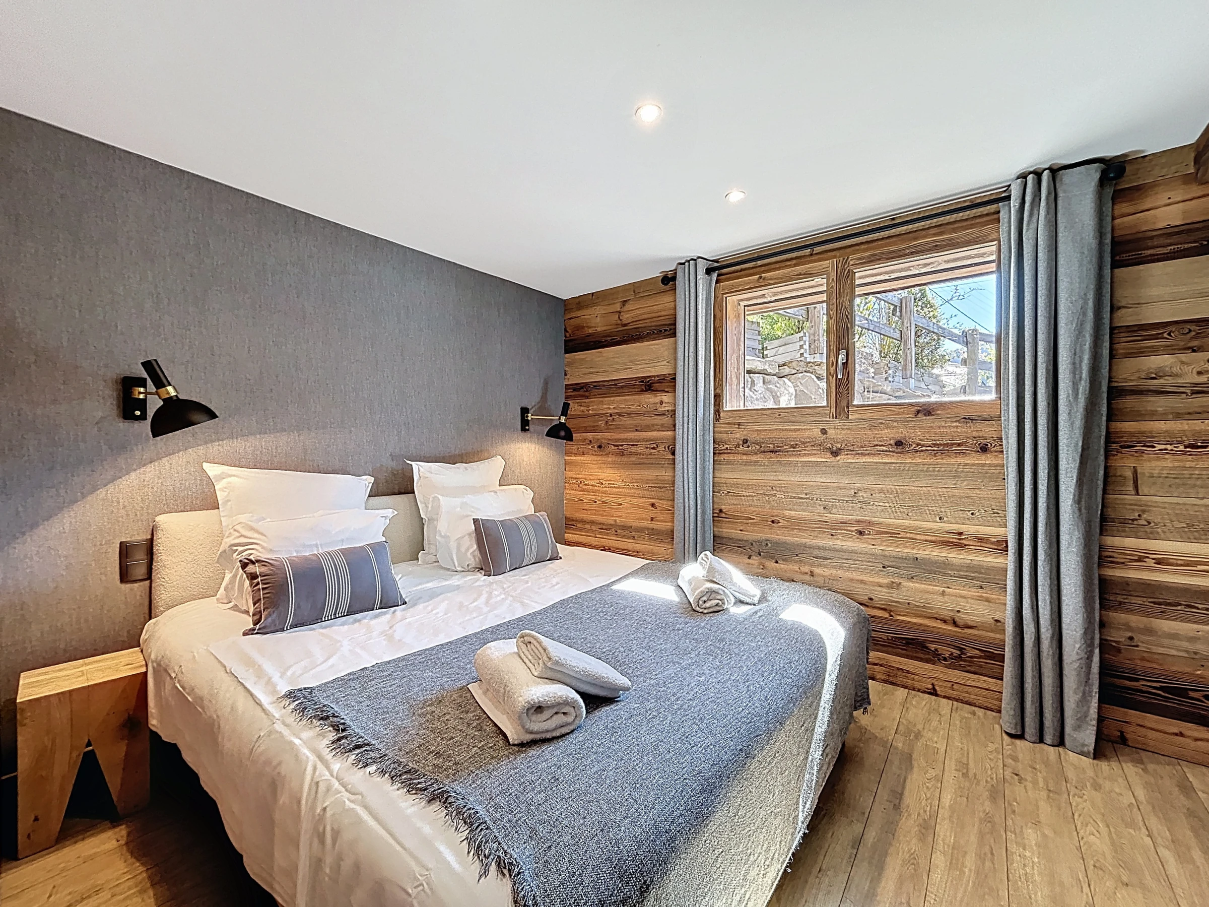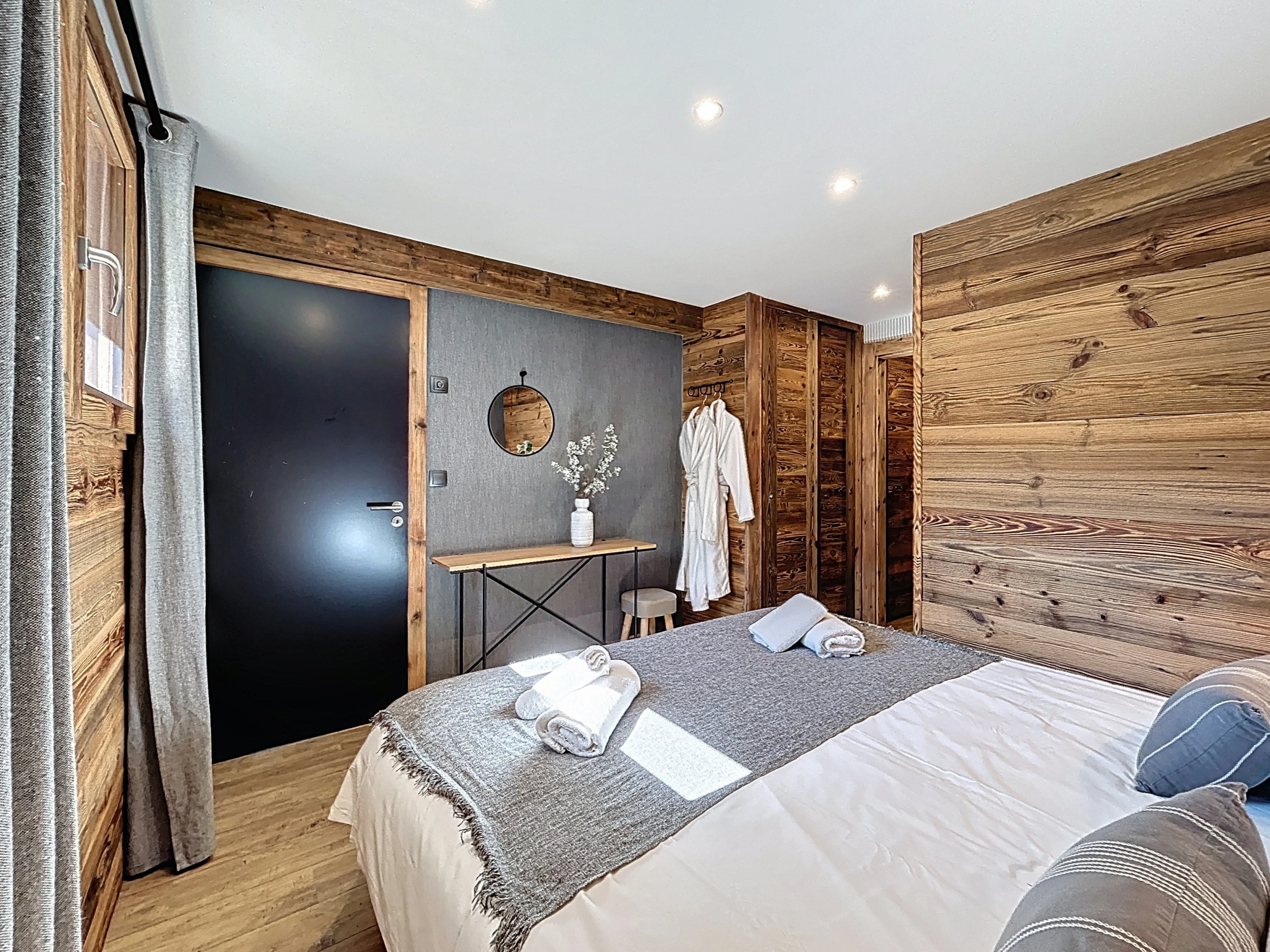 L’Appartement Vigneron incarne l’élégance alpine dans un esprit montagne-chic. Aménagé dans une ancienne grange entièrement rénovée, il marie le charme de l’authenticité à des prestations haut de gamme. Avec ses 105 m², il peut accueillir confortablement jusqu’à huit personnes dans quatre chambres en suite, chacune équipée d’un lit queen size modulable en deux lits simples. Trois salles de douche et une salle de bain complètent l’agencement, offrant confort et intimité à tous les occupants.