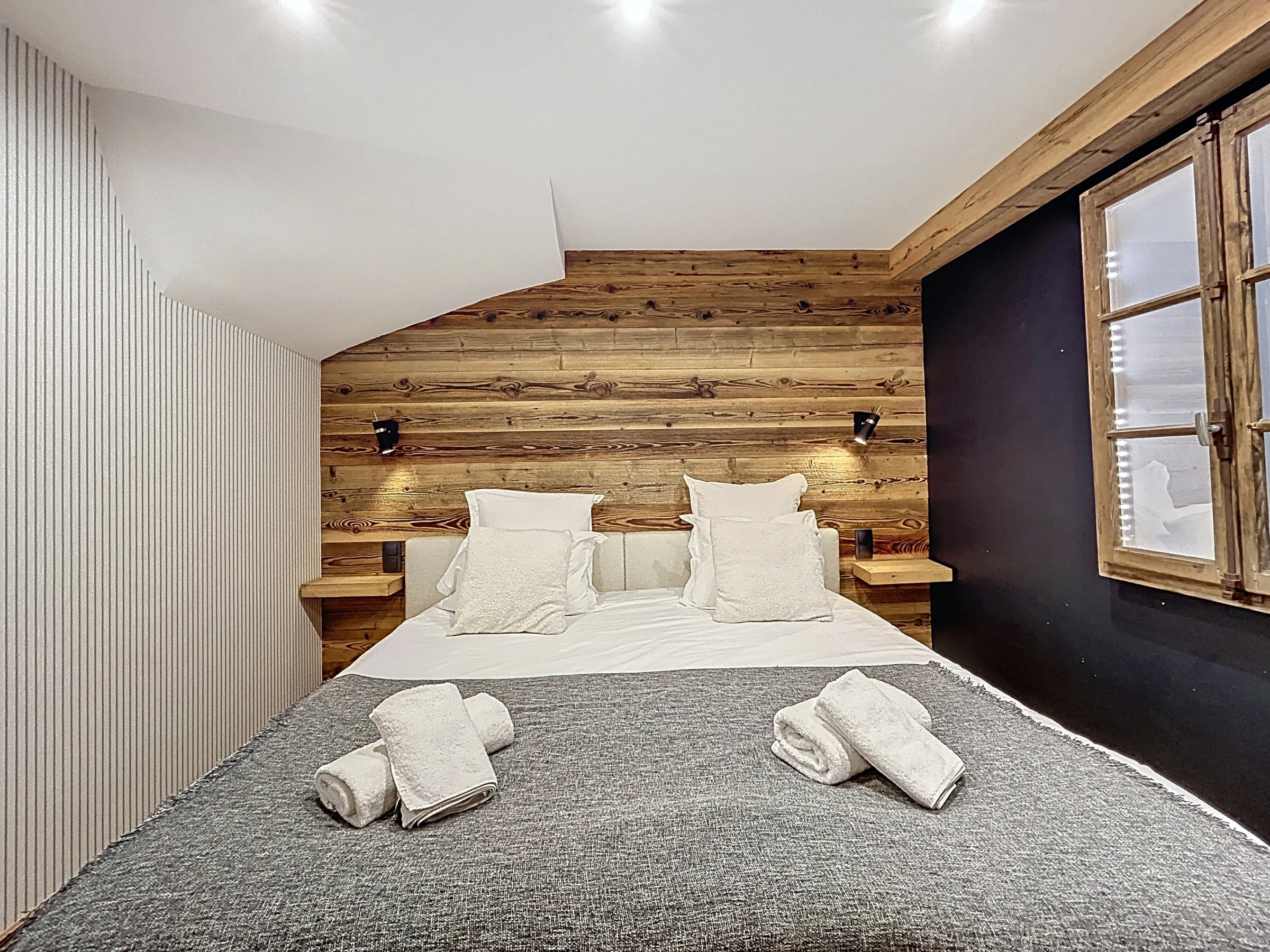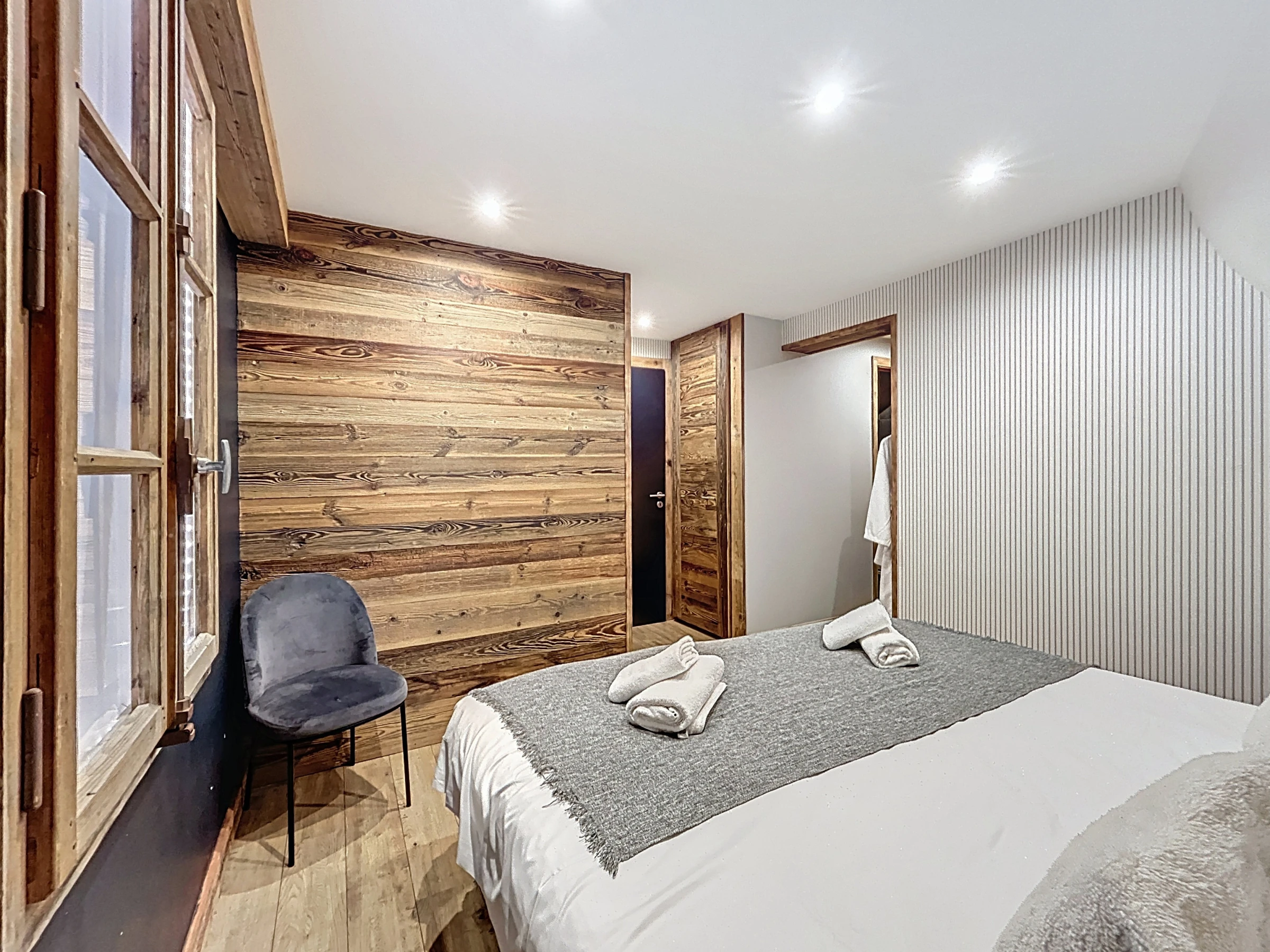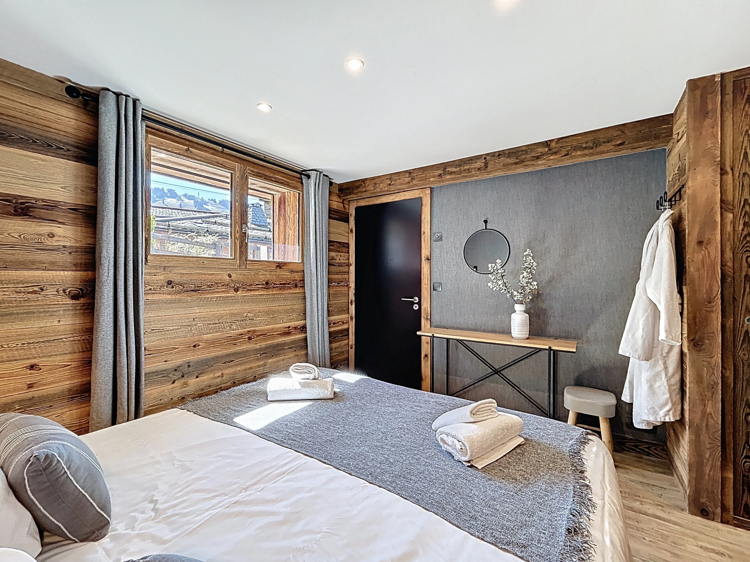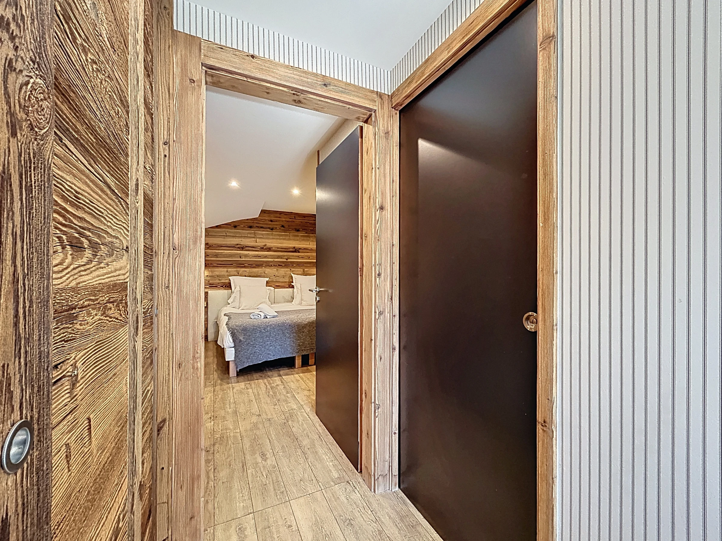 L’Appartement Vigneron incarne l’élégance alpine dans un esprit montagne-chic. Aménagé dans une ancienne grange entièrement rénovée, il marie le charme de l’authenticité à des prestations haut de gamme. Avec ses 105 m², il peut accueillir confortablement jusqu’à huit personnes dans quatre chambres en suite, chacune équipée d’un lit queen size modulable en deux lits simples. Trois salles de douche et une salle de bain complètent l’agencement, offrant confort et intimité à tous les occupants.