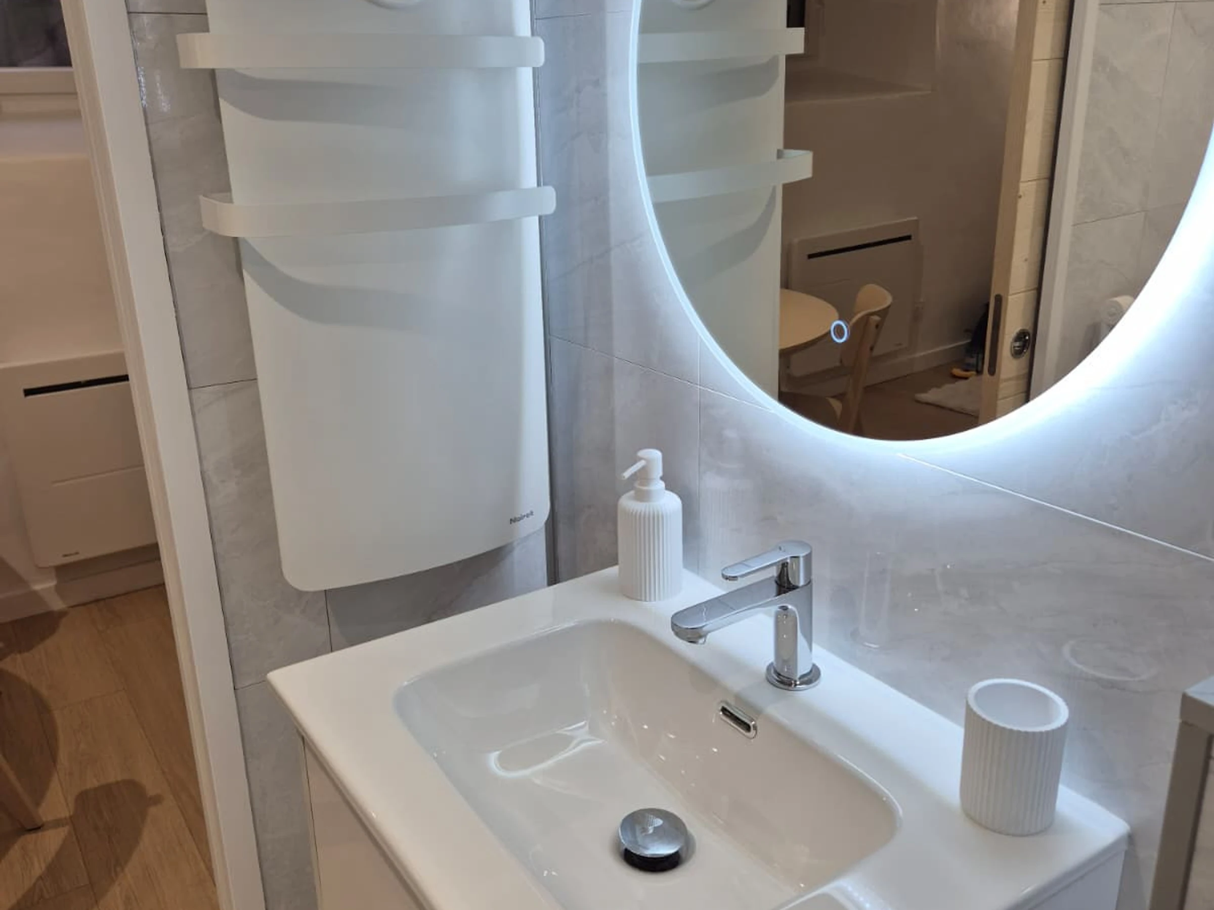 - Cuisine équipée: plaques de cuisson, four, cafetière à filtre , réfrigérateur, lave-vaisselle, bouilloire, Grille-pain, Micro-onde