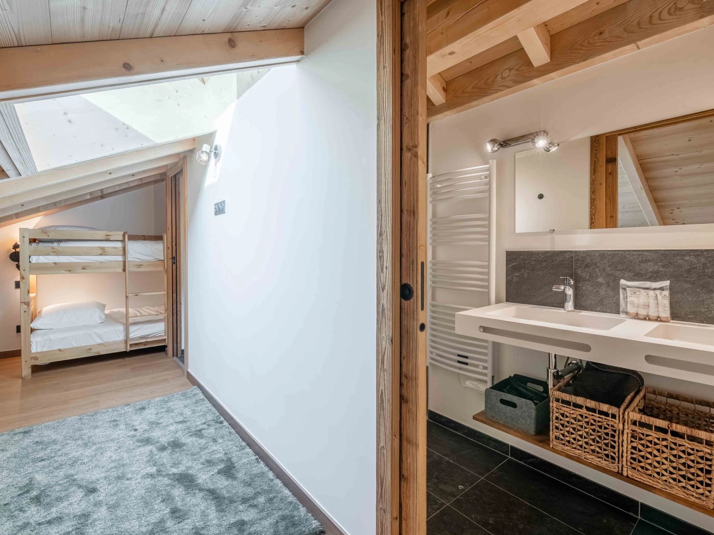 - Espace libre comprenant un WC indépendant, une salle de douche et un lit superposé (uniquement pour enfant)