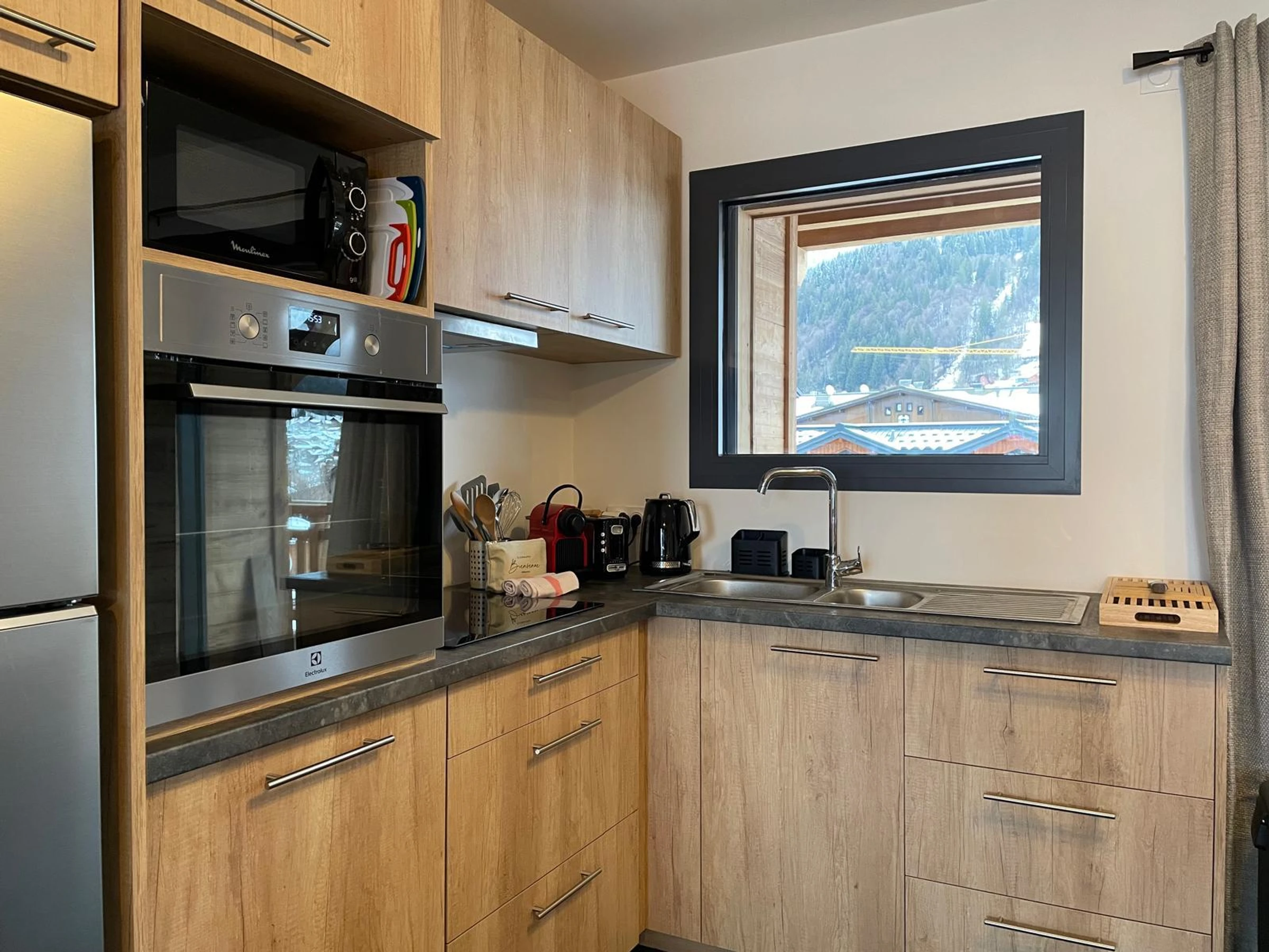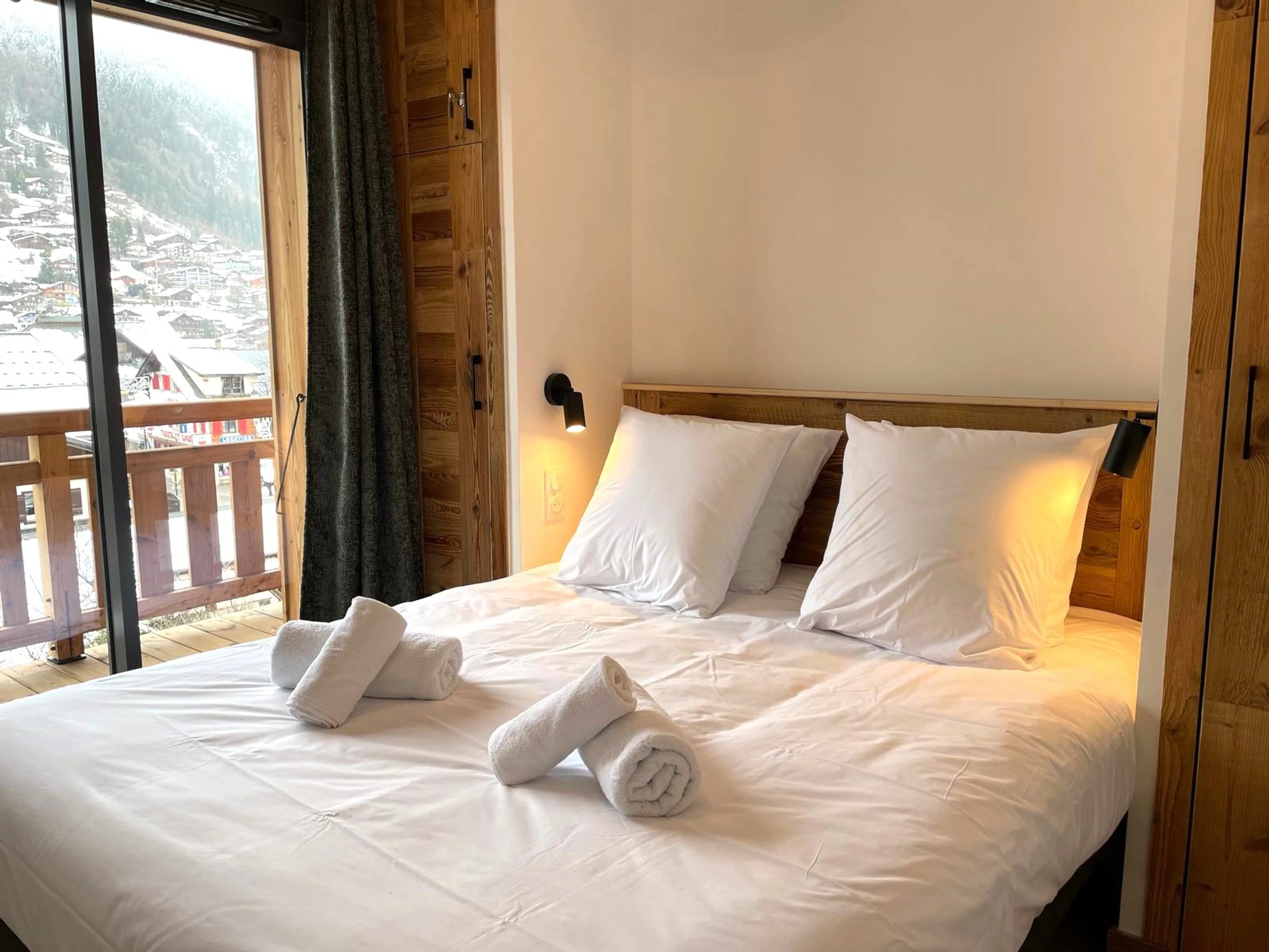 Appartement neuf 4 pièces , pouvant accueillir 6 personnes (4 adultes + 2 enfants), situé au 2ème étage d’une résidence avec ascenseur, au pied des pistes et en plein centre de Morzine.