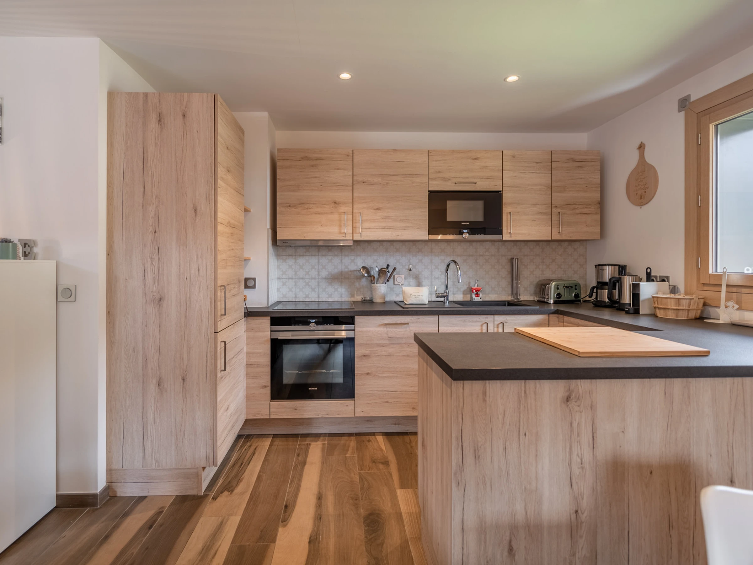 - Cuisine équipée (hotte, plaque à induction, lave-vaisselle, lave-linge, four, cafetières, grille-pain, micro-onde, bouilloire, appareil à raclette, appareil à fondue, plancha)