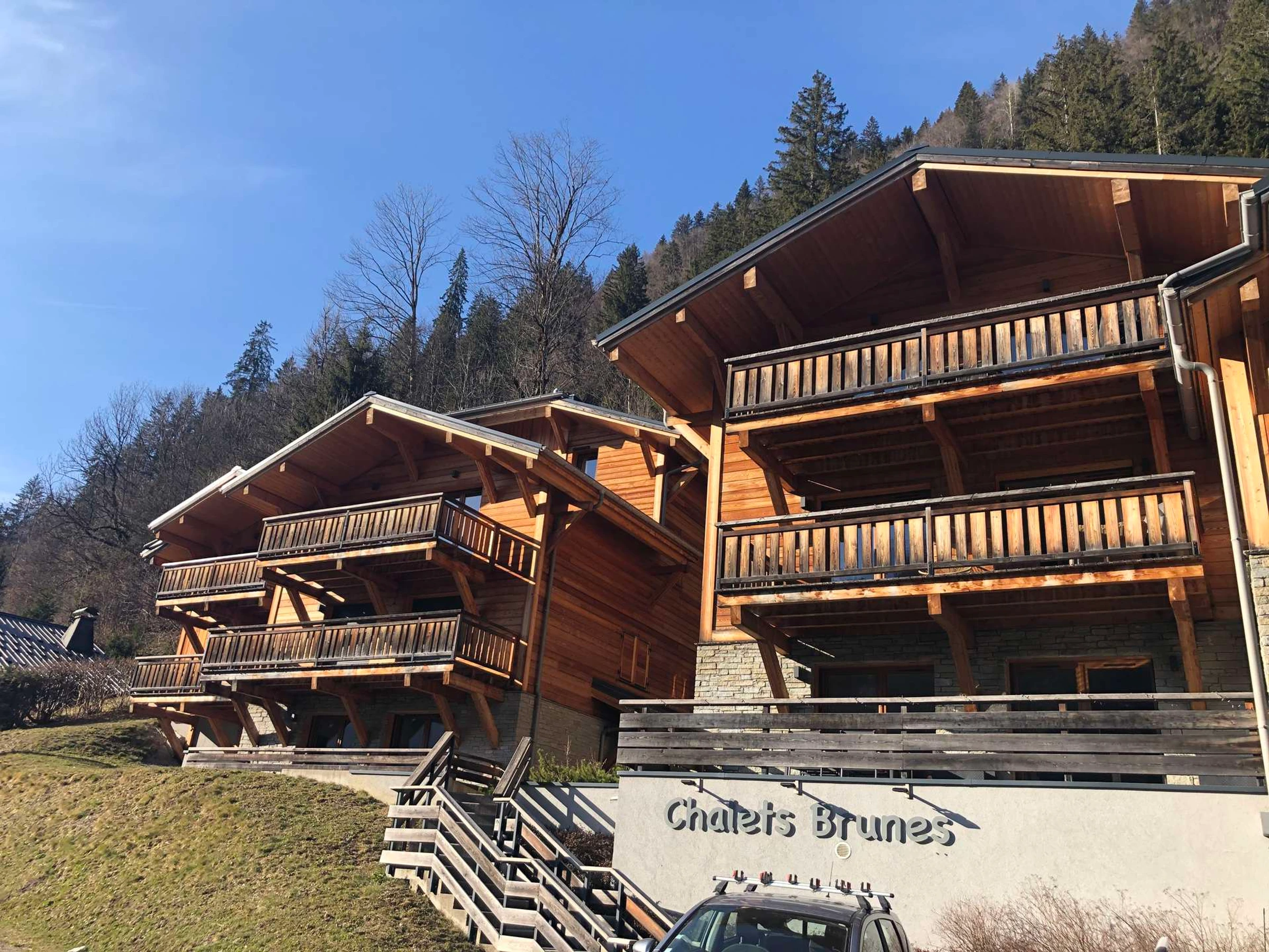 Appartement dans la résidence Chalets Brunes, construction neuve située au départ de la route d'Avoriaz, à moins de 10 minutes à pied du centre bourg de Morzine et à quelques minutes en voiture du téléphérique des Prodains (liaison Morzine-Avoriaz).