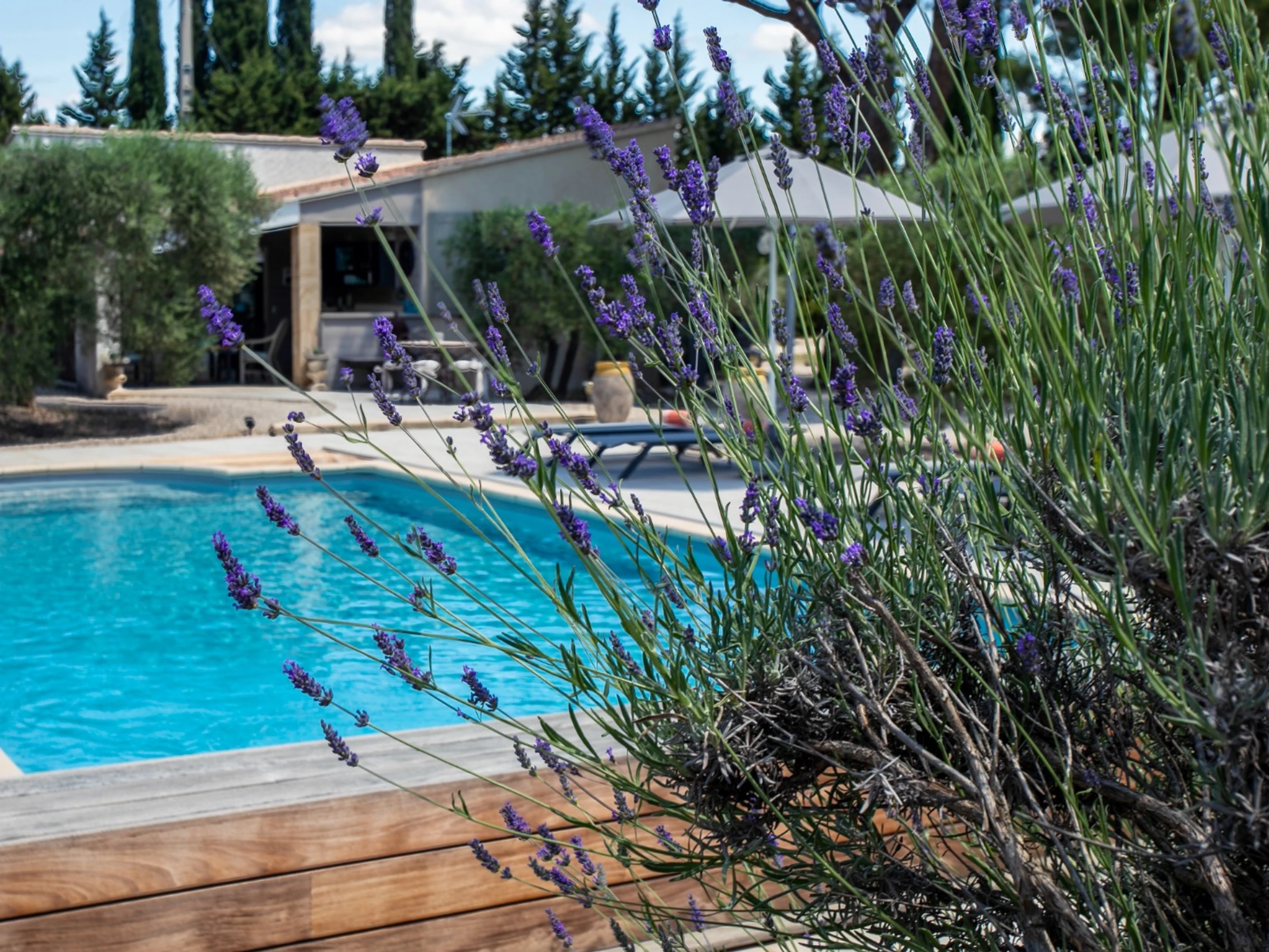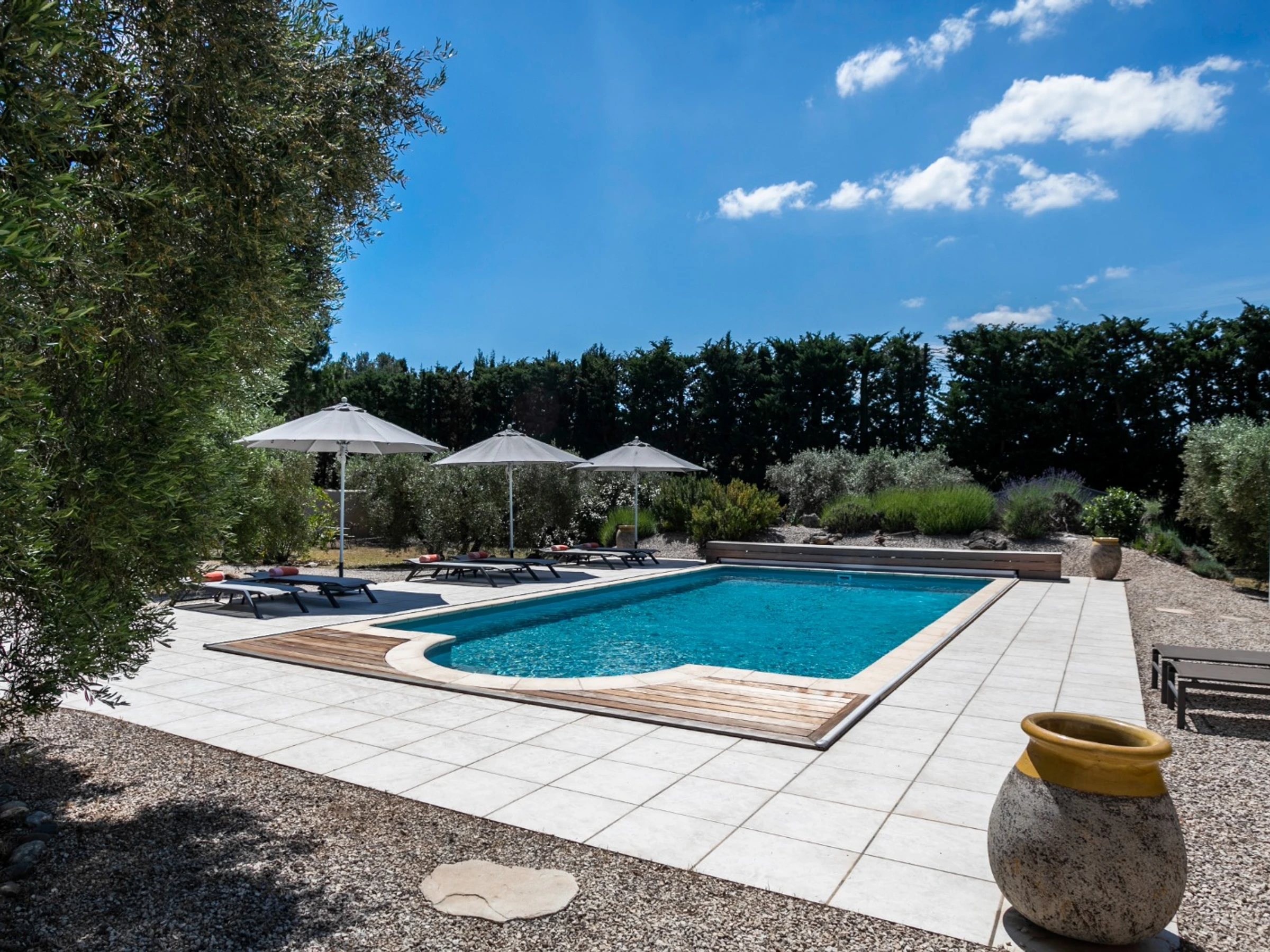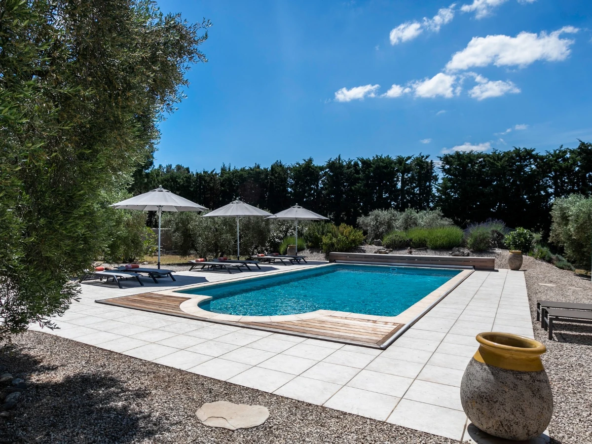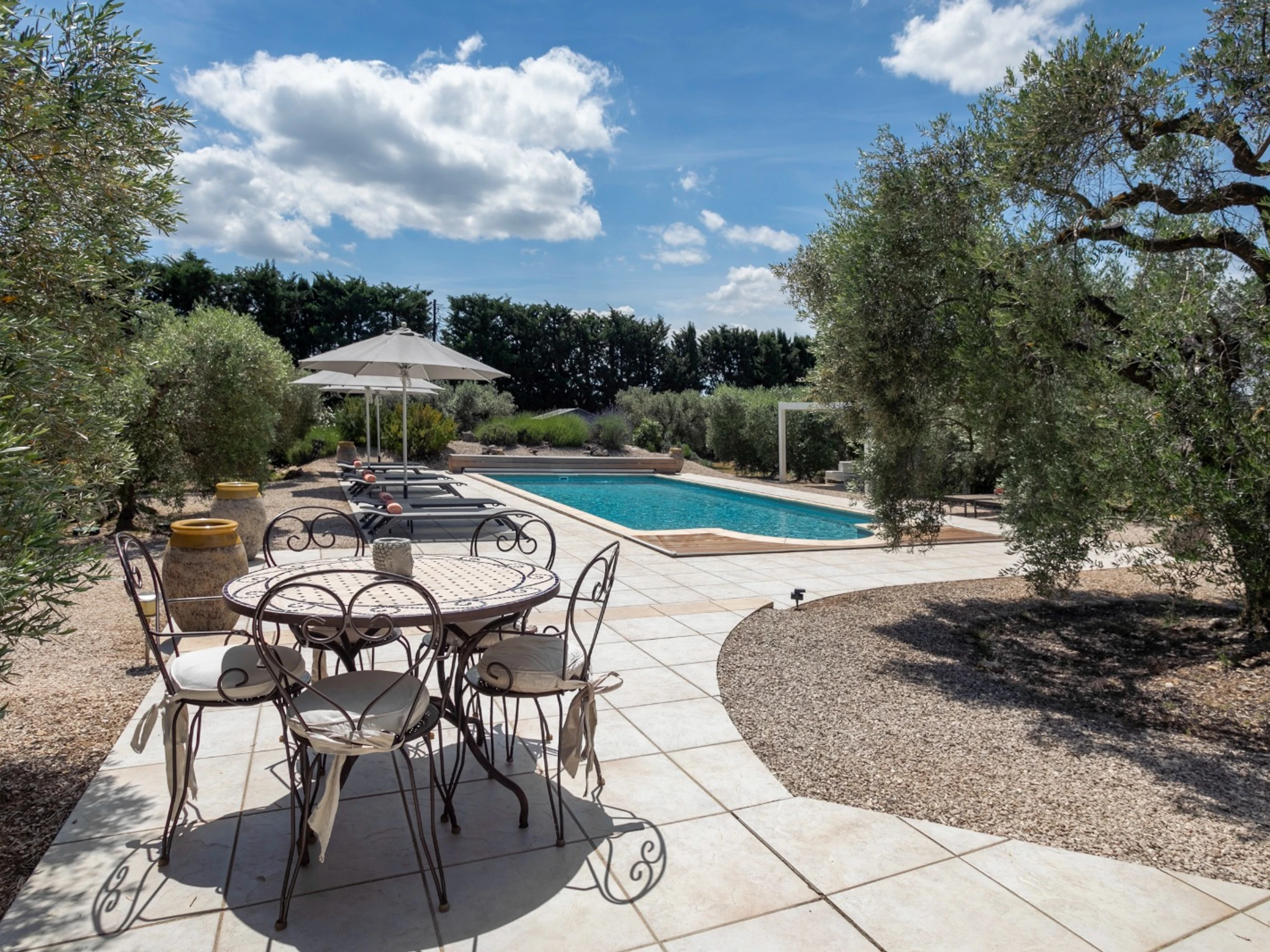 Les atouts extérieurs de cette maison sont sans doute la grande piscine de 13 x 5m entourée de transats et de verdure, parfaite pour se rafraîchir ou lézarder au soleil. Un pool house aménagé idéal pour savourer un cocktail, lire un livre ou simplement profiter de la douceur provençale à l’ombre. Le mas est niché au cœur d’un environnement calme et verdoyant, avec des oliviers à perte de vue et des paysages typiques de la région.