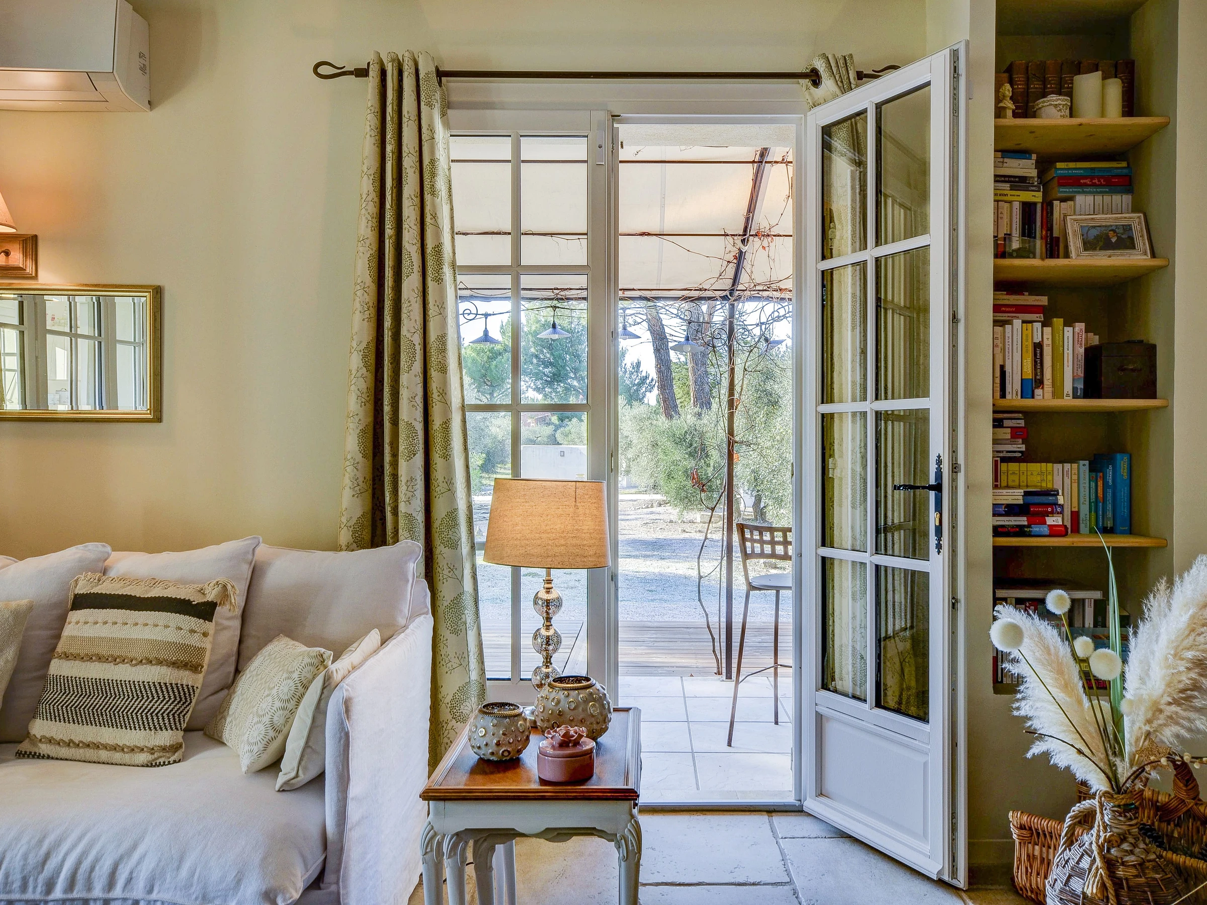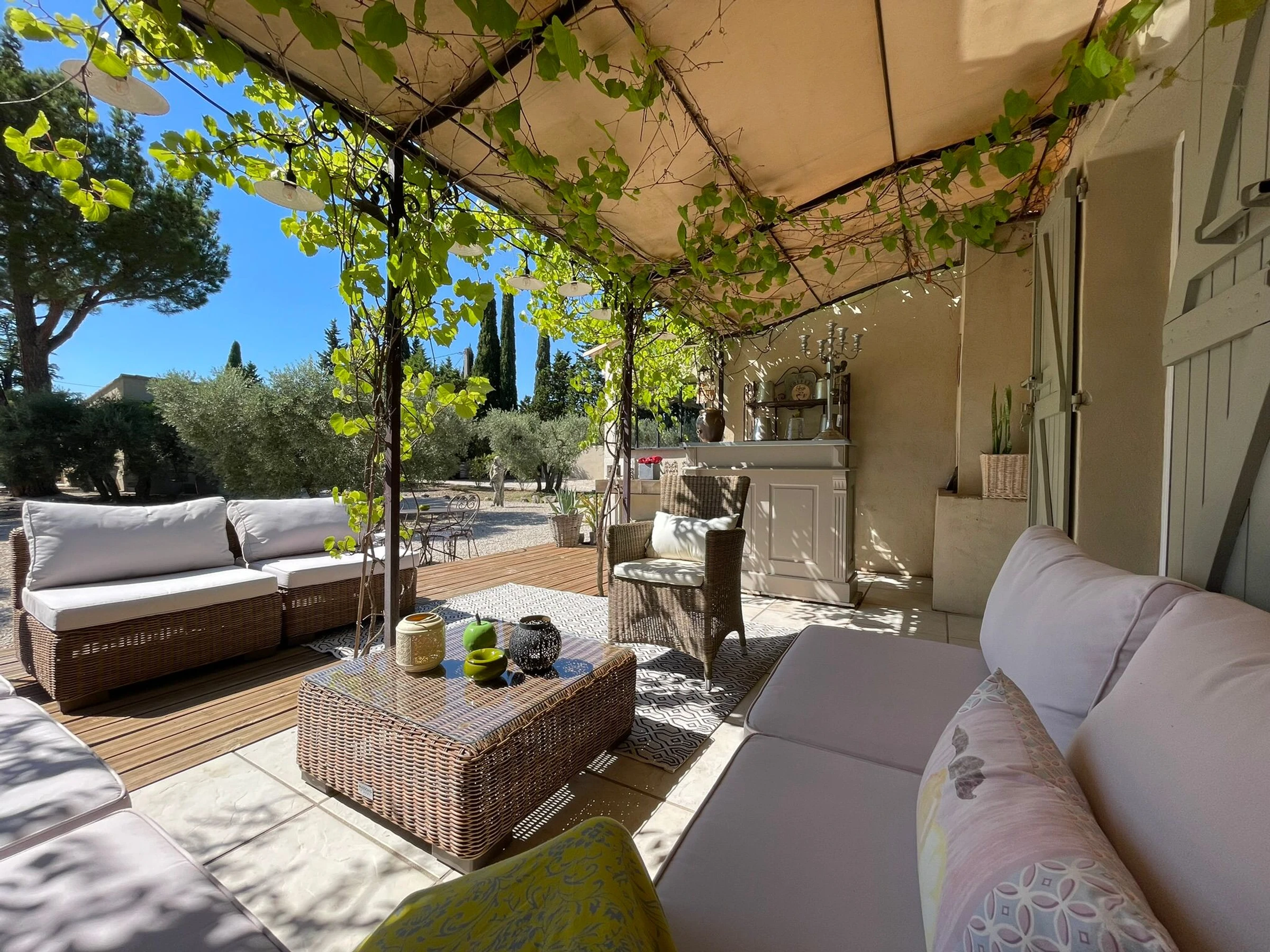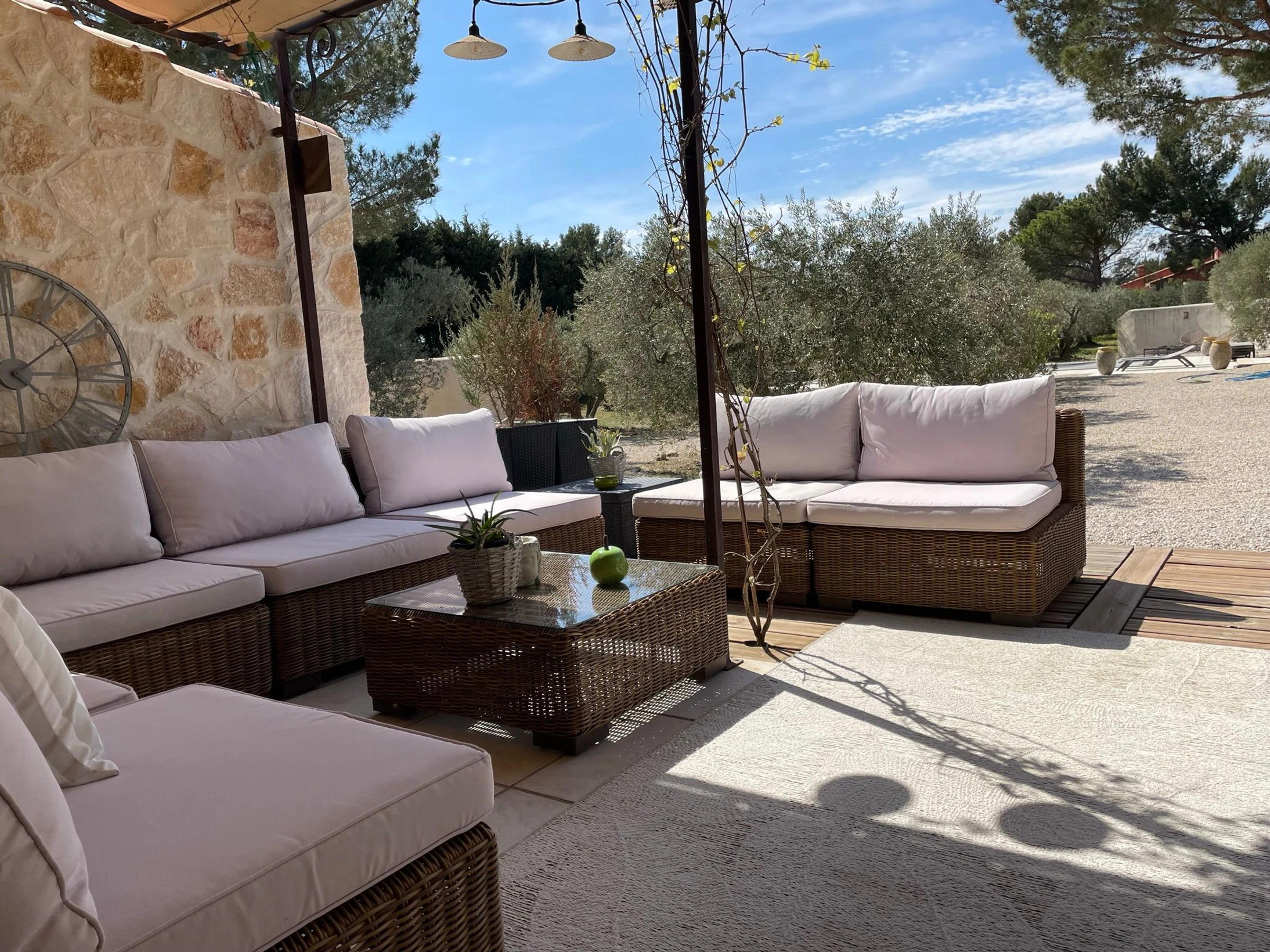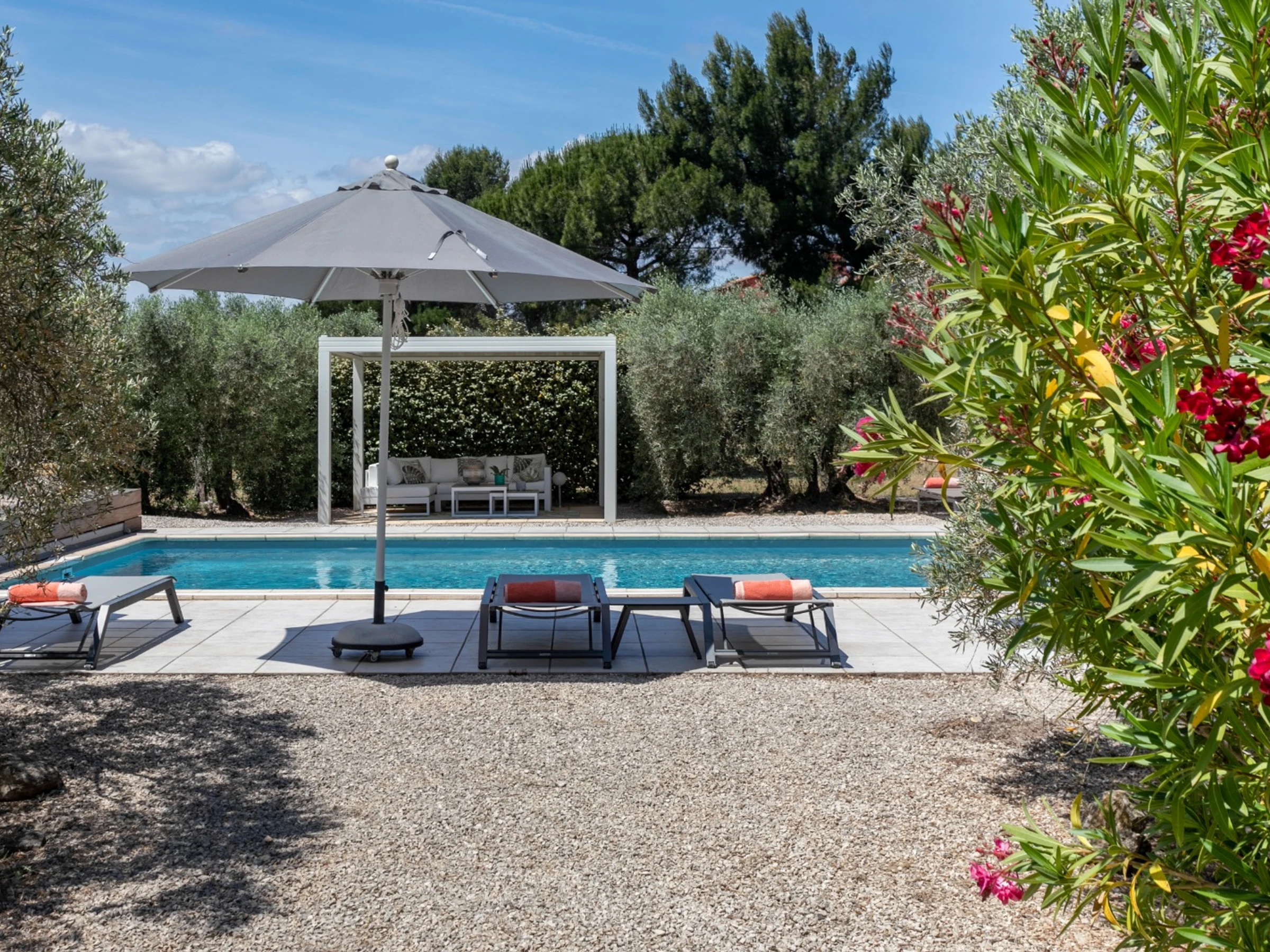 Les atouts extérieurs de cette maison sont sans doute la grande piscine de 13 x 5m entourée de transats et de verdure, parfaite pour se rafraîchir ou lézarder au soleil. Un pool house aménagé idéal pour savourer un cocktail, lire un livre ou simplement profiter de la douceur provençale à l’ombre. Le mas est niché au cœur d’un environnement calme et verdoyant, avec des oliviers à perte de vue et des paysages typiques de la région.