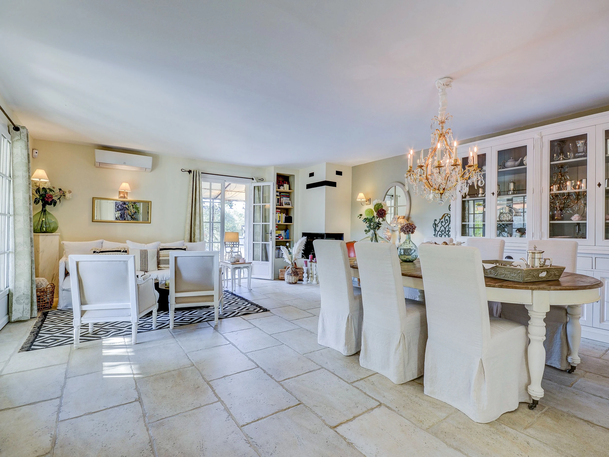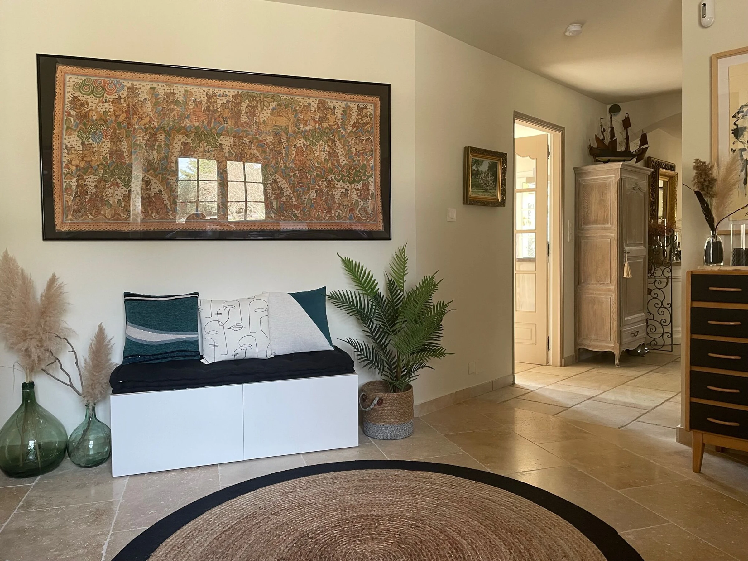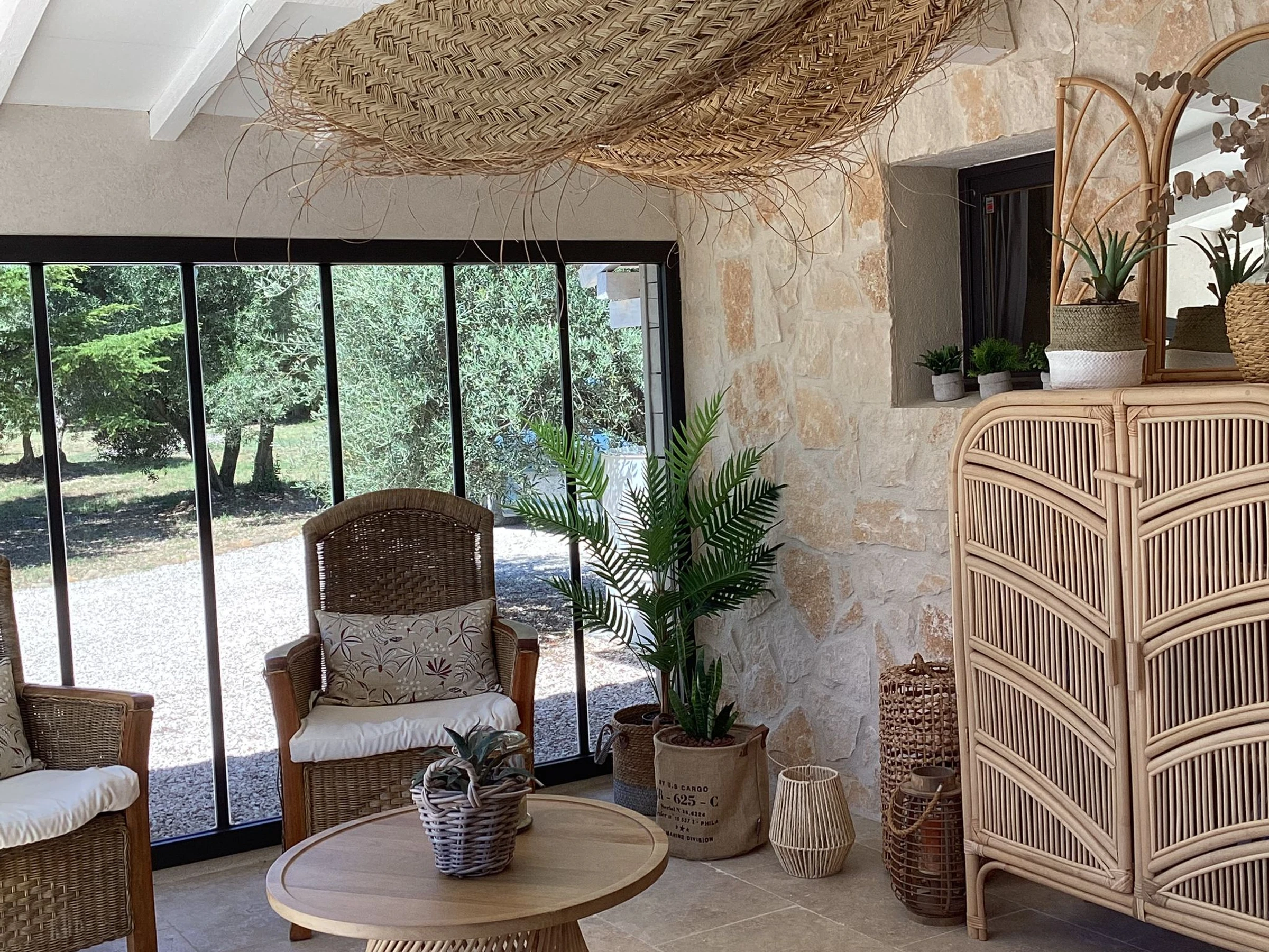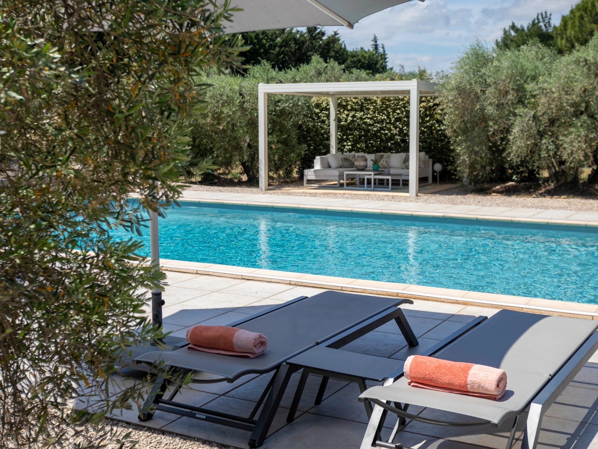 Les atouts extérieurs de cette maison sont sans doute la grande piscine de 13 x 5m entourée de transats et de verdure, parfaite pour se rafraîchir ou lézarder au soleil. Un pool house aménagé idéal pour savourer un cocktail, lire un livre ou simplement profiter de la douceur provençale à l’ombre. Le mas est niché au cœur d’un environnement calme et verdoyant, avec des oliviers à perte de vue et des paysages typiques de la région.
