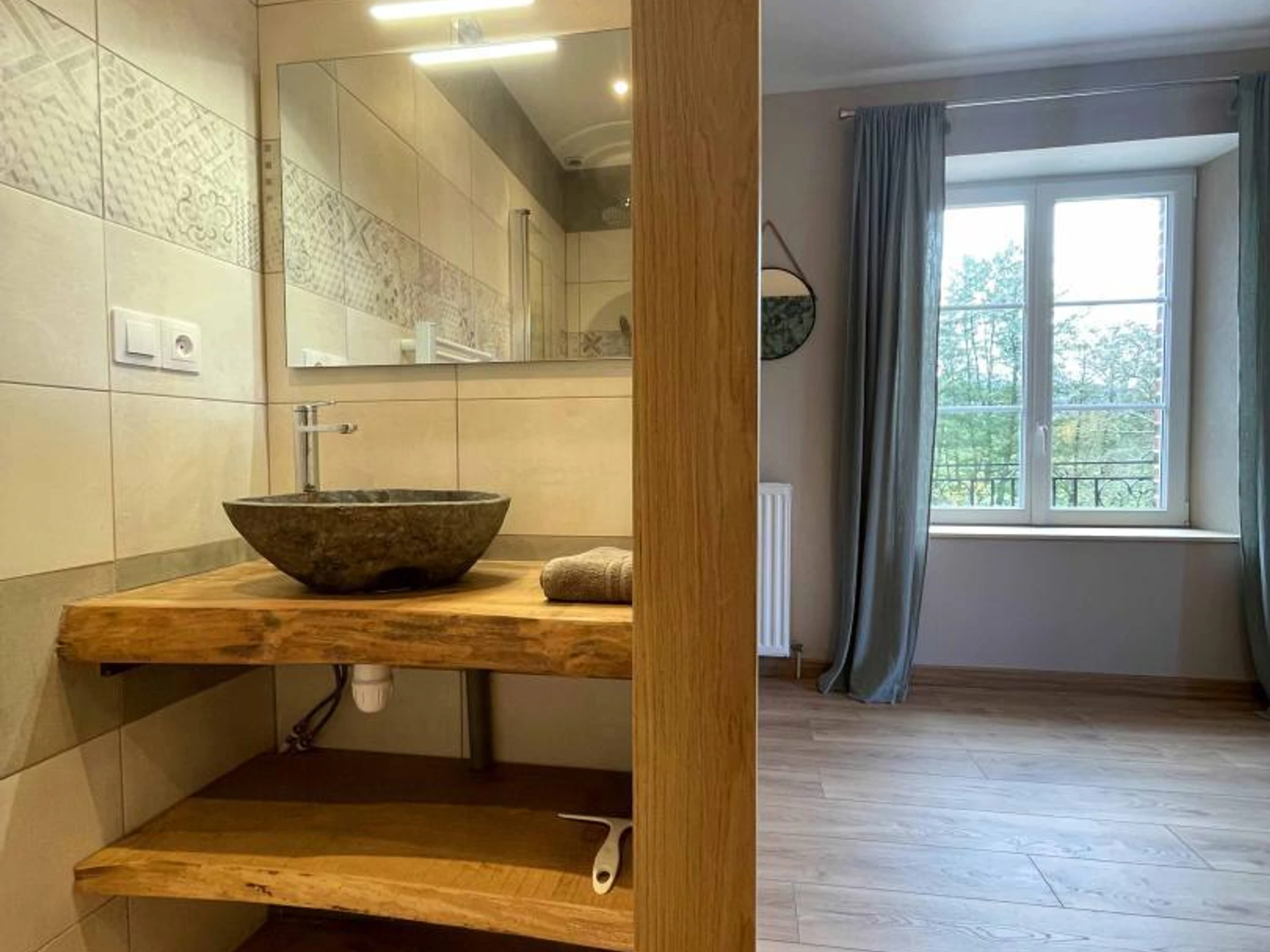 Une chambre pour deux personnes avec un lit 160x200 cm avec un douche et un lavabo