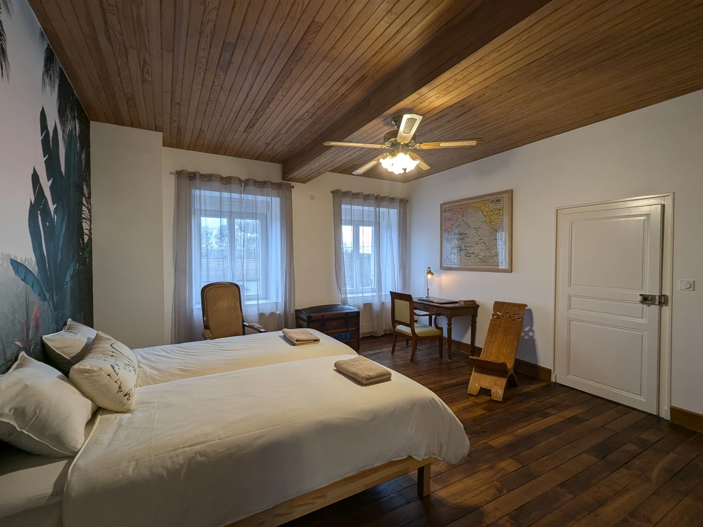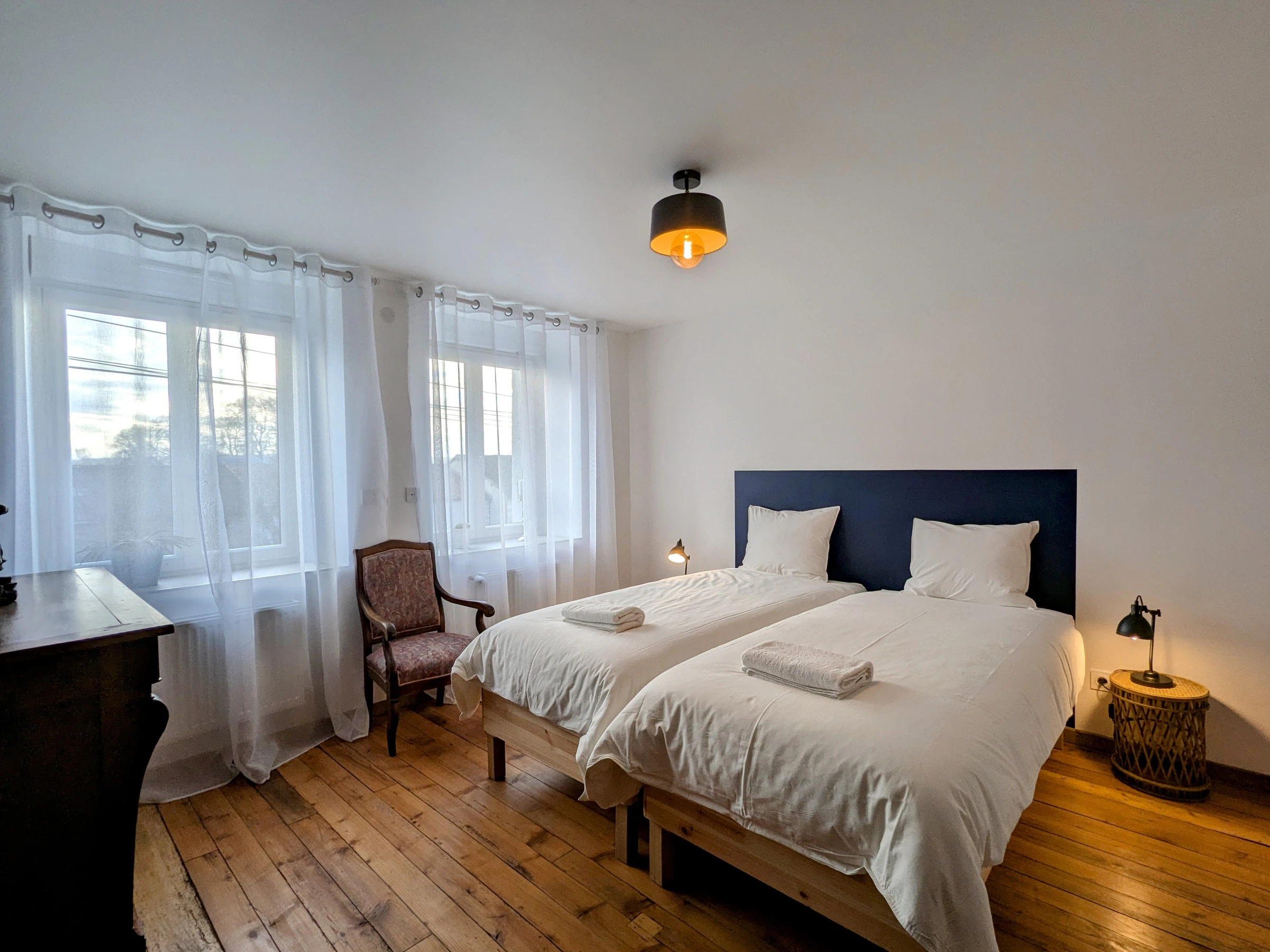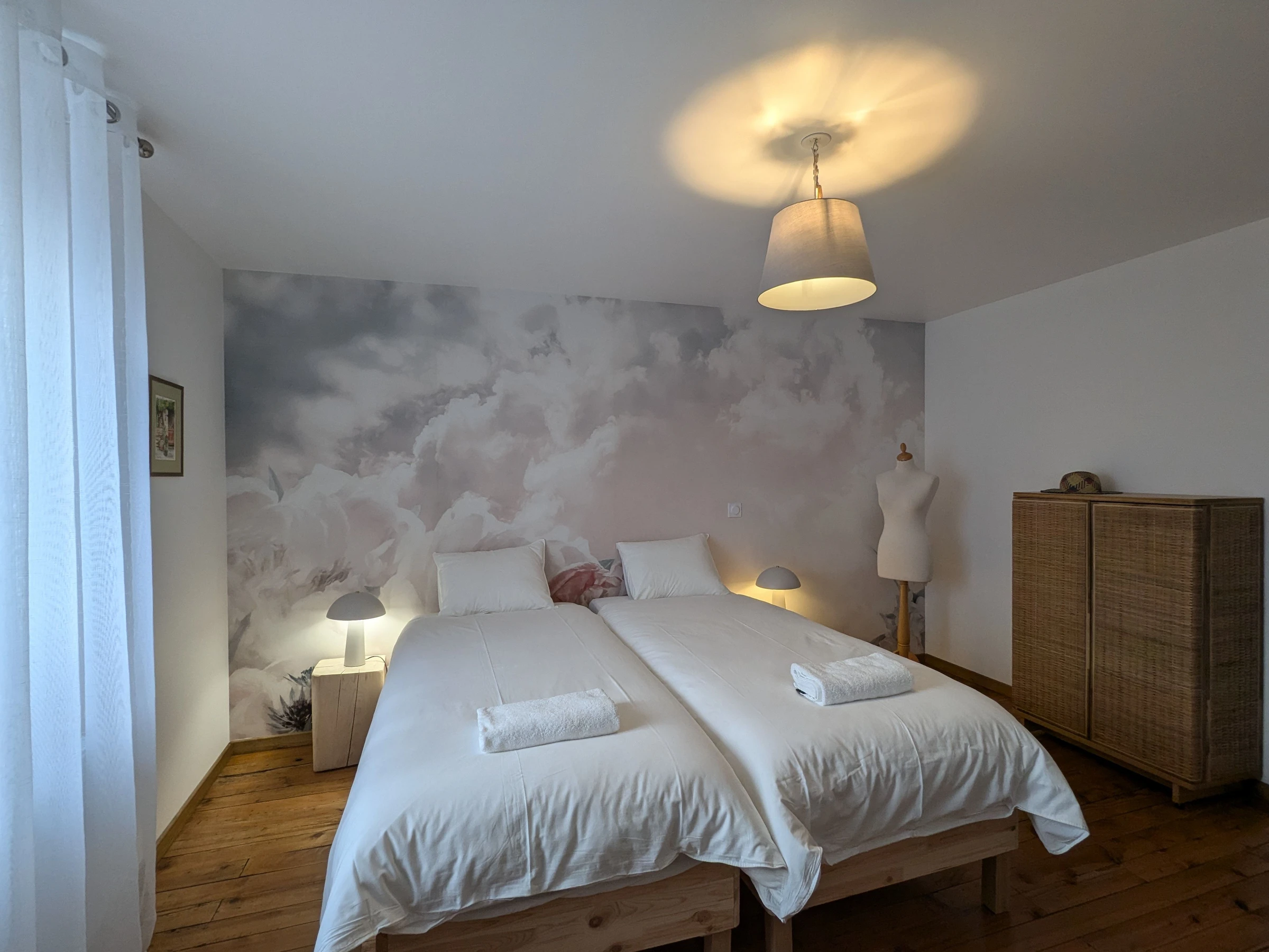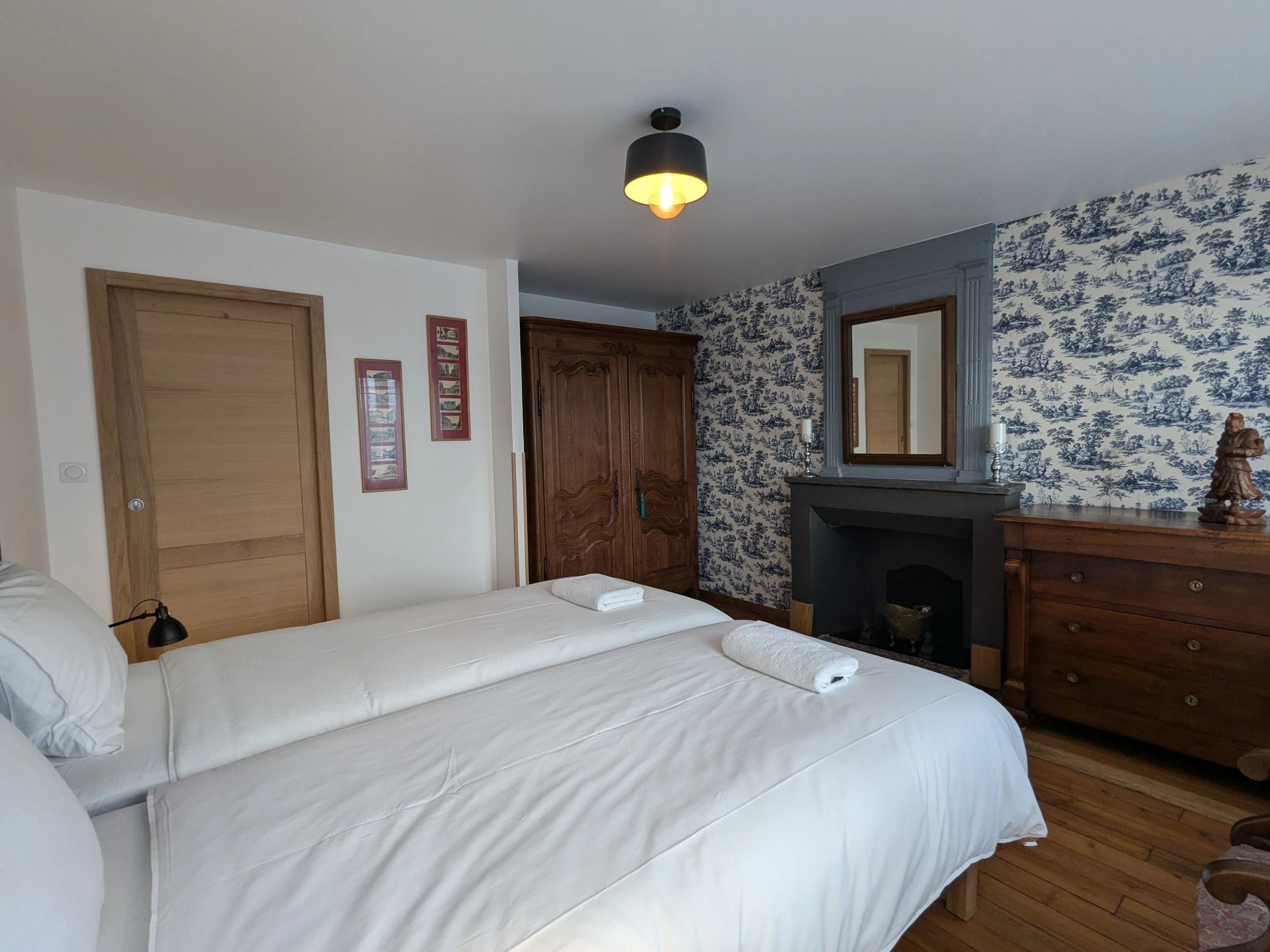 À l'étage, les quatre chambres décorées avec soin vous transportent dans des univers variés. Avec trois salles de bain et plusieurs toilettes, le confort est assuré pour tous les hôtes.