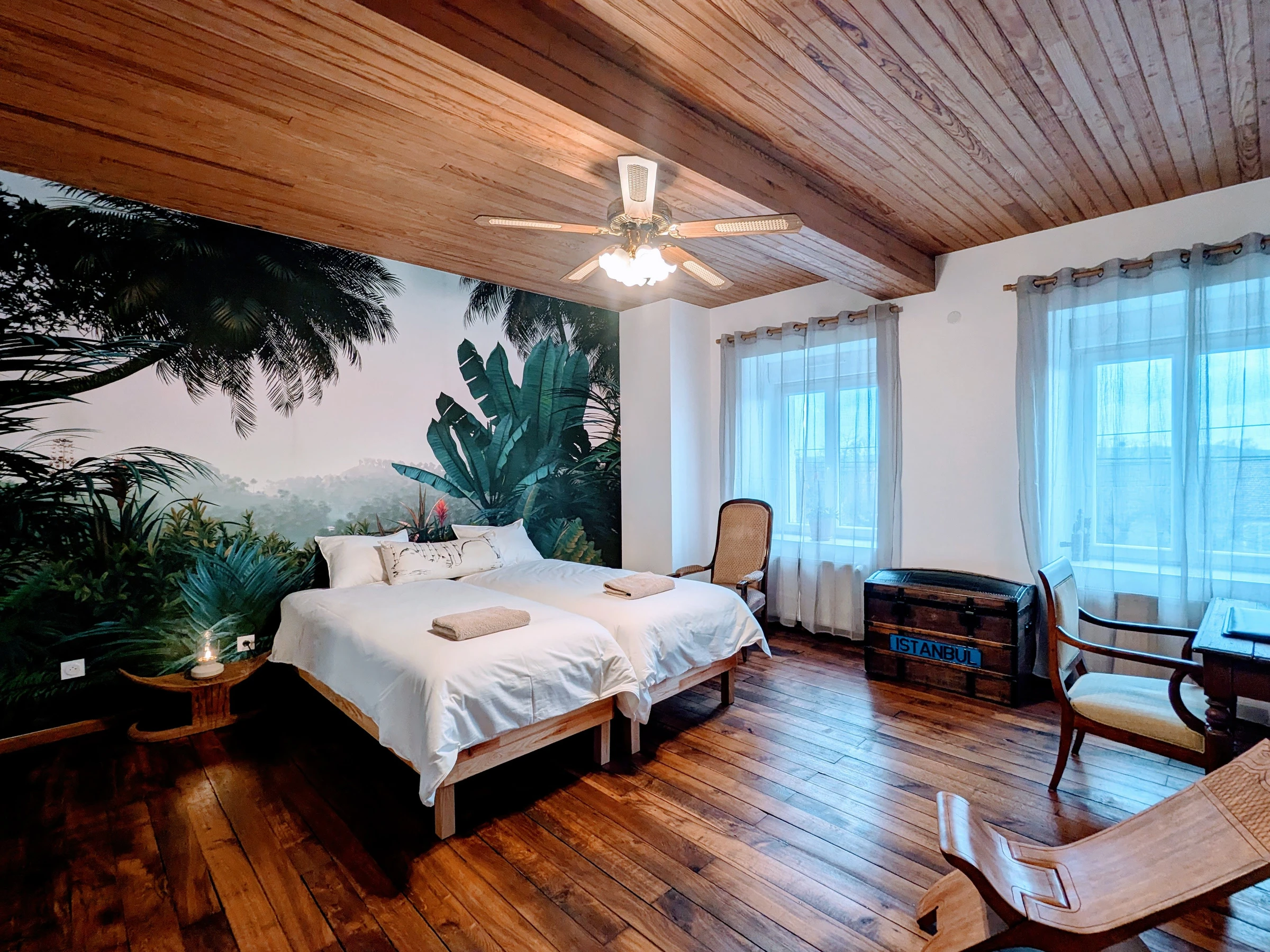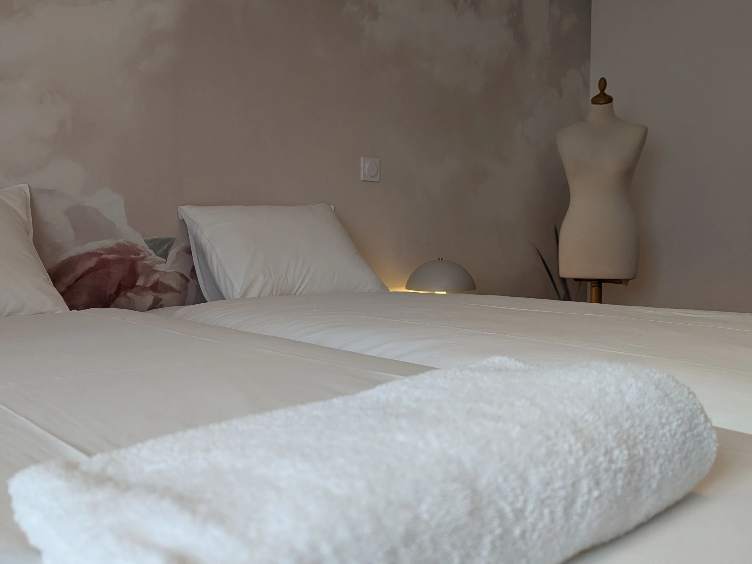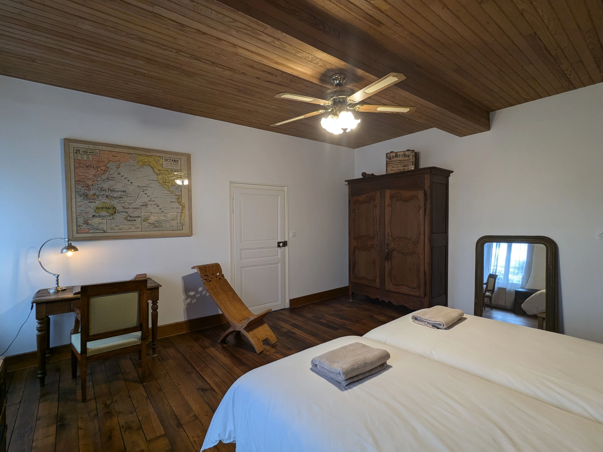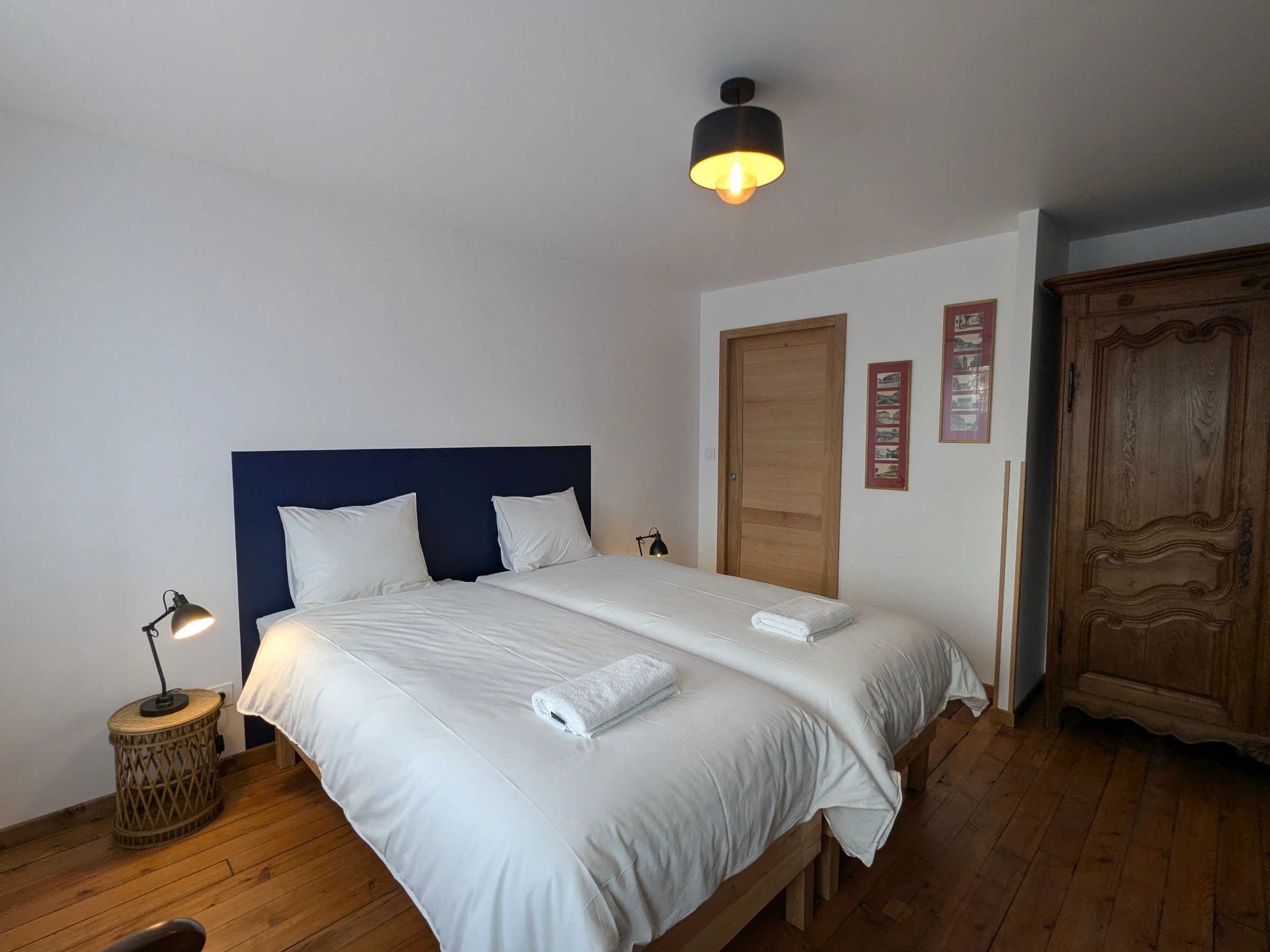 À l'étage, les quatre chambres décorées avec soin vous transportent dans des univers variés. Avec trois salles de bain et plusieurs toilettes, le confort est assuré pour tous les hôtes.