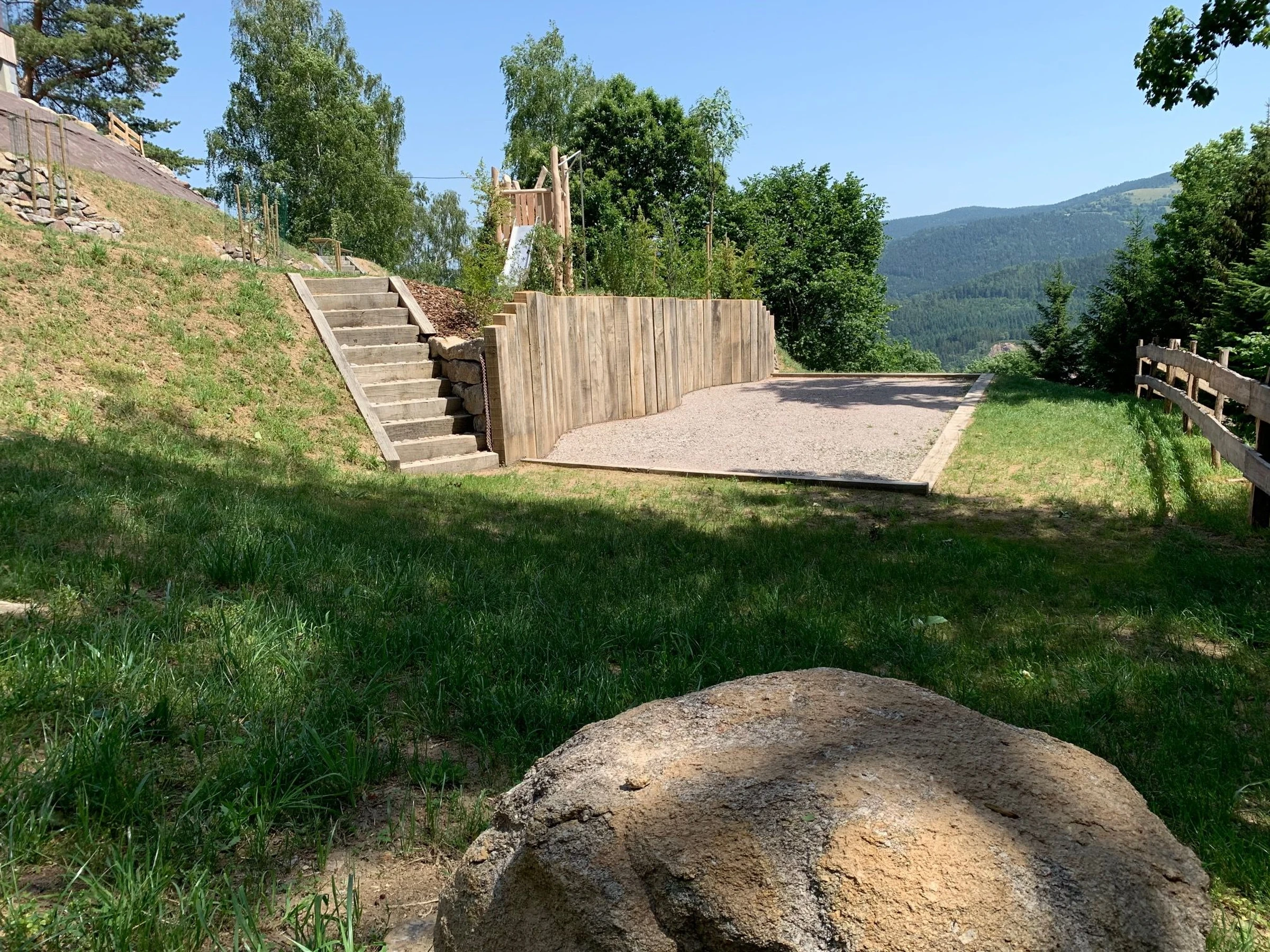 Cependant, il n'y a pas d'ascenseur pour accéder à la salle de jeu en mezzanine ou au niveau -1 (espace spa). Le jardin est en escalier
