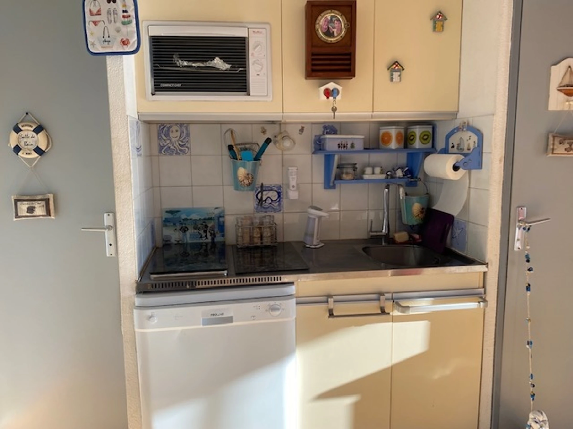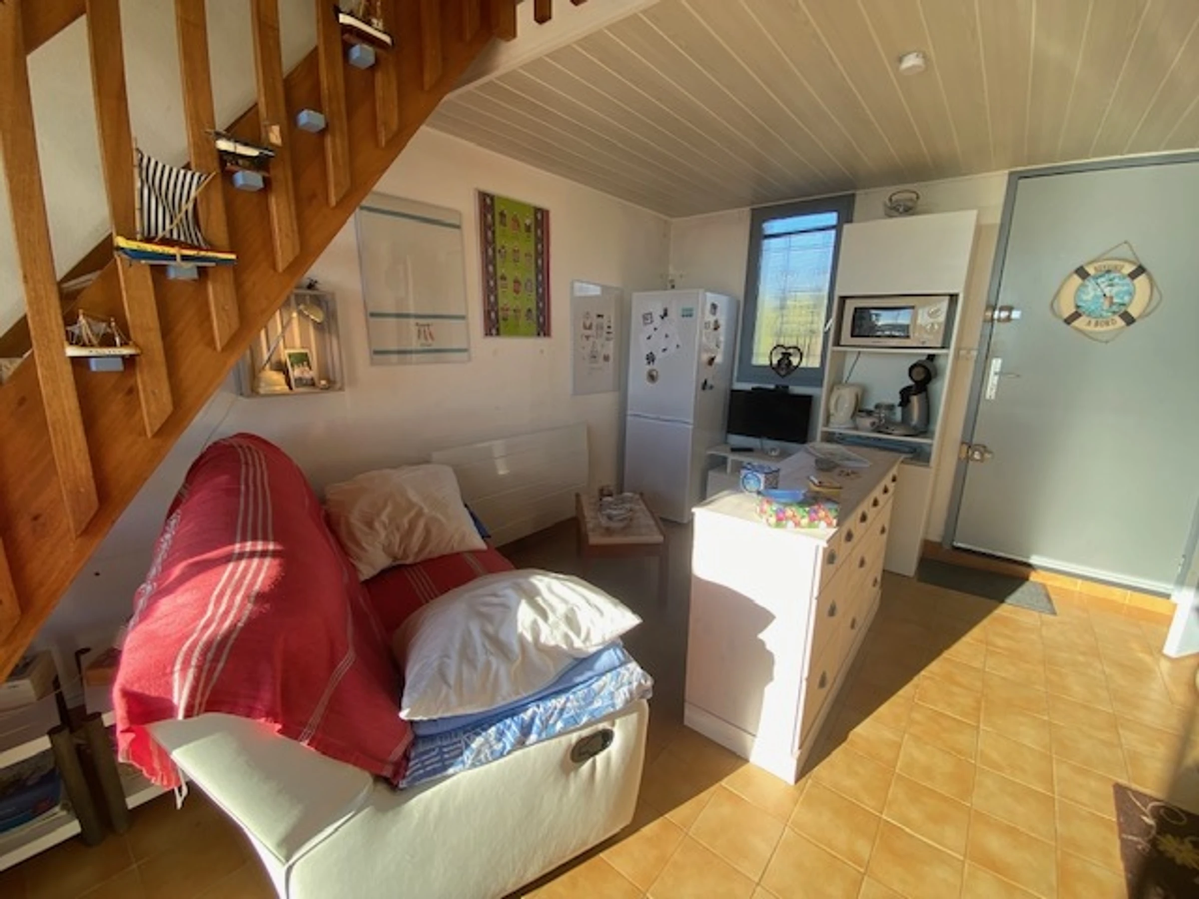 Séjour et coin cuisine équipée. 1 chambre (lit 140) en RDC. Salle d’eau 1WC.