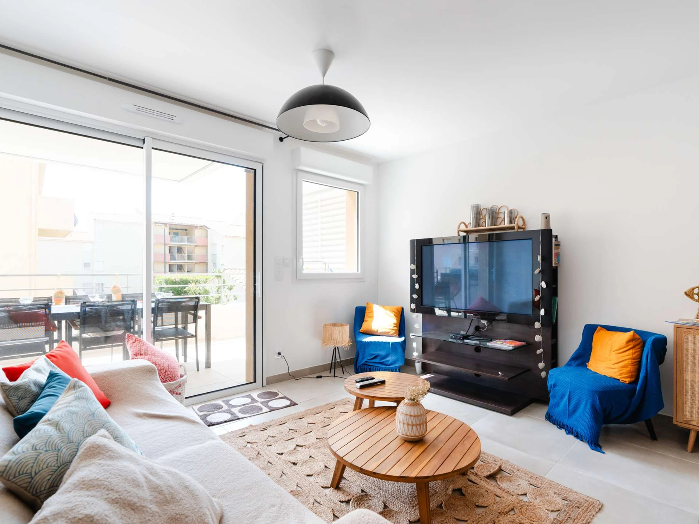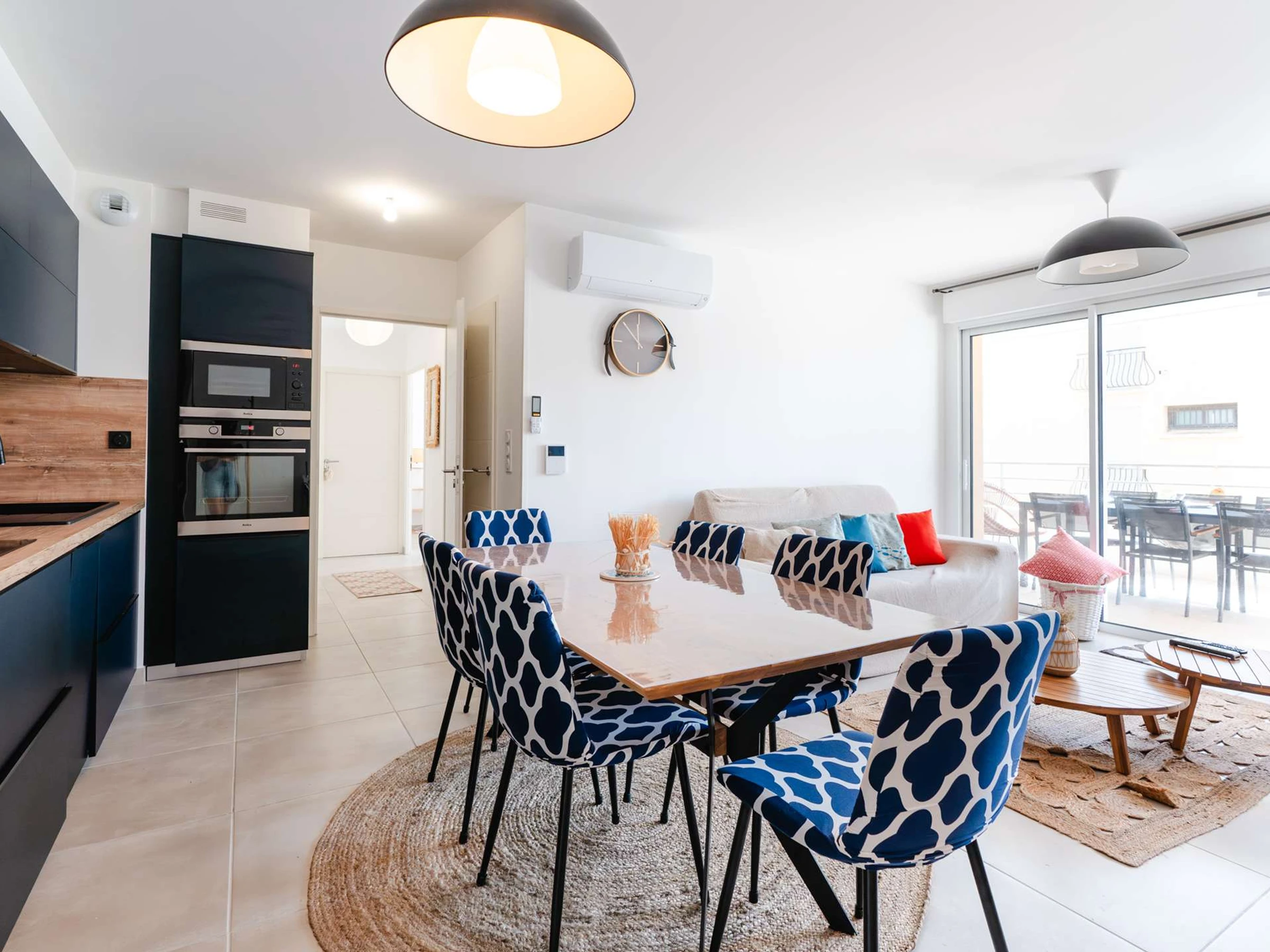 Appartement T3 climatisé situé dans une résidence neuve sécurisée proche de la plage, avec ascenseur et place de parking privative.