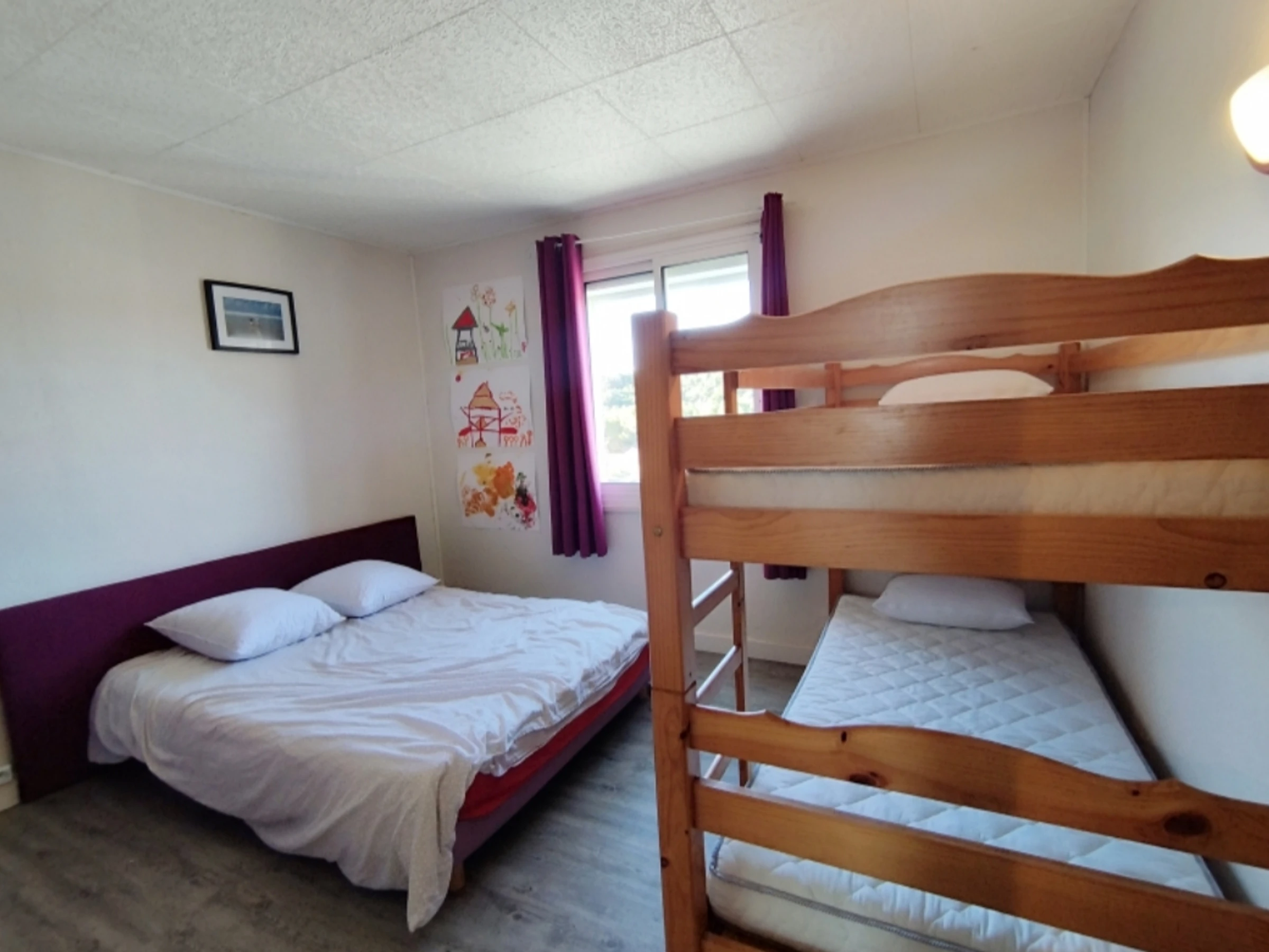 1 Chambre : 1 lit en 140 & 2 lits superposés en 90 pour enfants (vue sur l'étang des Exals).