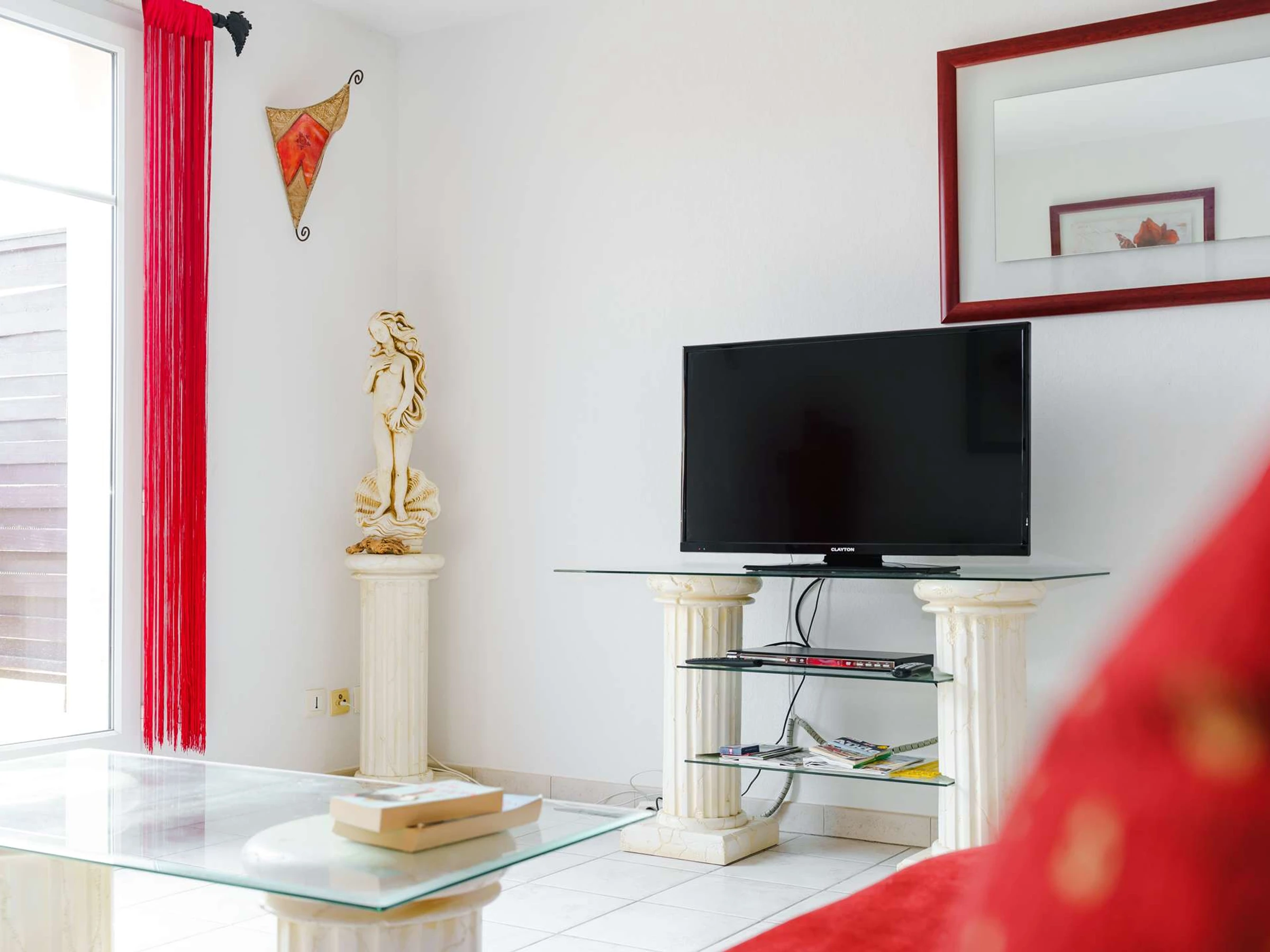 Rez-de-chaussée: Grand séjour climatisé, lumineux avec coin salon, TV (chaînes françaises uniquement), cuisine équipée (4 plaques vitrocéramiques, four traditionnel, combiné grill/micro-onde, grand réfrigérateur-congélateur, lave linge.