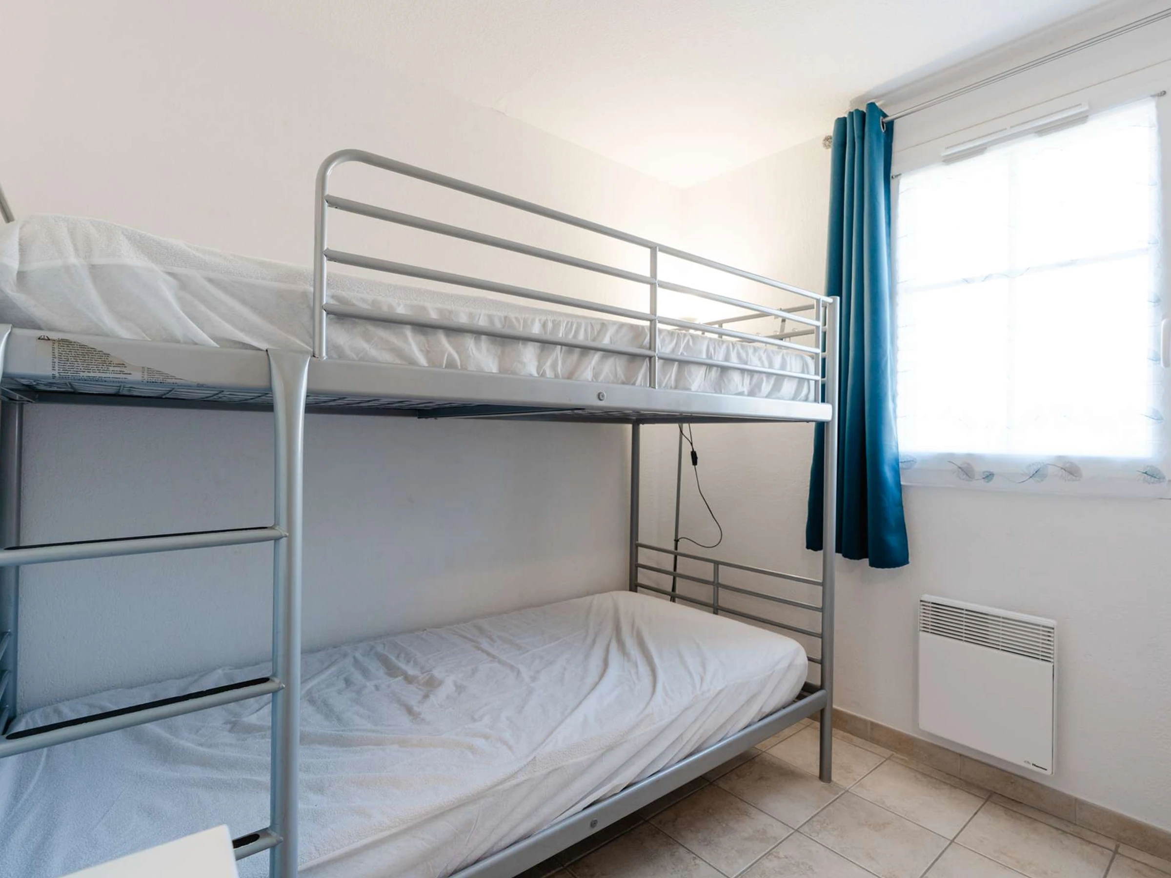 À l'étage: une chambre avec lit double (160x200), une chambre avec lits superposés (90x190) et une salle d'eau (douche).