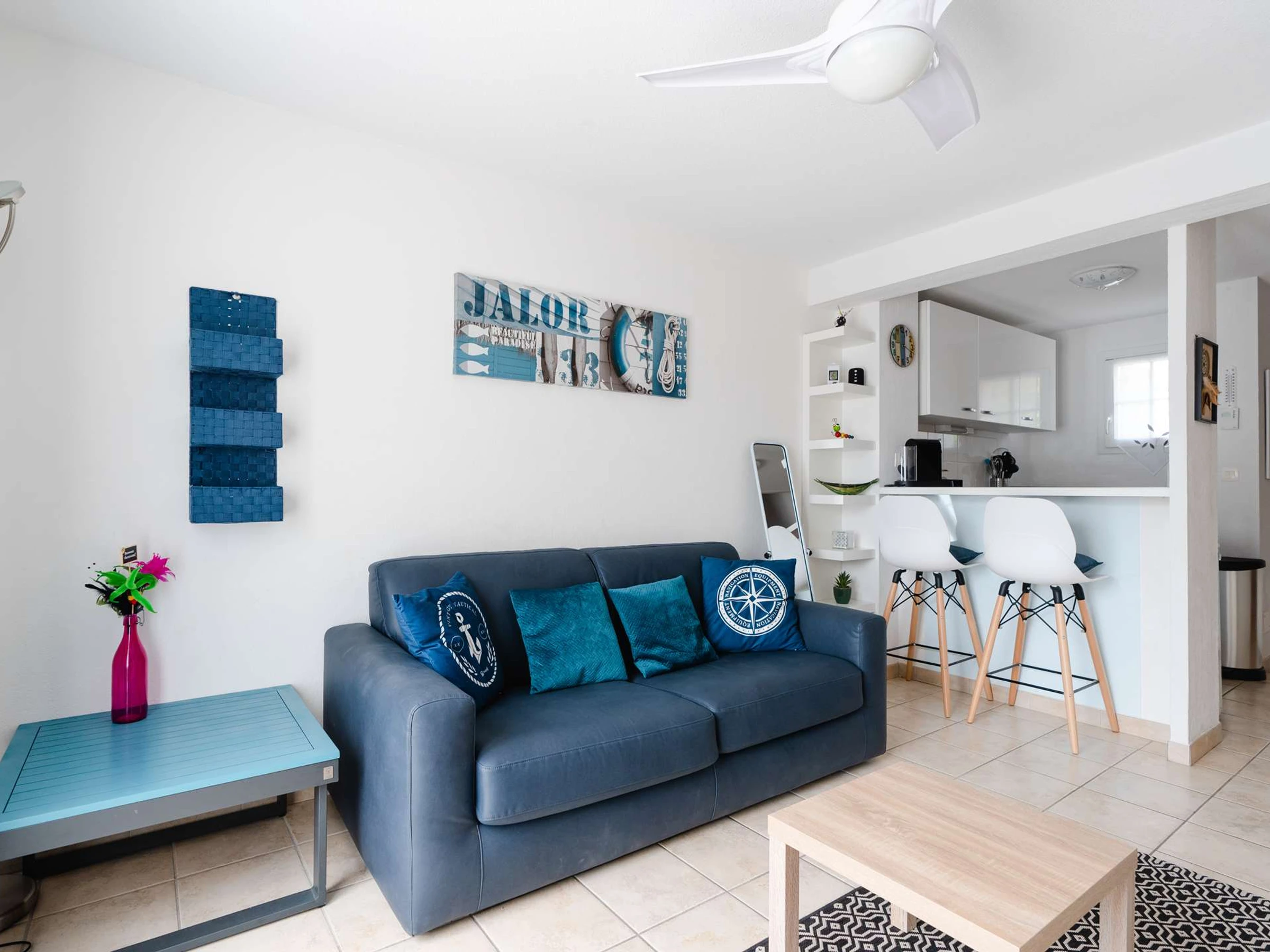 Dans résidence sécurisée avec piscine, maison 3-pièces (2 chambres) climatisée avec terrasse et son mobilier de jardin. Capacité max: 6 personnes. Parking privé dans la résidence. Logement non-fumeur.