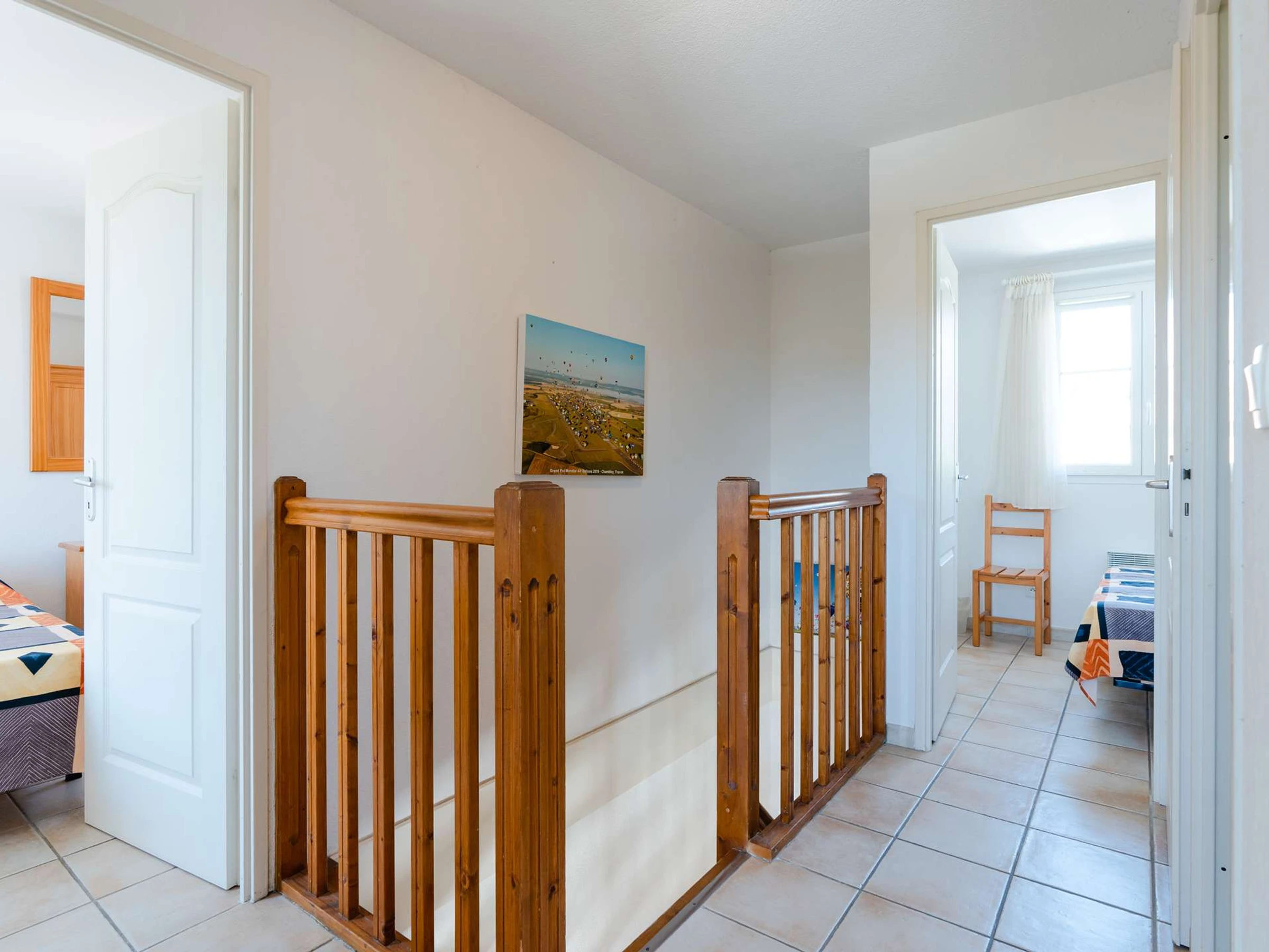 Etage: chambre avec grand lit (140X190), 2 chambres avec 2 lits simples (90X190) dont une avec balcon, 1 salle d'eau avec douche et WC séparés.
