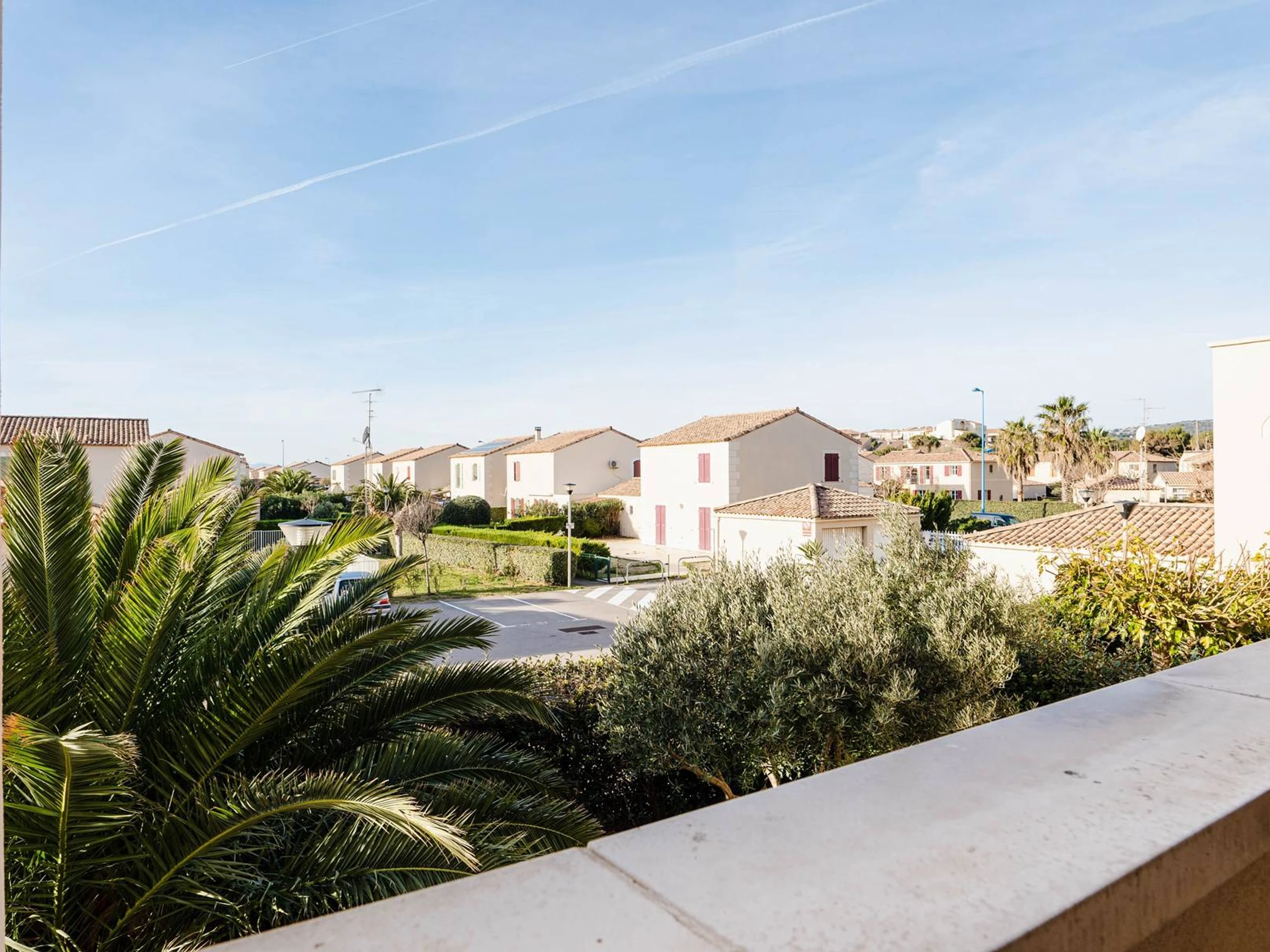 2 chambres avec 2 petits lits (90x190cm). Balcon de 15 m² avec salon de jardin et 2 chiliennes.