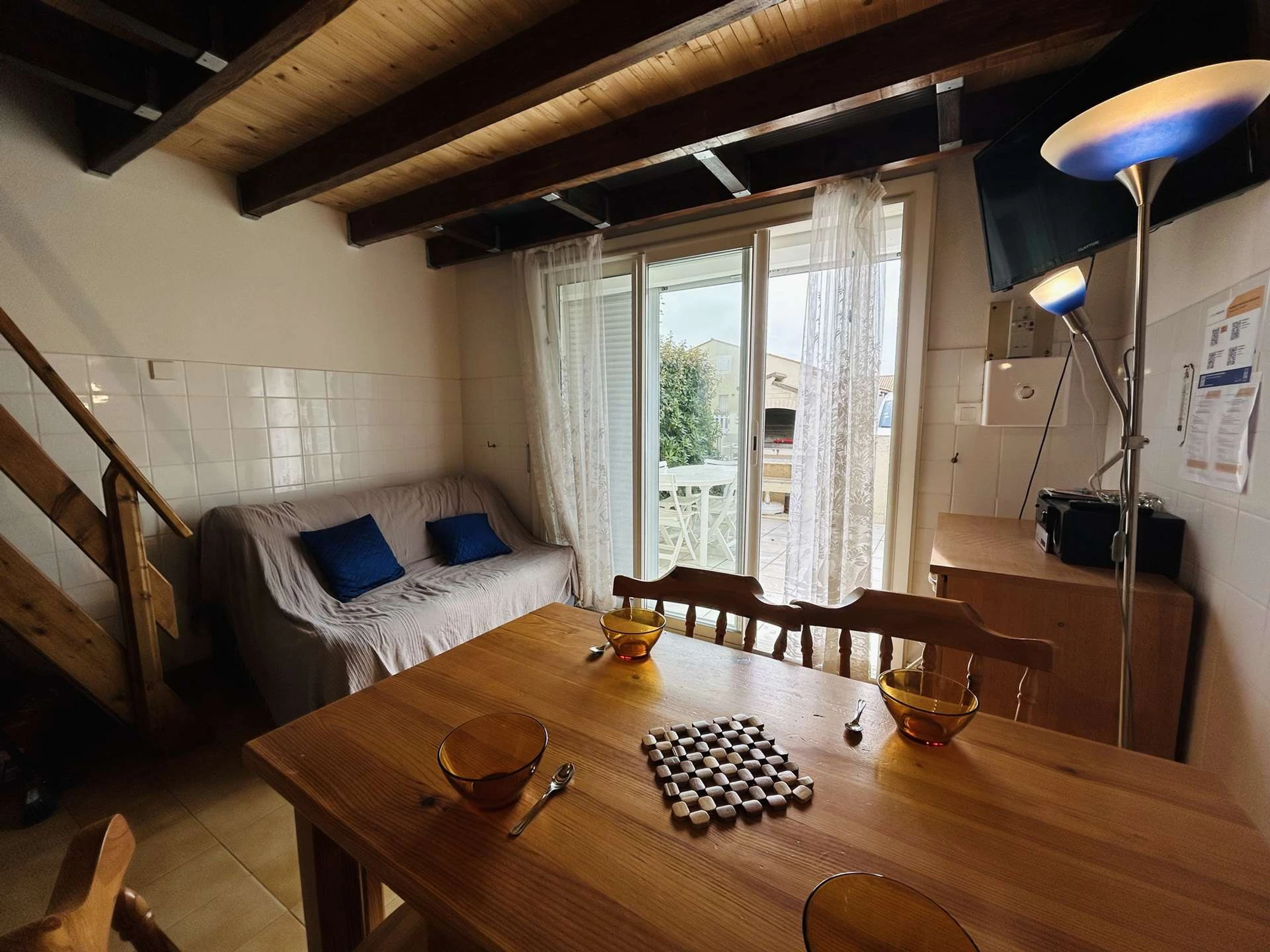 LE LOGEMENT : Ce pavillon de vacances à la mer se situe dans un quartier calme de Narbonne plage, au rez-de-chaussée vous trouverez un coin cuisine ouvert sur le séjour (télévision sous réserve d'une bonne réception) et la terrasse, une chambre avec un lit 2 personnes, d’une salle d'eau avec WC. La mezzanine accueillent un lit 2 personnes et deux lits 1 personne.
