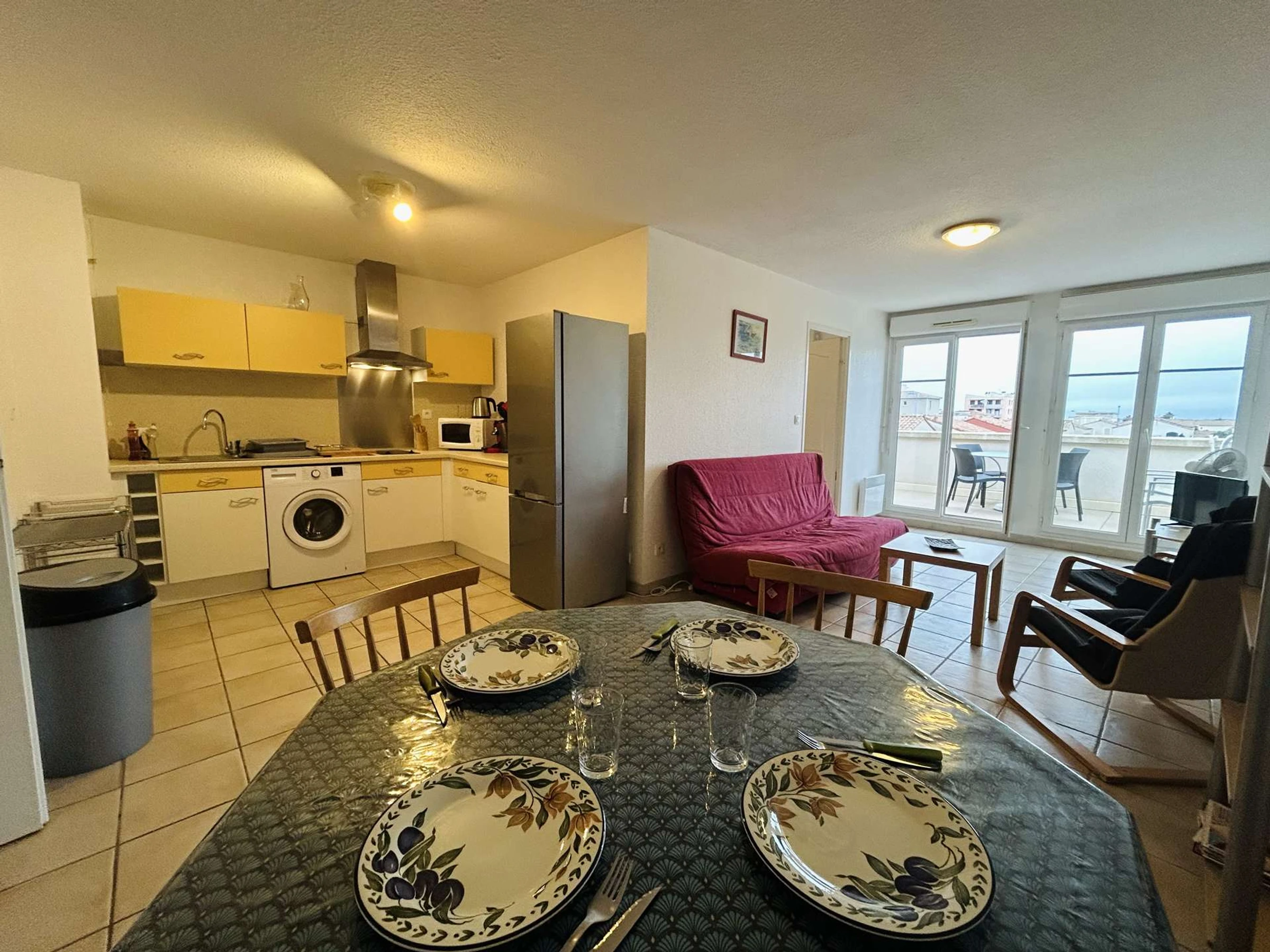 Découvrez ce bel appartement au 2e étage offrant un espace de vie confortable et fonctionnel. Il se compose d'un séjour lumineux avec canapé convertible 2 places et télévision, d'un coin cuisine équipé, d'une chambre parentale avec lit double, d'une seconde chambre avec deux lits simples, ainsi que d'une salle d'eau et de WC séparés.