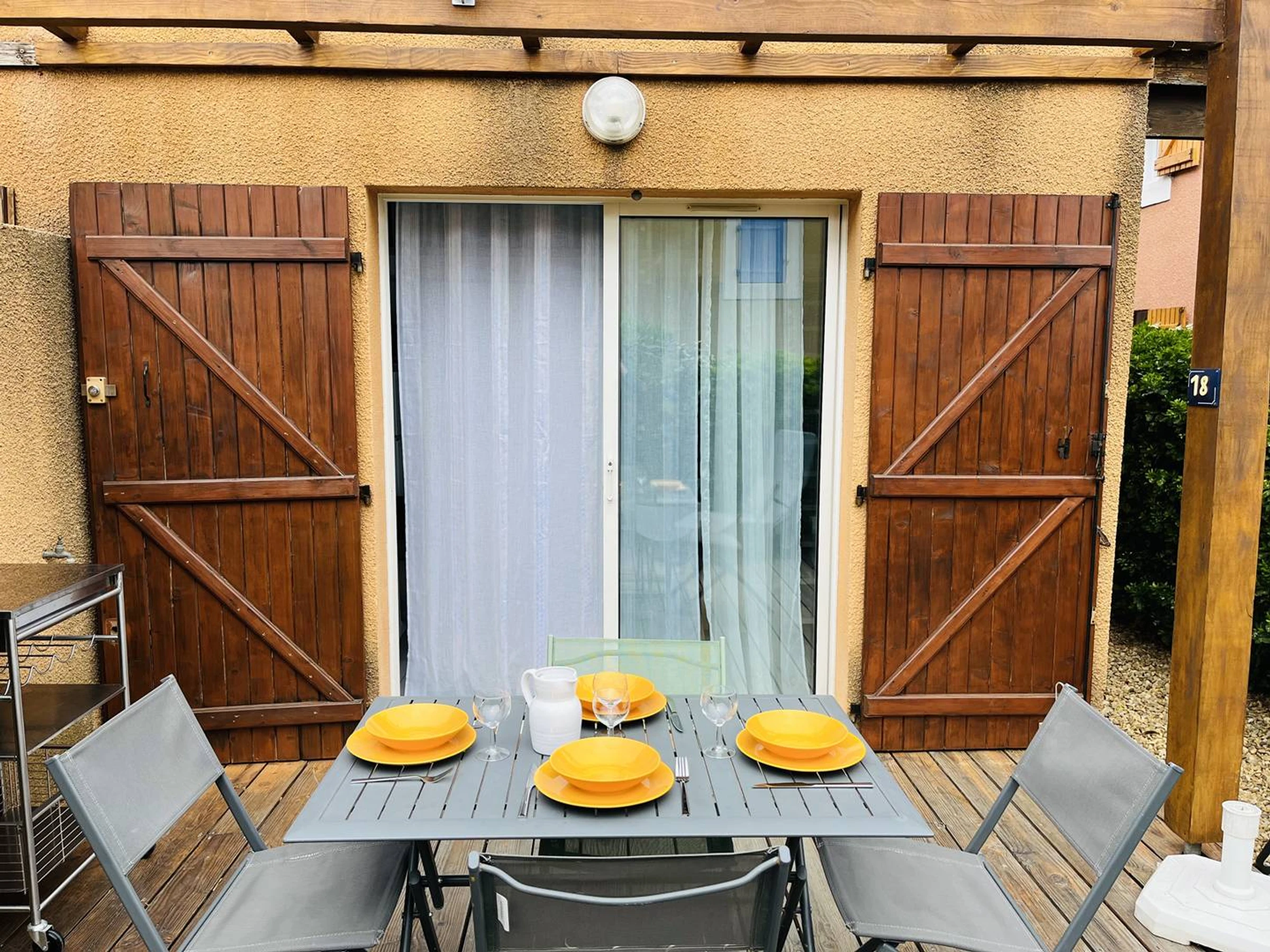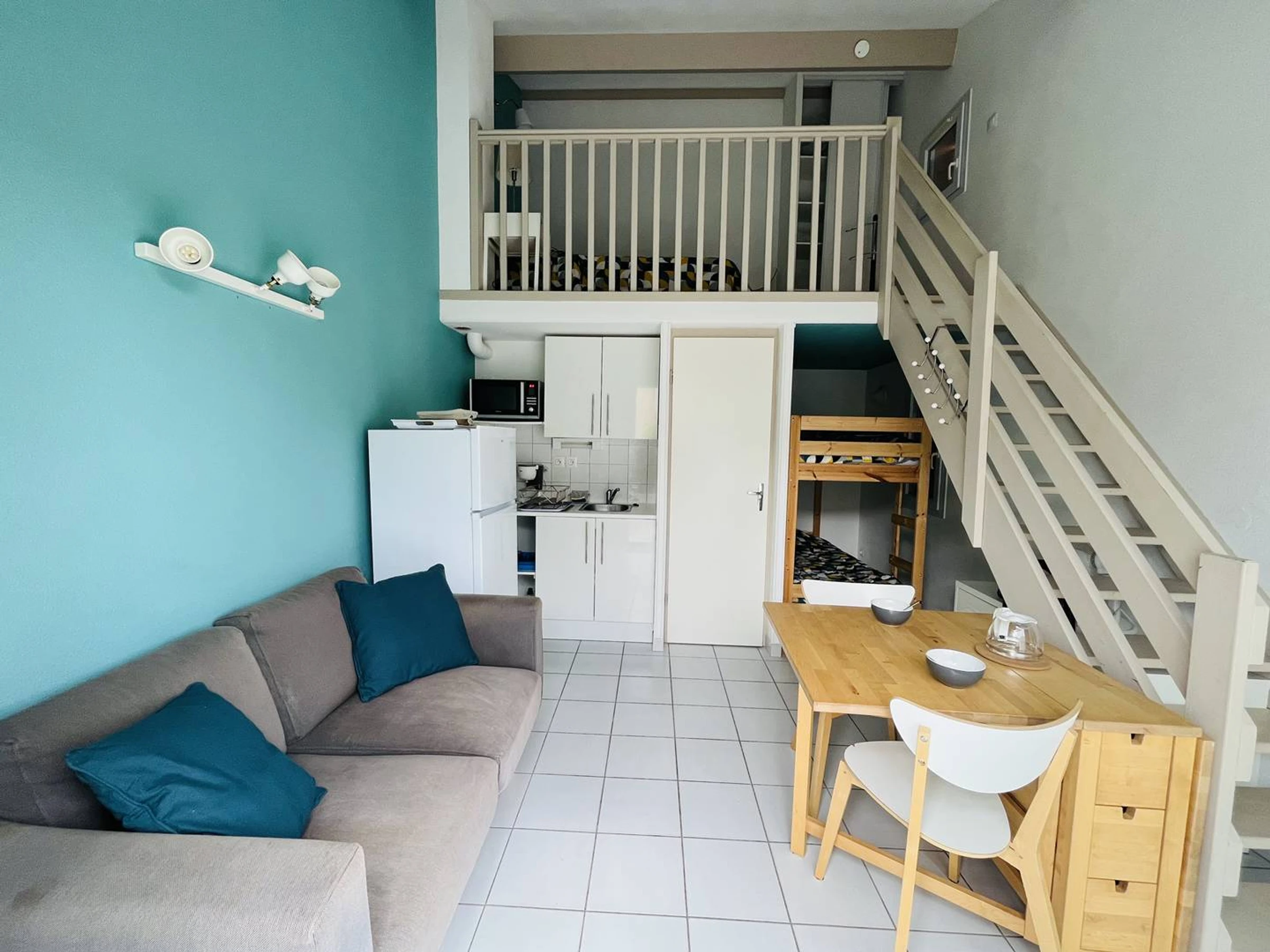 Ce Pavillon T2 Mezzanine fraichement rénové, est composé d’un coin cuisine avec cafetière, bouilloire, réfrigérateur-congélateur, plaque vitrocéramique 2 feux, micro-ondes. La pièce de vie principale dispose d’un canapé, télévision, d’un coin cabine avec deux lits superposés, d’une mezzanine avec lit double en 140 et d’une salle d’eau avec douche à l'italienne, lavabo et wc. Laverie avec lave-linge et sèche-linge dans la résidence (en supplément). Chauffage. Place de Parking.