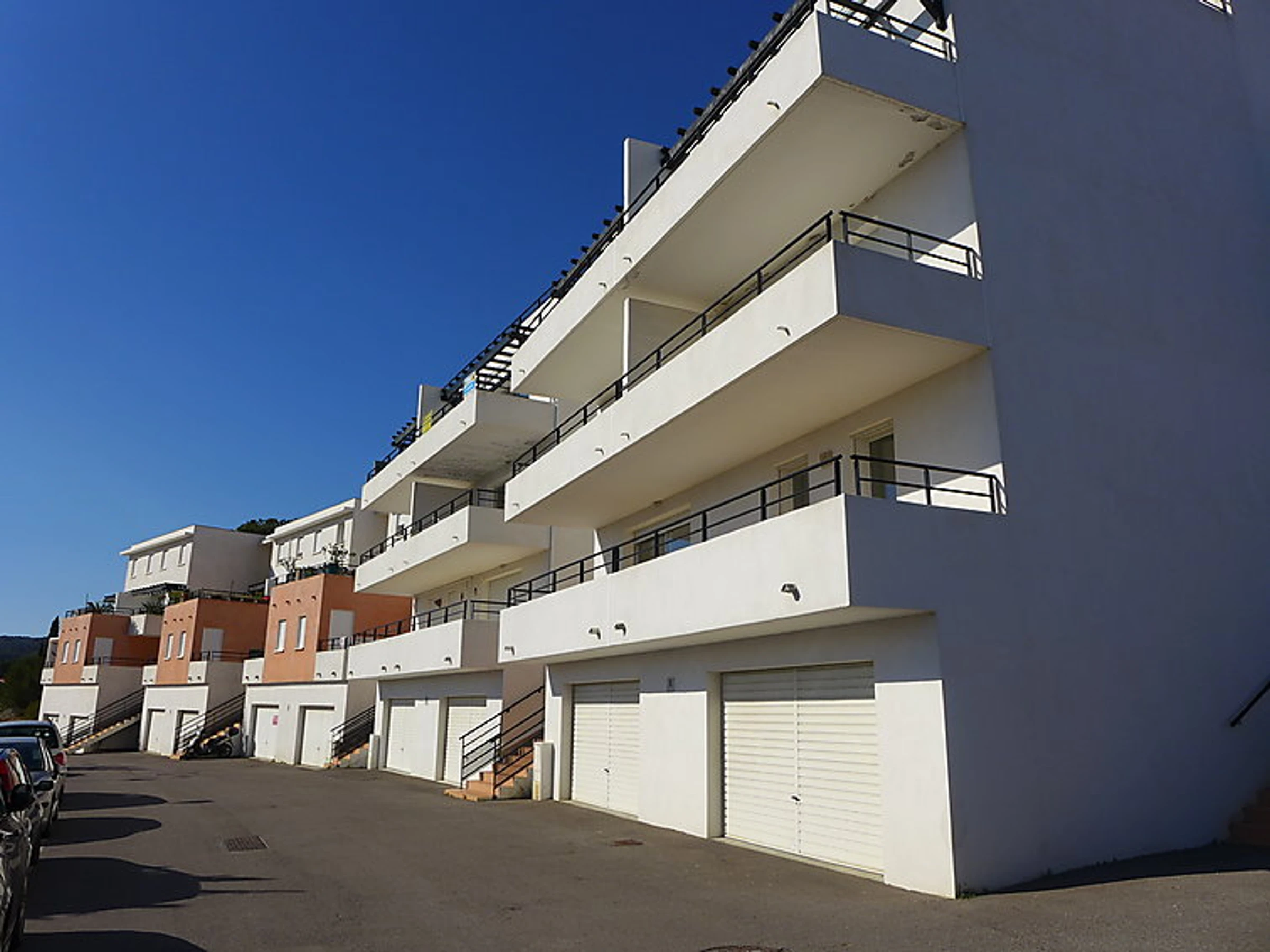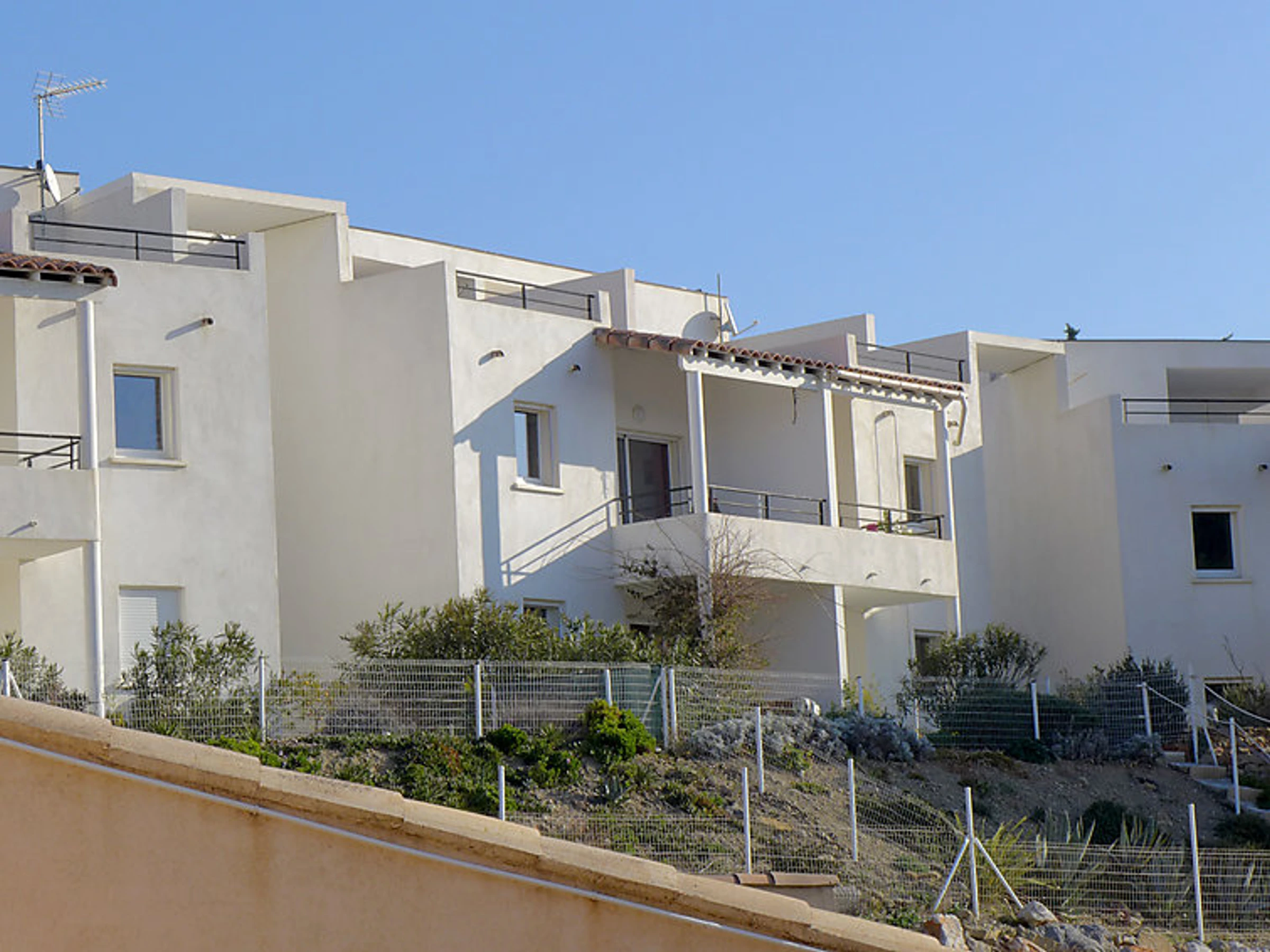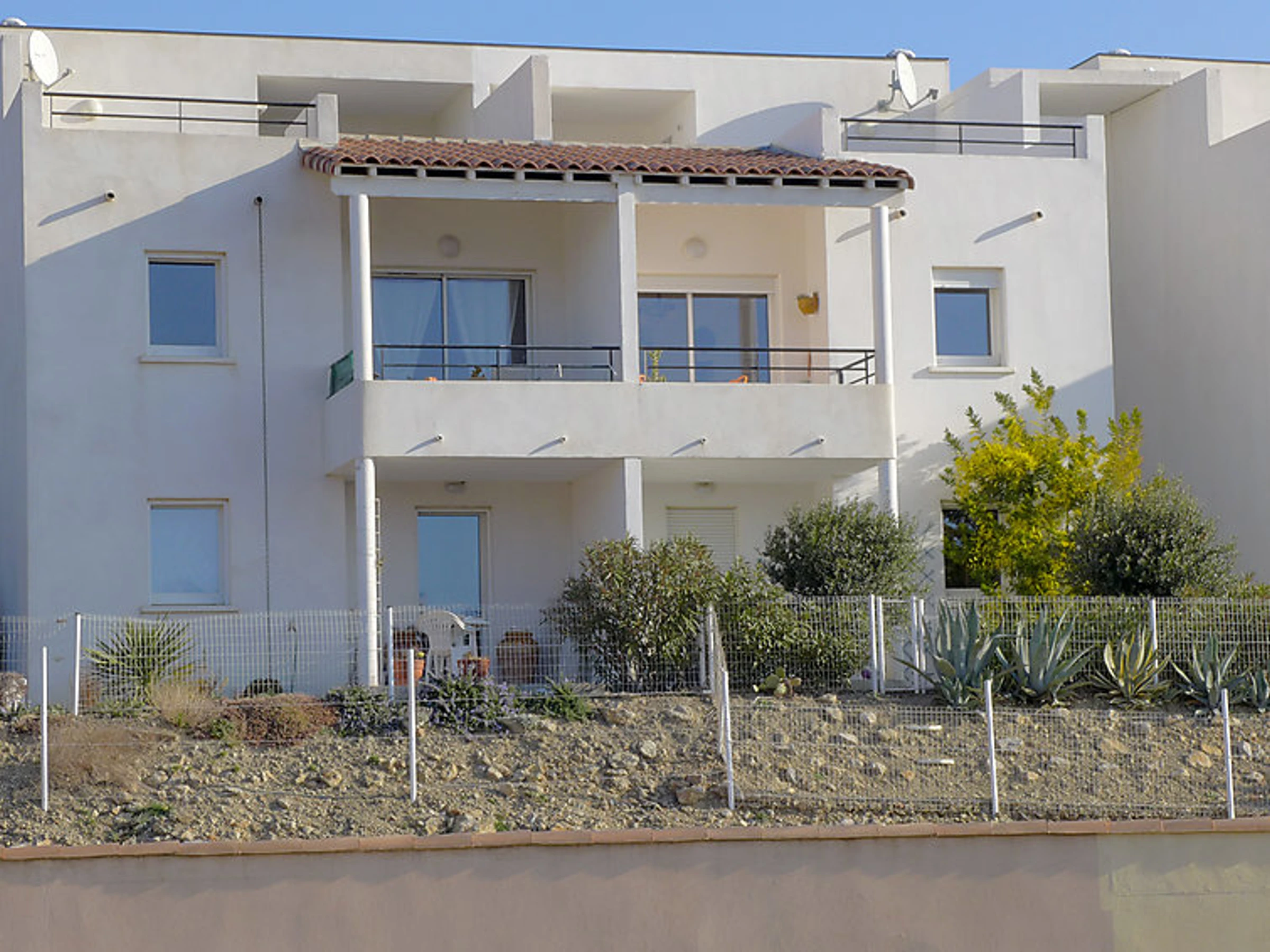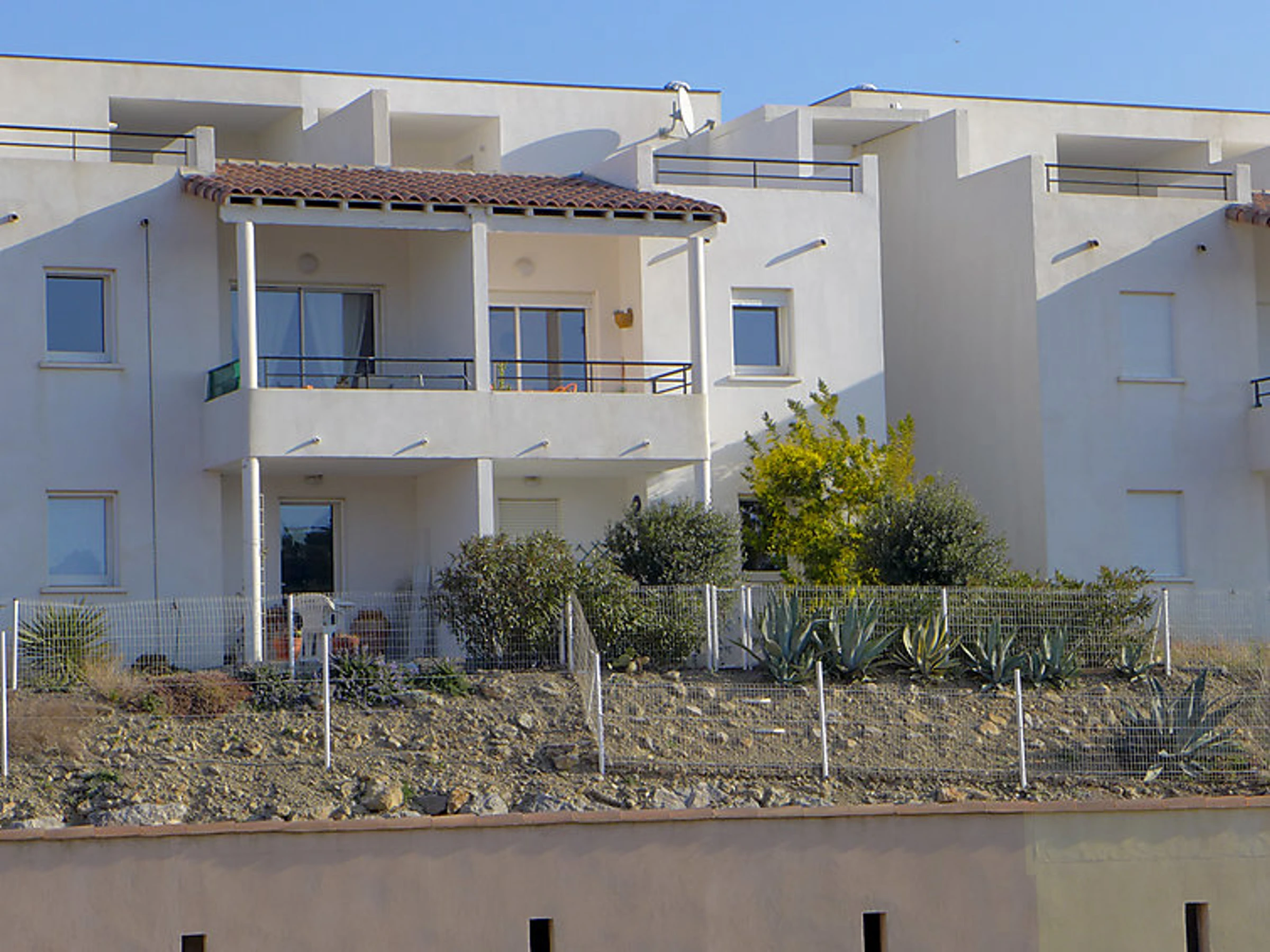 Résidence "Le Domaine de l'Orangeraie", année de construction 2007. 9 maisons dans la résidence. 24 appartements dans la résidence. Dans le haut de la station de Narbonne Plage, à 800 m de la mer. Magasins, magasin d'alimentation, restaurant, bar 800 m. Port de plaisance 2 km, ecole de voile 2 km, tennis 300 m. Attractions à proximité: Réserve Africaine de Sigean 33 km.
