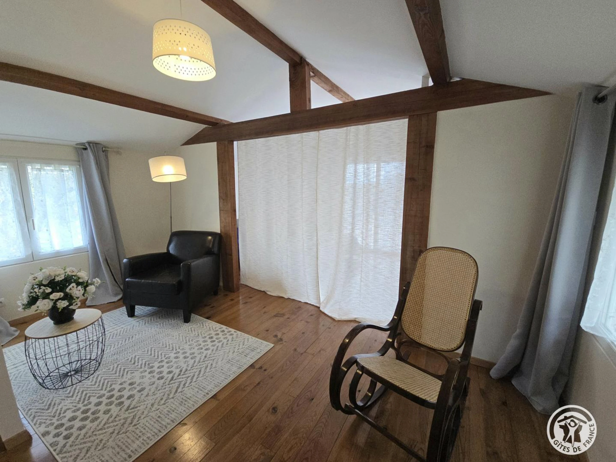 Dans ce gîte, vous profiterez de la cuisine équipée d'un lave-vaisselle, d'un lave-linge, d'un micro-onde, un four, de 4 feux gaz, d'un réfrigérateur-congélateur, ouverte sur la salle à manger et la salon avec un canapé, une télévision et internet. A l'étage, vous disposerez d'une grande chambre avec 1 lit de 160x200, une salle d'eau avec douche et WC. Depuis la pièce principale, vous pourrez disposer d'un accès direct à la terrasse de 30 m2 avec salon de jardin, bains de soleil et barbecue et vue sur le jardin. Électricité incluse. Profitez également de la piscine partagée (non chauffée) avec 2 autres gîtes de 2 personnes, dimension 5mx11m, profondeur 0,80 a 1,90 au plus profond, au sel, sécurisée par un dôme, ouverte de début mai au à fin septembre.Parking sur place dans la propriété. Tout inclus. Évadez-vous le temps d'un séjour inoubliable dans un gîte pour deux, niché au cœur d'un cadre naturel enchanteur. Imaginez-vous au bord d'un étang privé, observant le ballet paisible des canards tandis que les chevaux paissent en liberté. Ici, chaque instant est une invitation à la sérénité : un petit-déjeuner en terrasse face à la nature, une balade au fil des sentiers verdoyants, le chant des oiseaux en fond sonore.