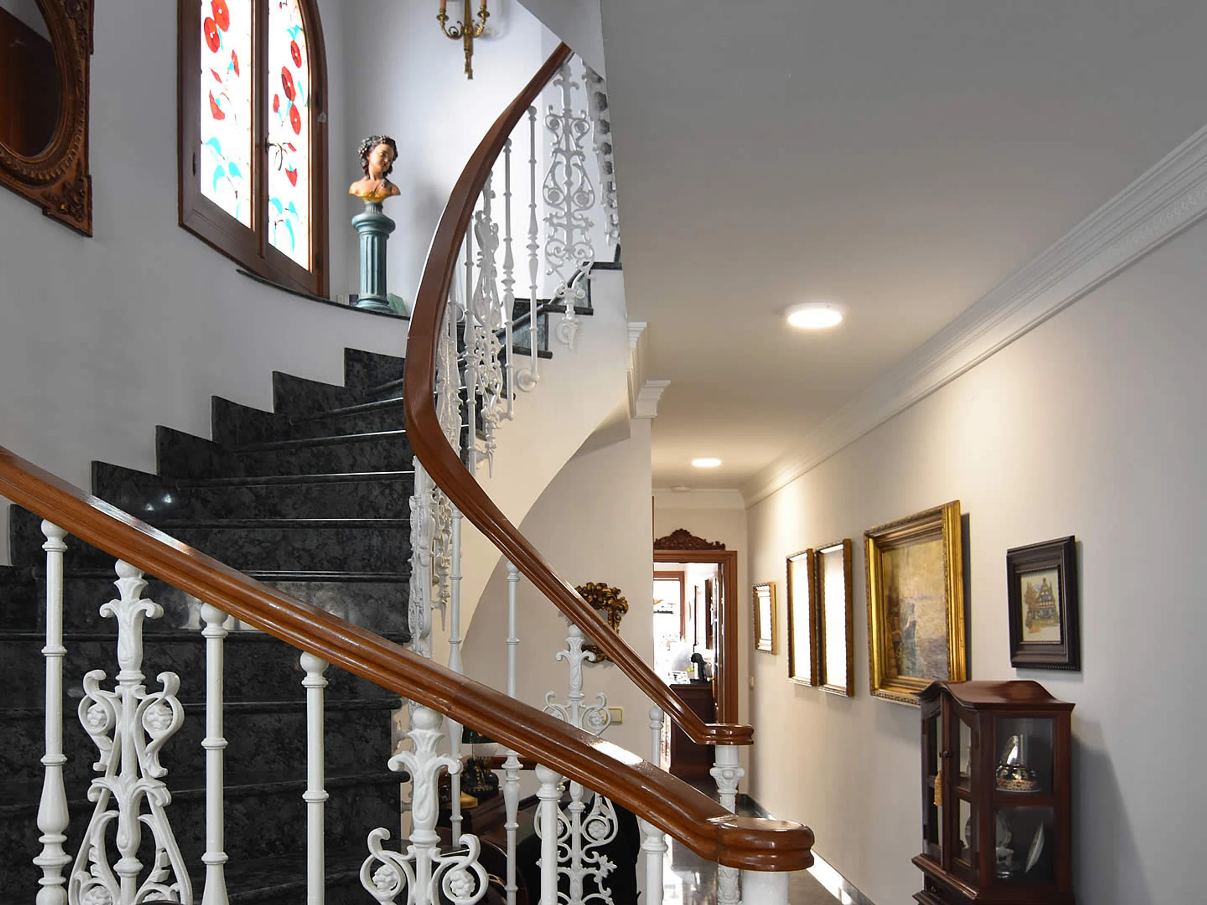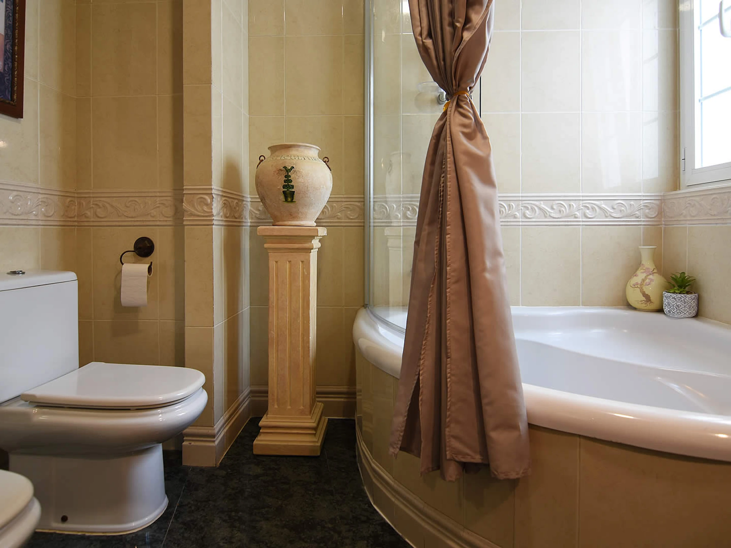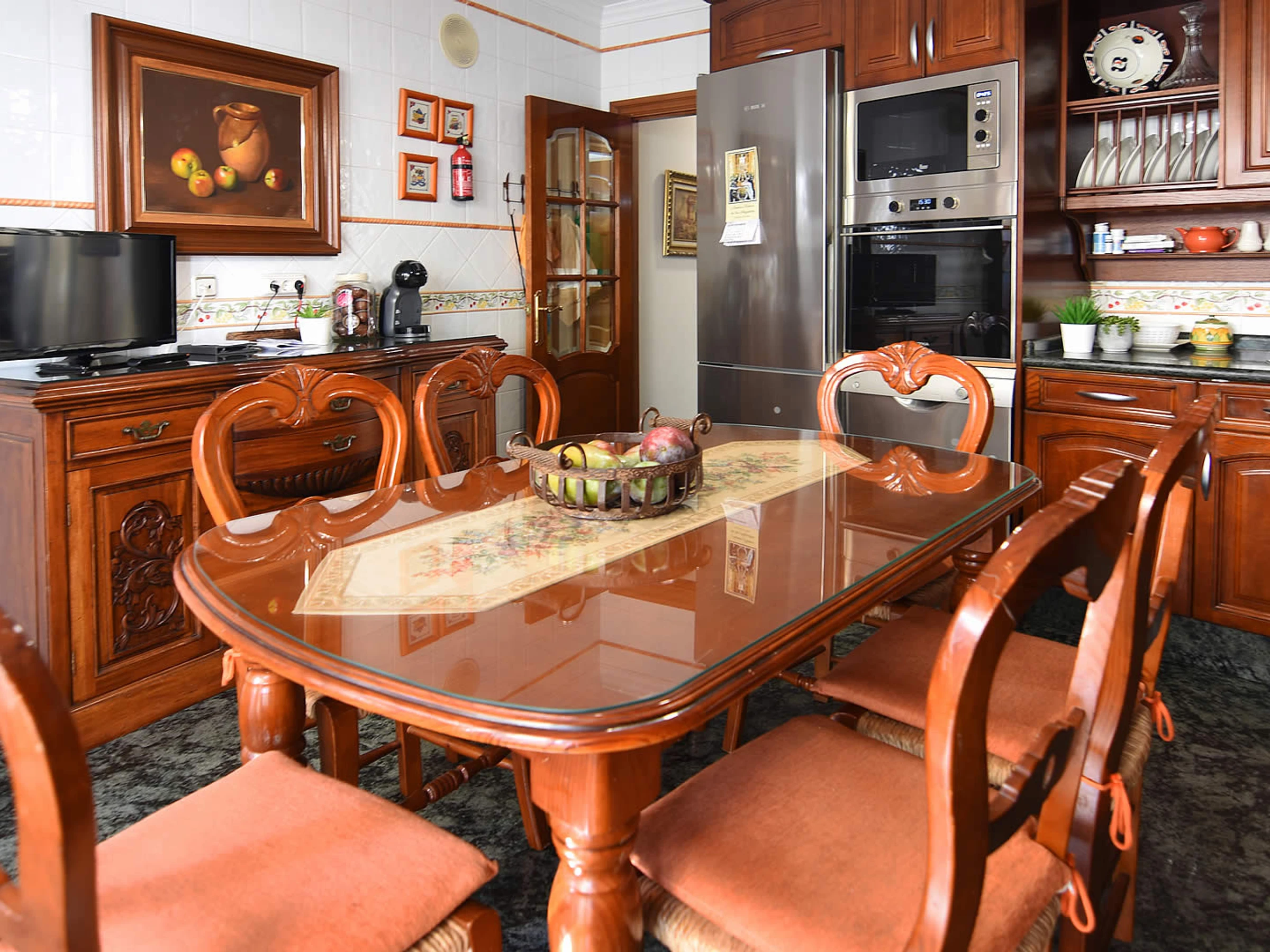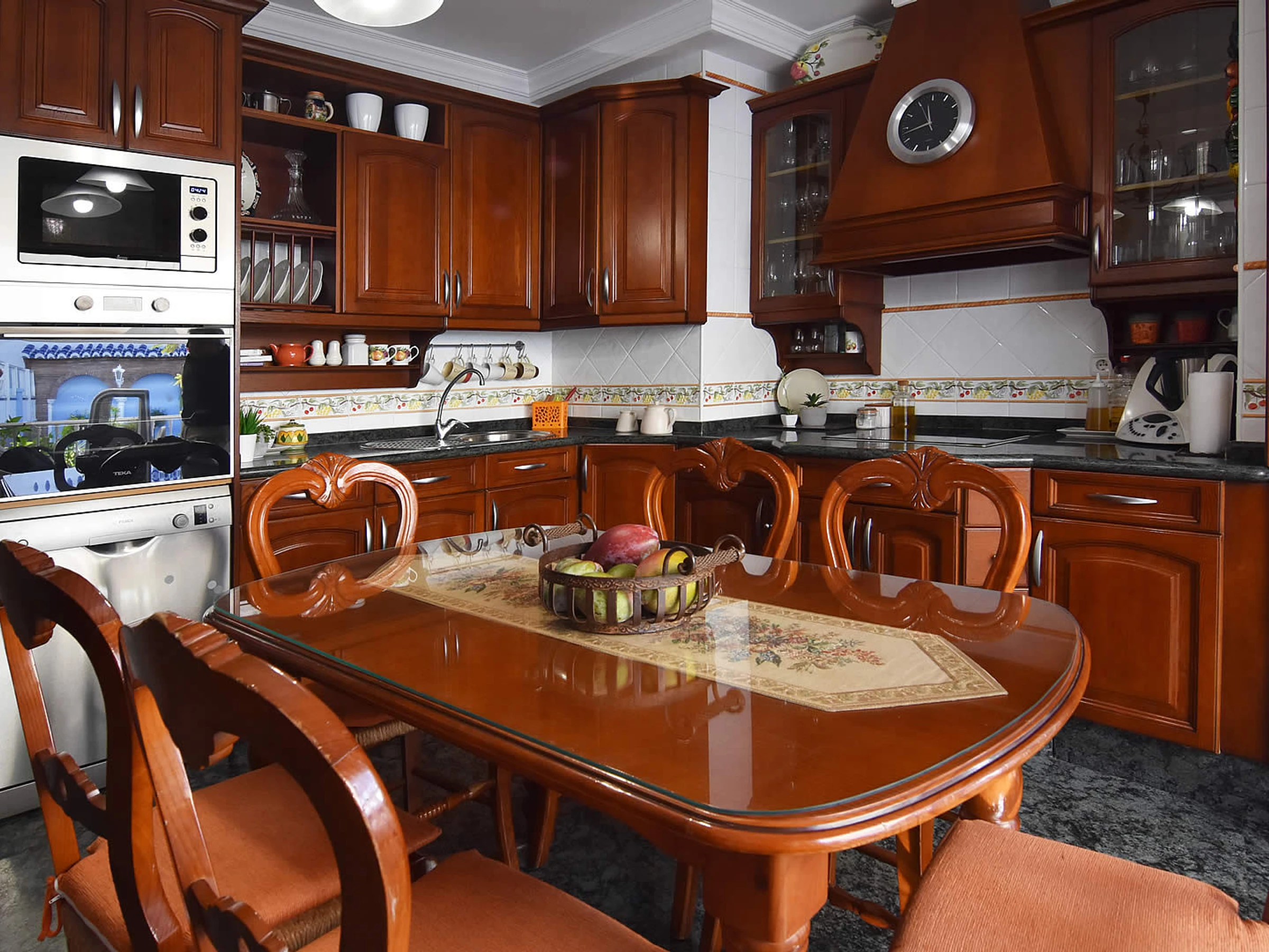 Pas besoin de voiture de location, car vous n'êtes qu'à quelques minutes à pied de la Playa Calahonda de Nerja et des nombreux bars à tapas, restaurants et boutiques du centre de Nerja. En raison de la forte demande de places de stationnement dans la rue de cette zone centrale, nous vous suggérons d'arriver en taxi. Ceux qui souhaitent visiter les belles villes andalouses peuvent soit prendre les transports en commun depuis la gare routière voisine de l'Avenida de Pescia (à 200 m) soit faire une visite guidée. Derrière les façades de cette maison de ville typiquement espagnole, vous trouverez un hébergement spacieux: depuis la rue Mendez Nuñez, des marches mènent à la porte d'entrée qui s'ouvre sur le salon / salle à manger de style classique. À l'arrière et donnant sur la piscine privée (3x5m, profondeur 1,5m), vous trouverez une terrasse relaxante avec un barbecue en brique et une table avec des chaises pour profiter des repas en plein air. À l'étage supérieur, la grande terrasse sur le toit offre une option supplémentaire aux accros du soleil pour se détendre et profiter de celui-ci.