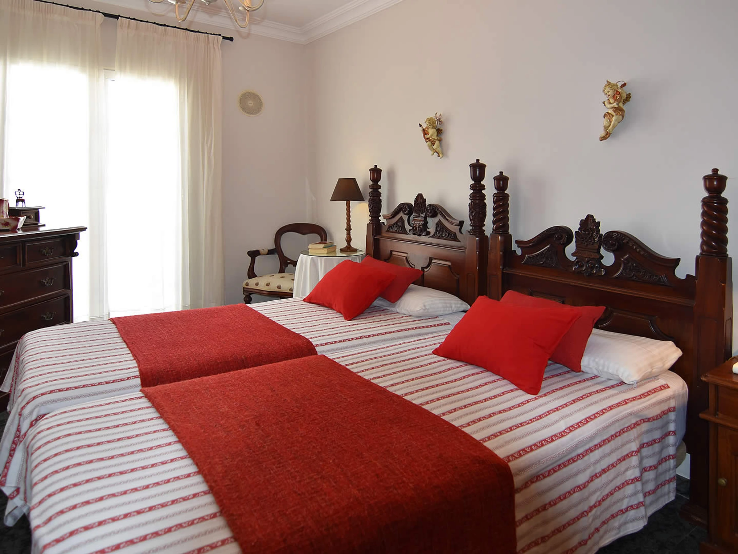 Les chambres sont toutes situées au premier étage et se composent d'une chambre principale avec une salle de bains privée et un coin salon donnant sur la piscine en contrebas. De plus, il y a aussi 2 chambres lits jumeaux qui partagent une grande salle de bain adjacente avec une baignoire d'angle.