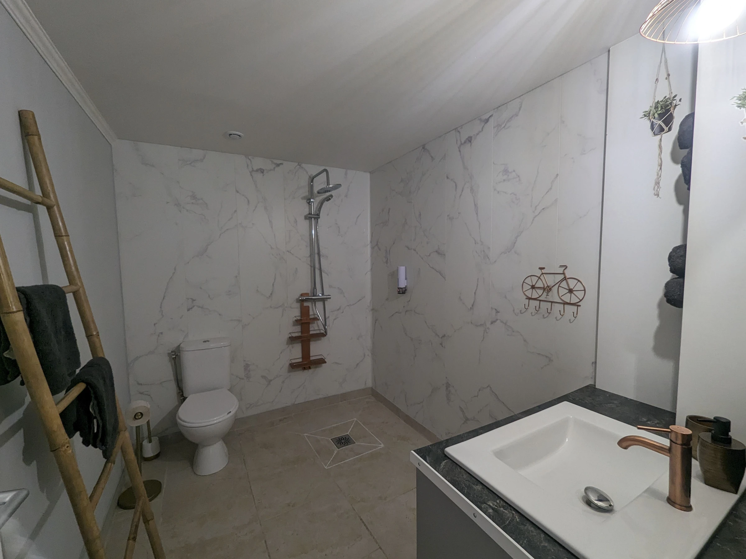 Le logement est de plain pied et la salle de bain à un accès PMR.