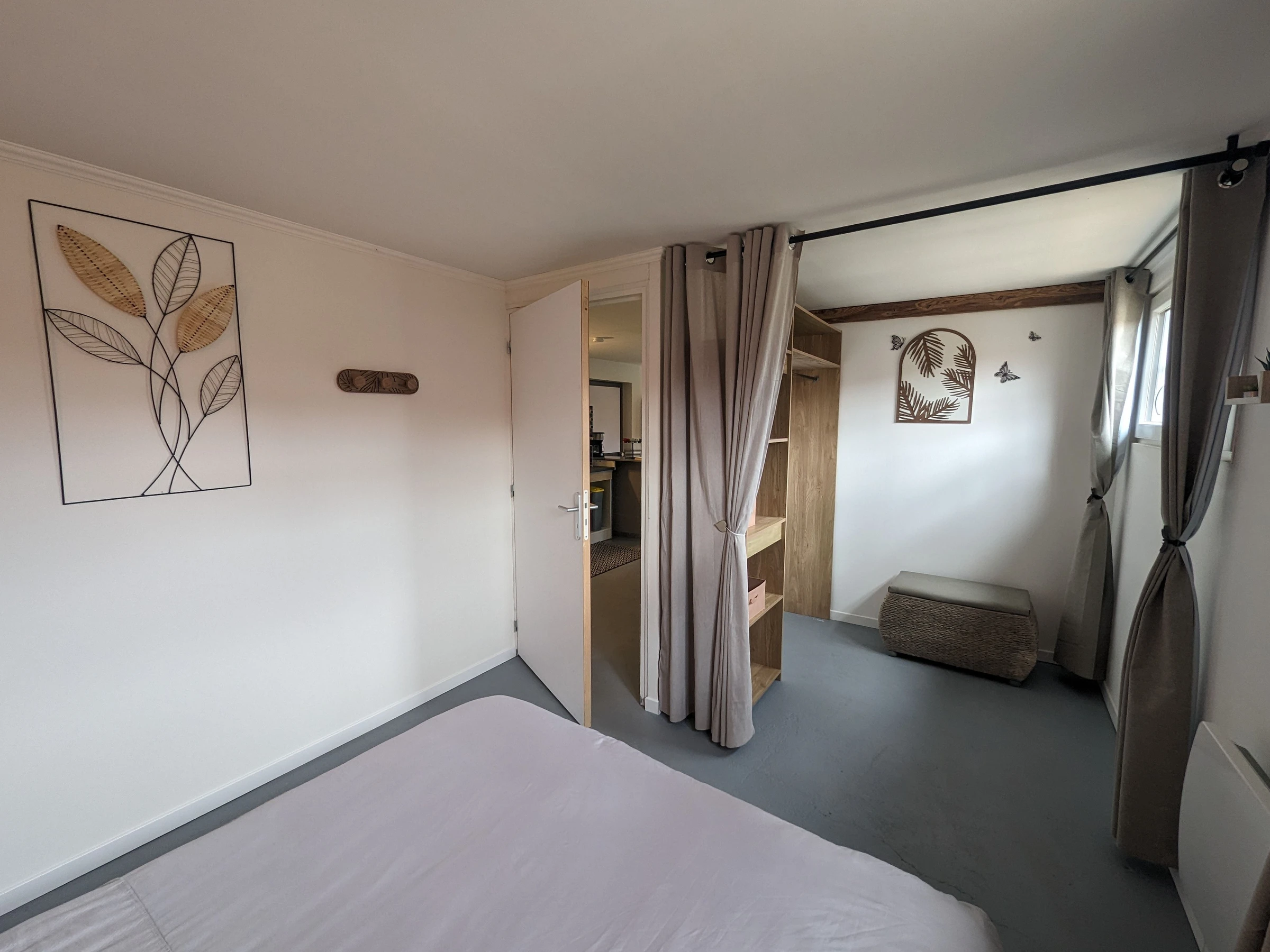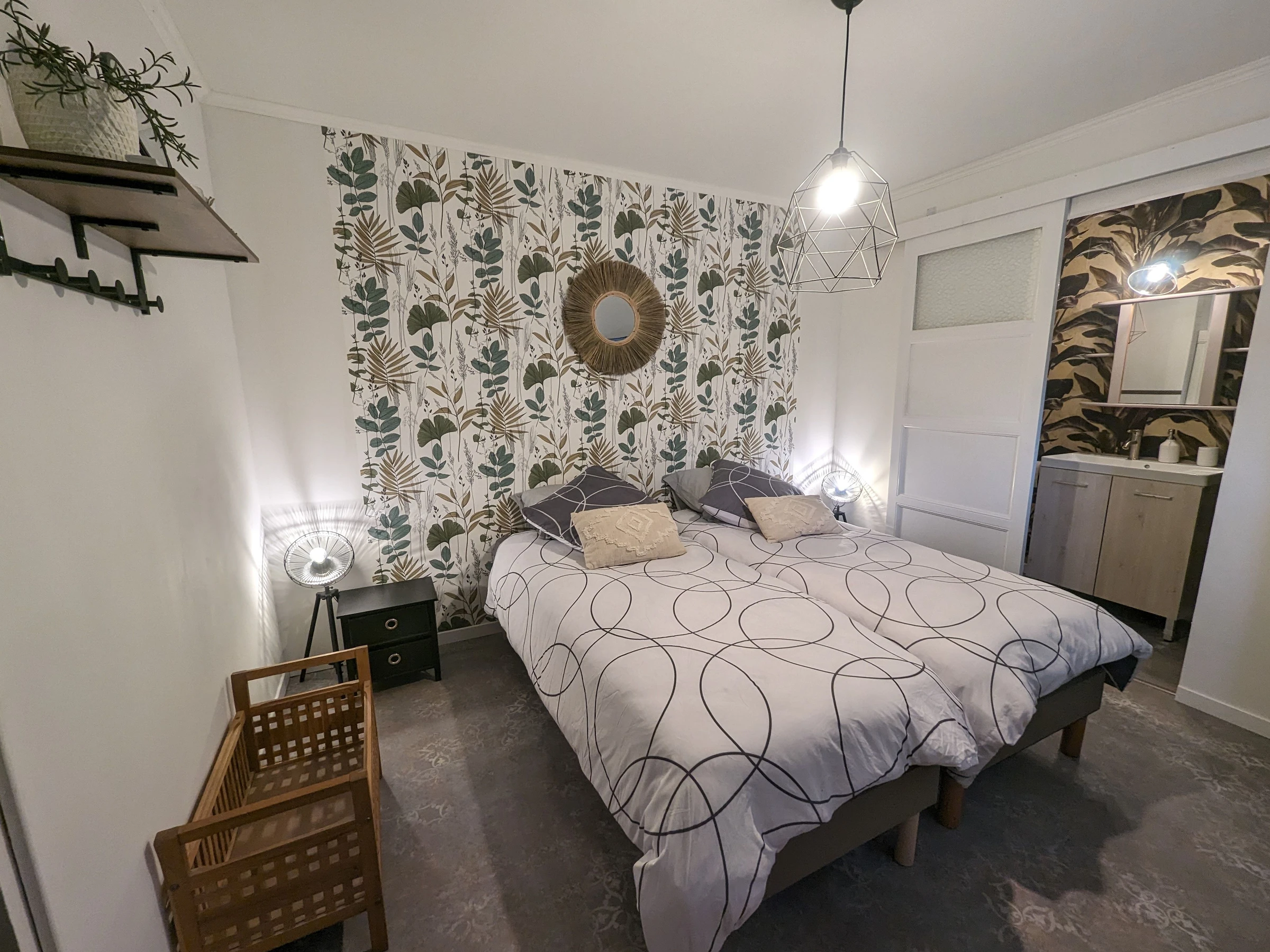 Ce gîte pour 4 personnes vous accueille de janvier à octobre. Il se compose d'une grande pièce à vivre donnant accès sur une chambre avec un lit de 160 et sur une salle d'eau avec toilettes. La seconde chambre se situe dans l'entrée, avec deux lits de 80 pouvant se rapprocher pour ne former plus qu'un lit de 160. Une salle d'eau est également présente dans la chambre avec un toilette.