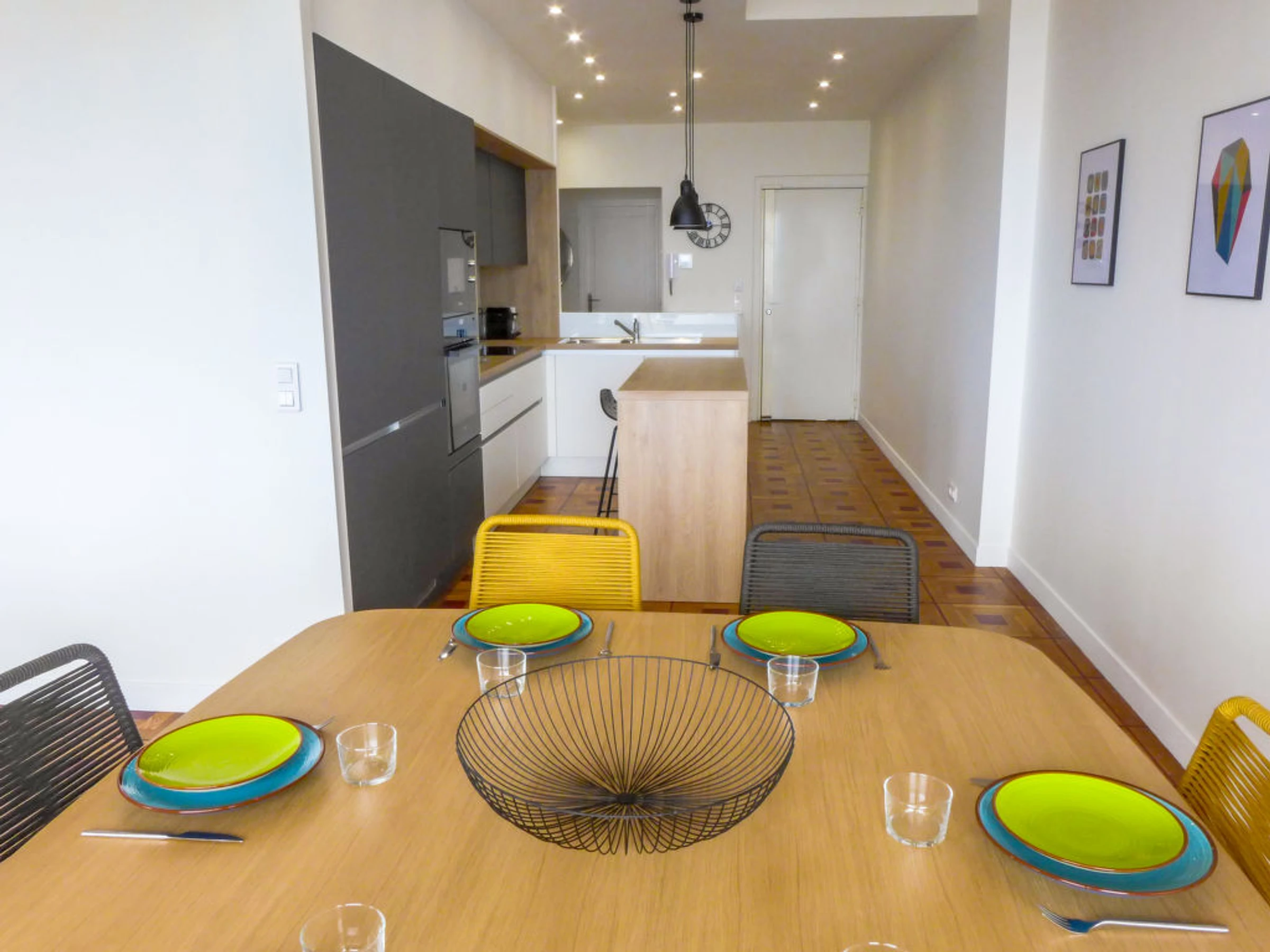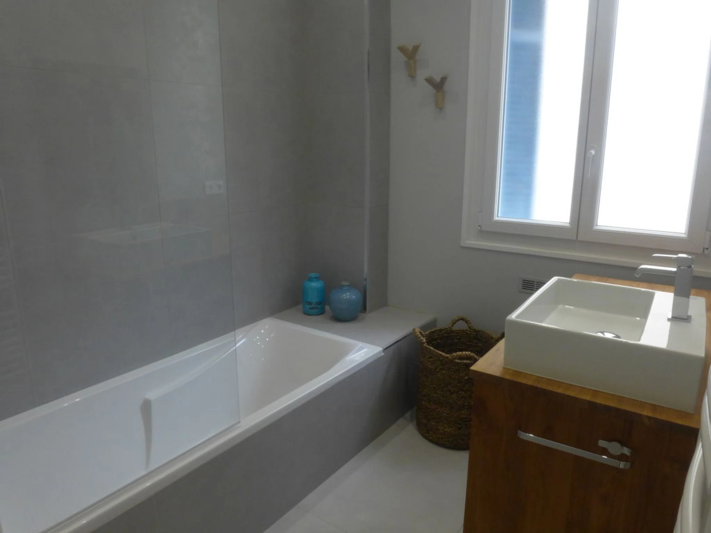 Apt 4 pièces 120 m2 au 1er étage. Spacieux et clair, complètement rénové en 2017, aménagement agréable: grand séjour/salle à manger avec TV (écran plat), volet roulant électrique. Sortie sur le balcon. 1 chambre avec 1 grand-lit (160 cm, longueur 190 cm), douche/WC. 1 chambre avec 1 grand-lit (160 cm, longueur 190 cm). Sortie sur le balcon. 1 chambre avec 1 x 2 lits superposés (90 cm, longueur 190 cm), TV (écran plat). Sortie sur le balcon. Cuisine ouverte (four, lave-vaisselle, 2 plaques à induction, four micro-ondes, congélateur, ilot de cuisine). Bain/douche, WC séparé. Air-conditionné. Sol en parquet. Superbe vue sur la mer. A disposition: lave-linge, sèche-linge, fer à repasser, sèche-cheveux. Internet (Connexion WIFI, en sus). Garage (1 Voiture), hauteur 200 cm, largeur 300 cm. Veuillez noter: logement pour non fumeurs. 06088003805GT