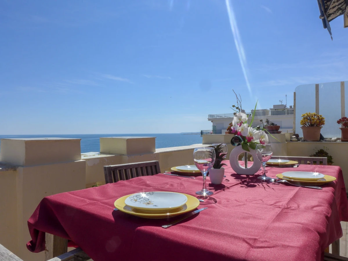 Apt 3 pièces 120 m2 au 6ème étage, situation sud. Séjour/salle à manger avec 1 divan-lit double, table pour les repas et TV. Sortie sur la terrasse. 2 chambres, chaque chambre avec: 1 grand-lit (1 x 140 cm). Cuisine (4 plaques de cuisson, four, lave-vaisselle, four micro-ondes). Bain/WC, douche, WC séparé. Sol en parquet. Balcon terrasse 12 m2, situation sud. Meubles de terrasse. Très belle vue sur la mer. A disposition: lave-linge, téléphone. Internet (Connexion WIFI, gratuit). Belle vue mer depuis la terrasse. Veuillez noter: appartement rénové, équipé de meubles anciens. Caution: Eur 1000. [hidden]