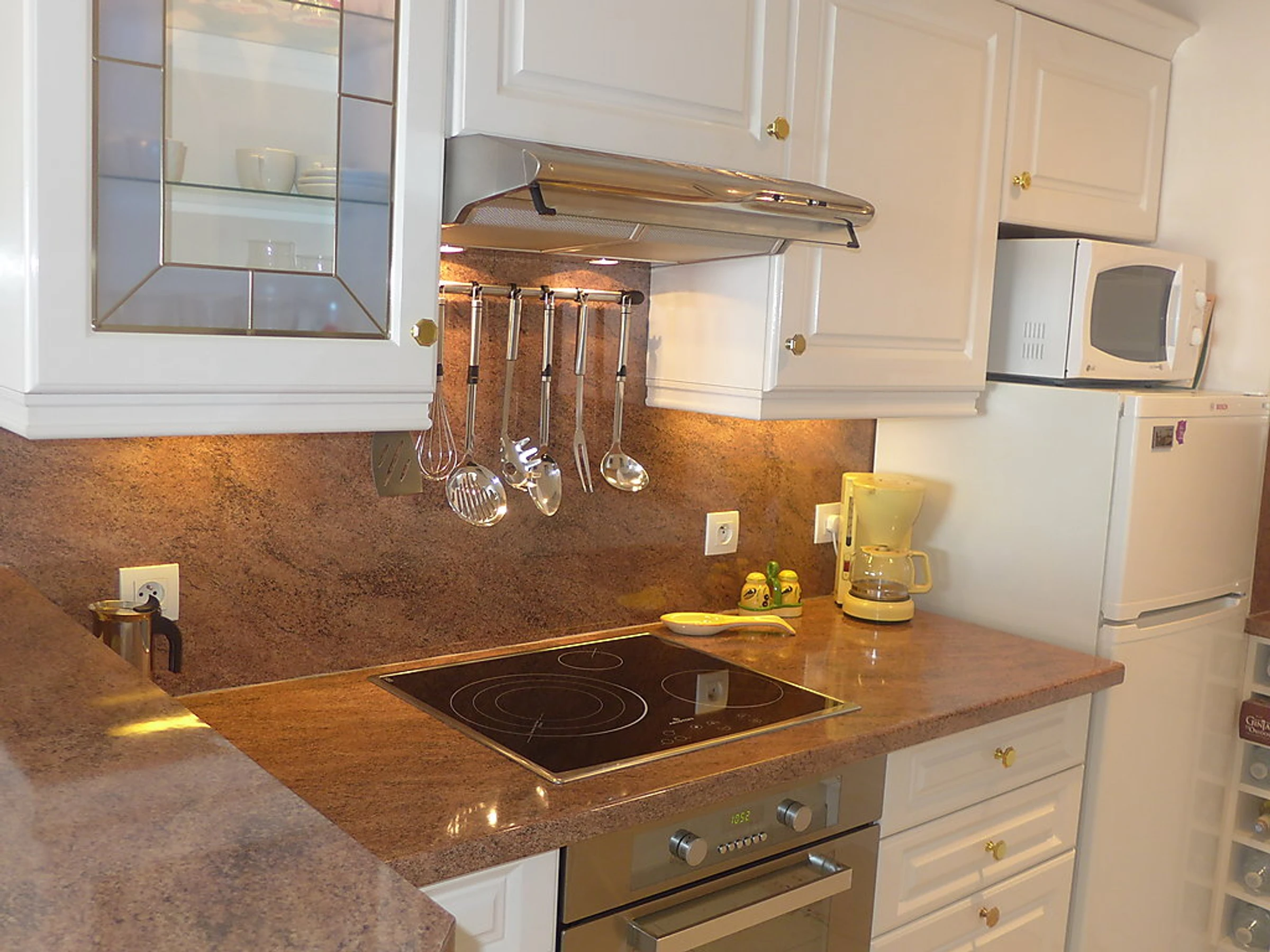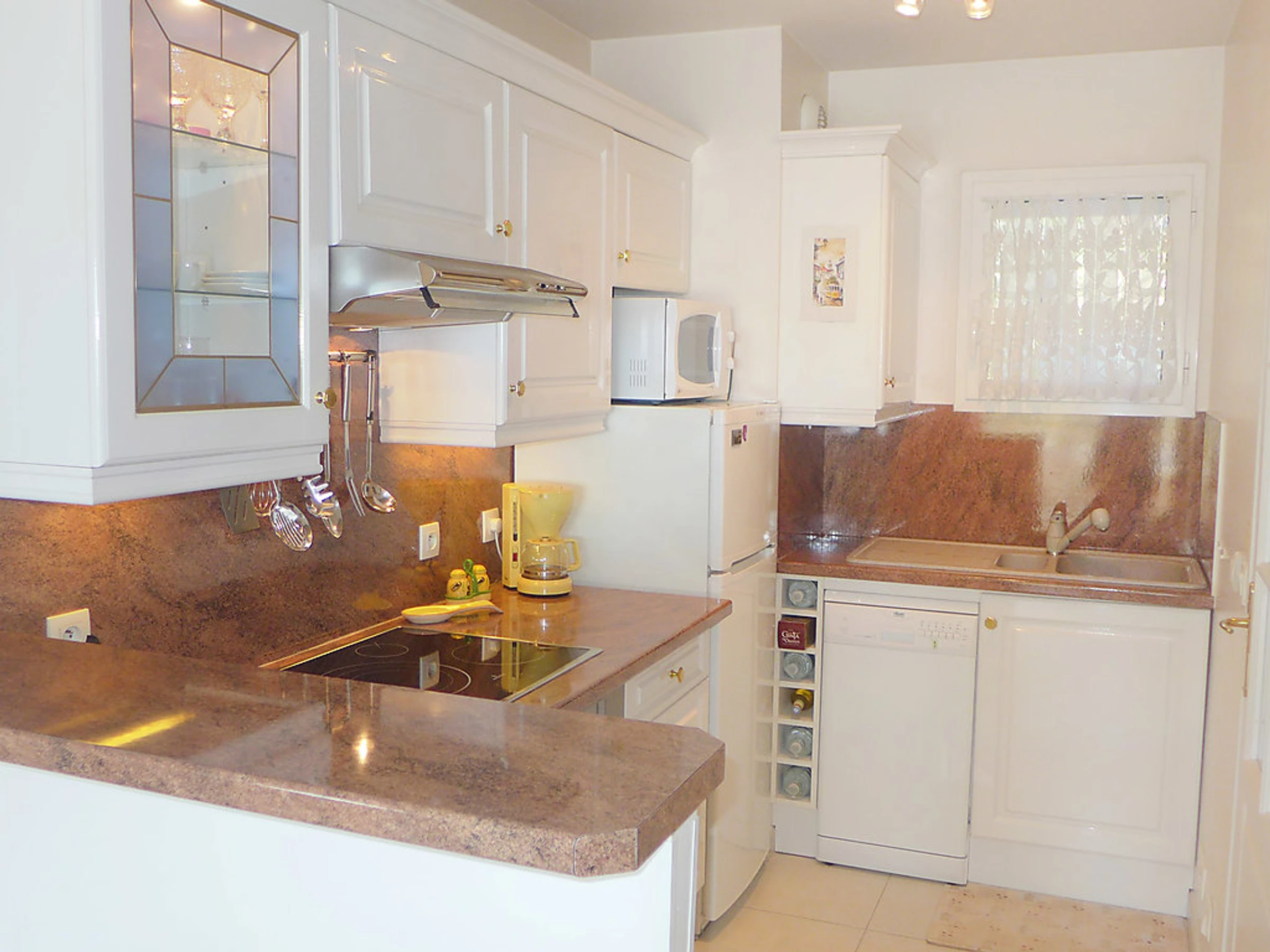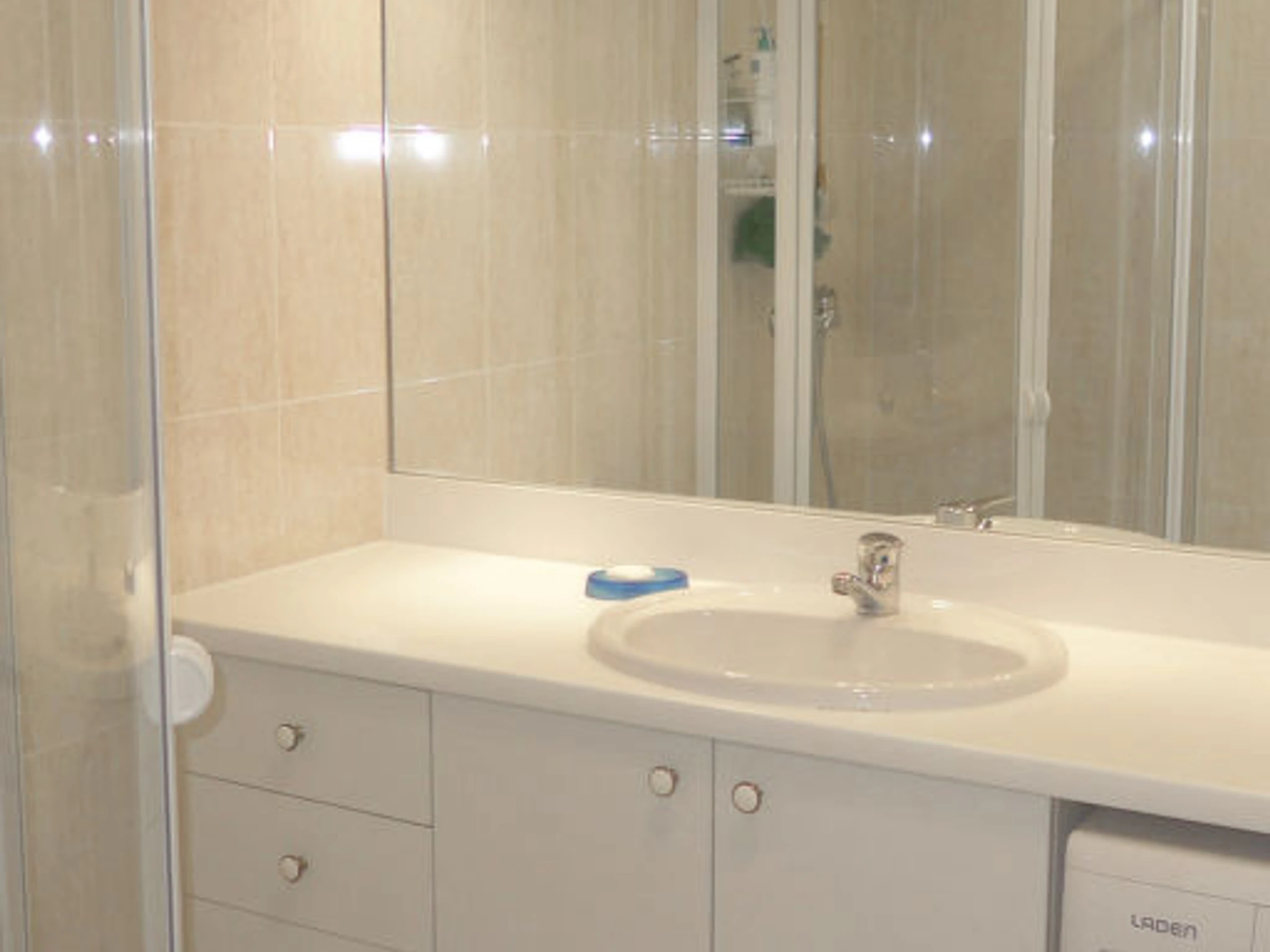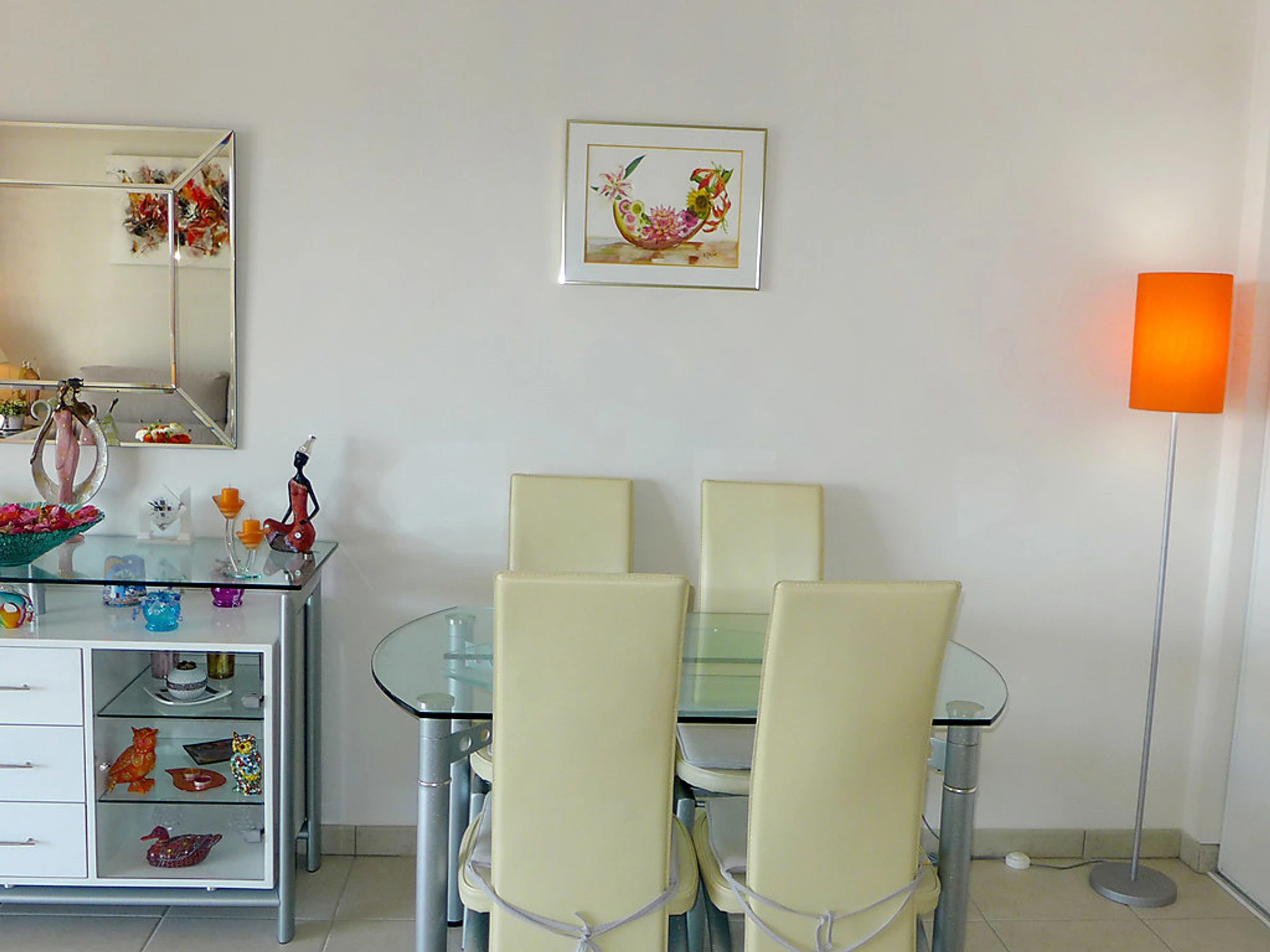 Apt 2 pièces 52 m2 au 1er étage. Aménagement confortable et agréable: séjour/salle à manger avec 1 divan-lit double (140 cm, longueur 190 cm). Sortie sur la terrasse. 1 chambre avec 1 grand-lit (140 cm, longueur 190 cm). Sortie sur la terrasse. Cuisine ouverte (four, lave-vaisselle, 3 plaques vitrocéramique, four micro-ondes, congélateur, cafetière électrique). Douche, WC séparé. Air-conditionné. Terrasse 13 m2, situation sud. Meubles de terrasse, chaises longues. Belle vue éloignée sur la mer. A disposition: lave-linge, fer à repasser, sèche-cheveux. Garage No 40. Disponible sur le site avec supplément: Linge de lit (premier jeu) 10.0EUR par personne, Serviettes (premier jeu) 5.0EUR par personne Services supplémentaires obligatoires sur le site: Taxe de séjour 0.75EUR par personne et par jour