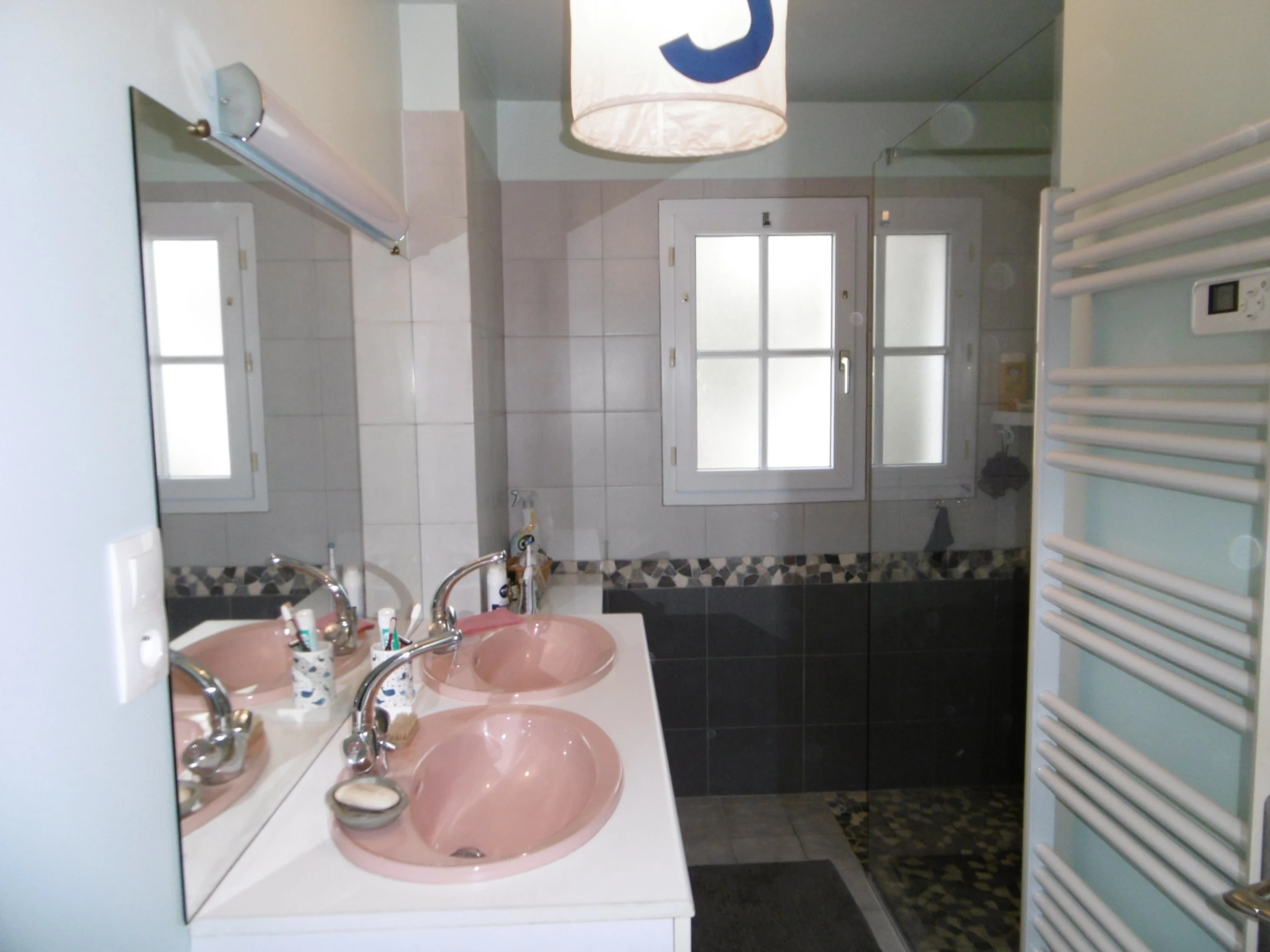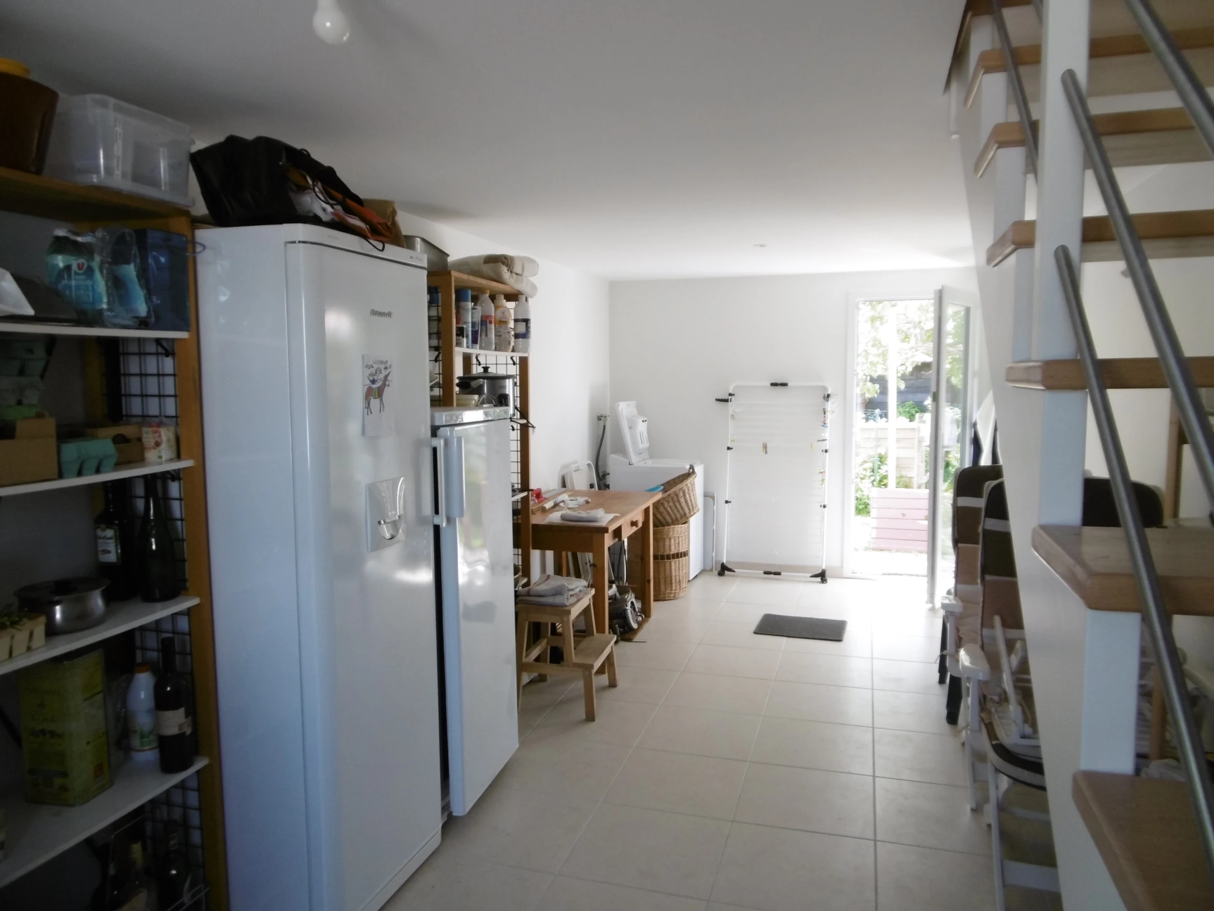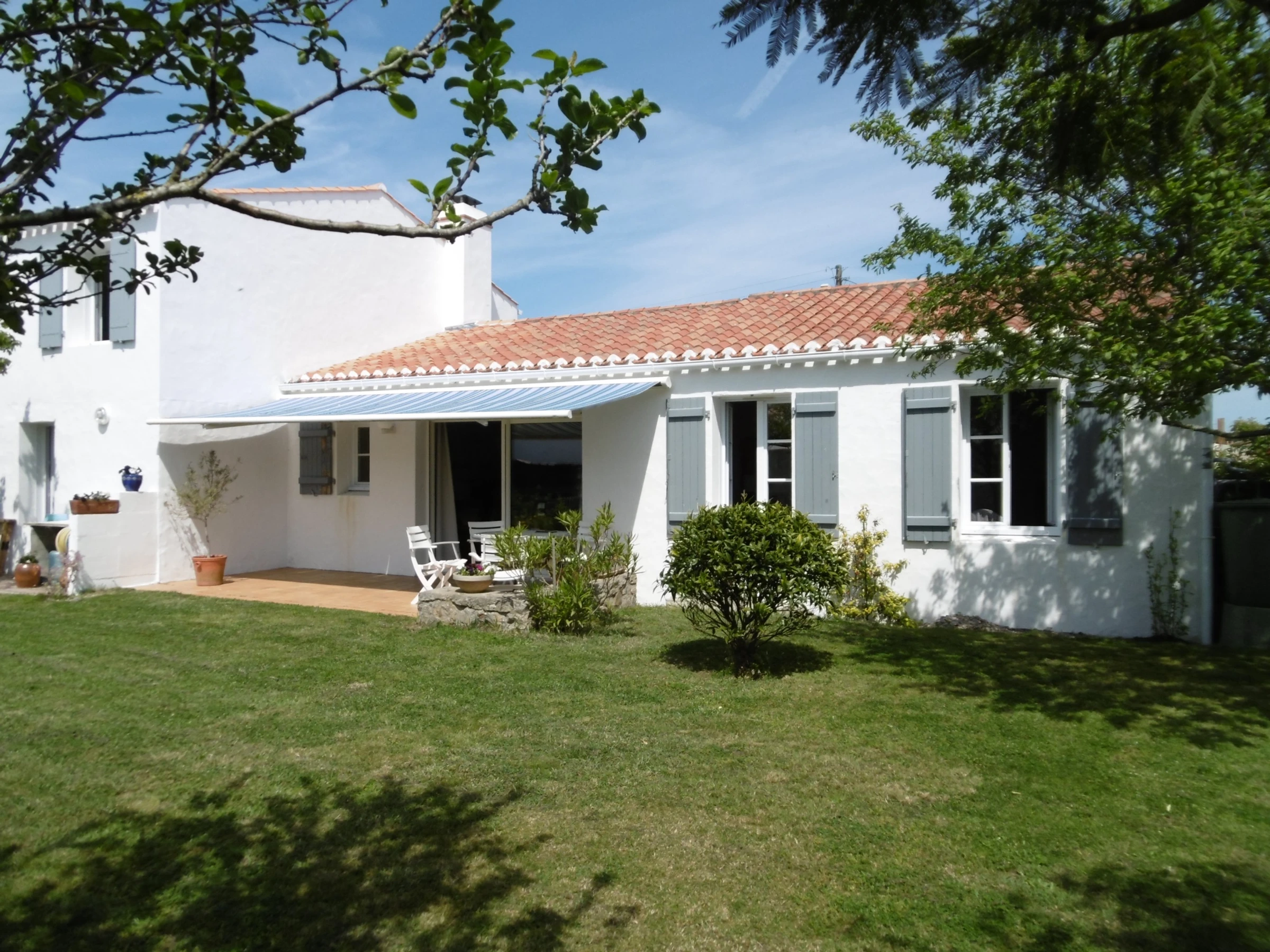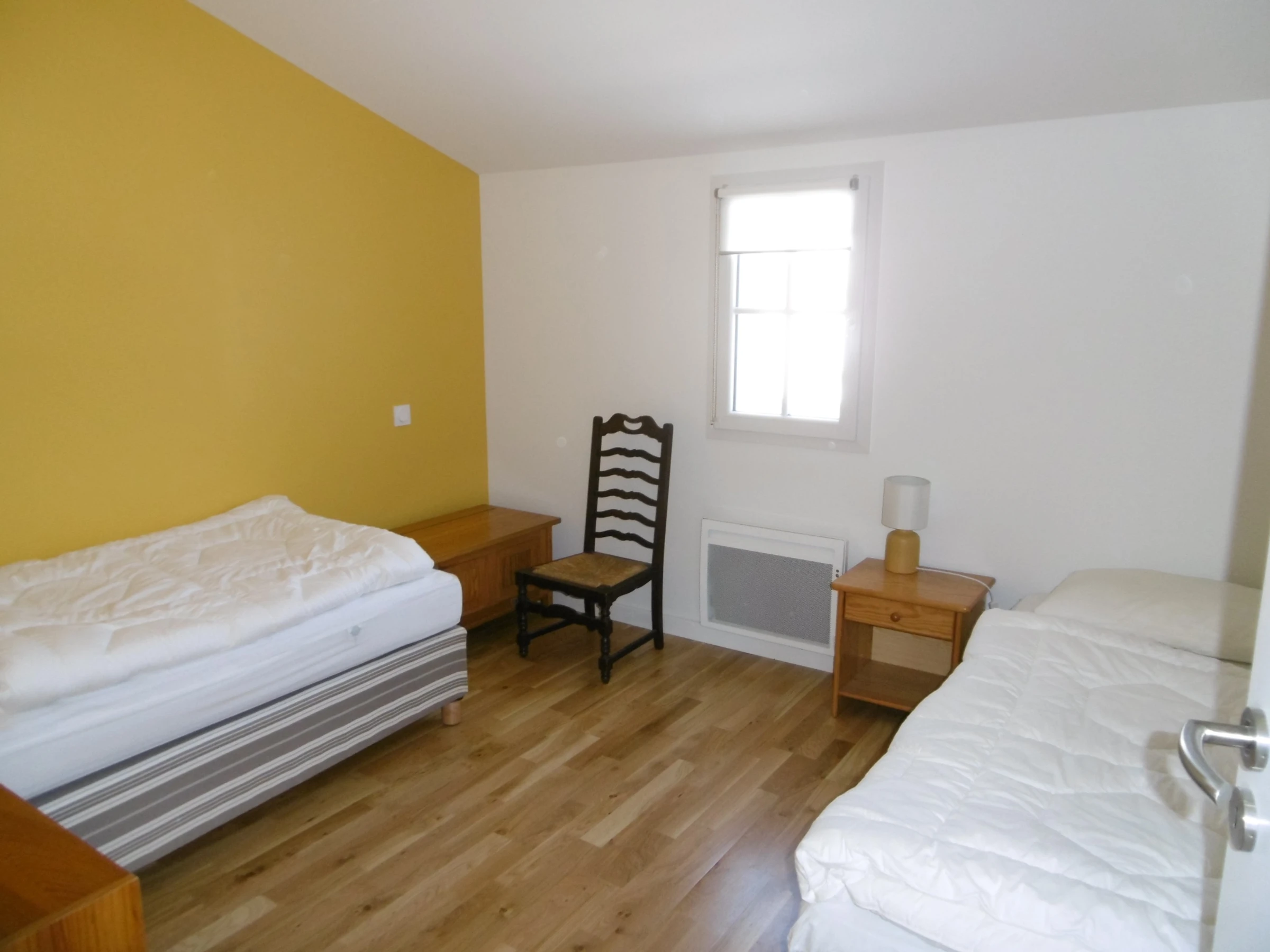 Maison à étage de bon confort - 120 m² environ - 7 personnes comprenant pièce de vie avec coin salon & cheminée, cuisine ouverte aménagée et équipée, une chambre au rez de chaussée avec deux lits x 80 cm - Salle d'eau (douche italienne) - wc indépendant - Partie neuve à l'étage : Une chambre avec 2 lits en 80 cm = 160 cm - Une chambre avec 2 lits x 90 cm, une chambre avec un lit en 90 cm - Salle d'eau (douche italienne) - wc indépendant avec lave-mains - Préau pour rangement vélos et planches à voile, grand cellier - Lave-linge, congélateur, plaque vitro-céramique (3), lave-vaisselle, micro-ondes, accès internet, télévision écran plat, 2 sèches-serviettes & un lit pliant bébé - Jardin clos ombragé avec terrasse - Parking dans la propriété - Animaux non admis. Possibilité d'un forfait ménage de 130 €.