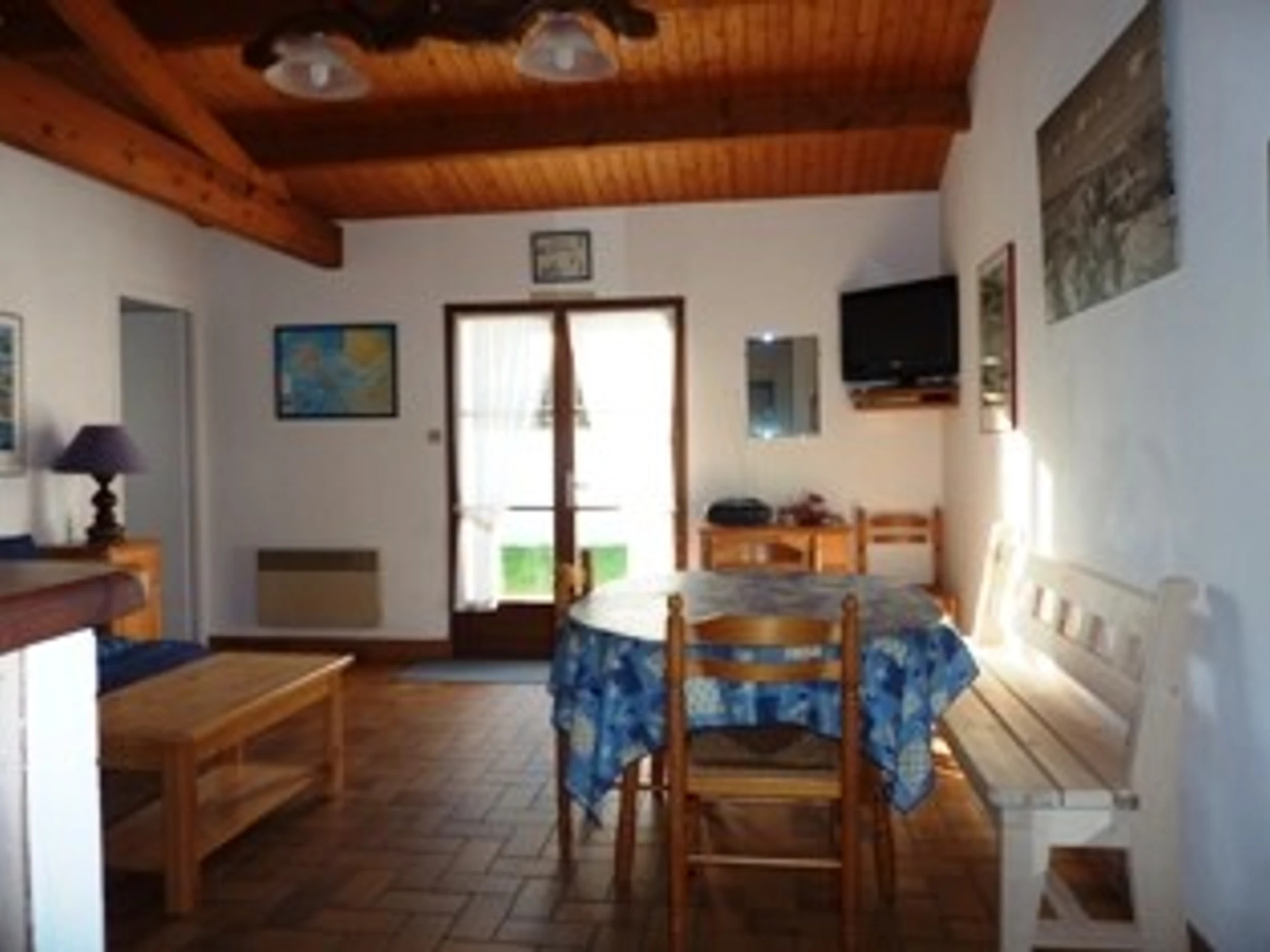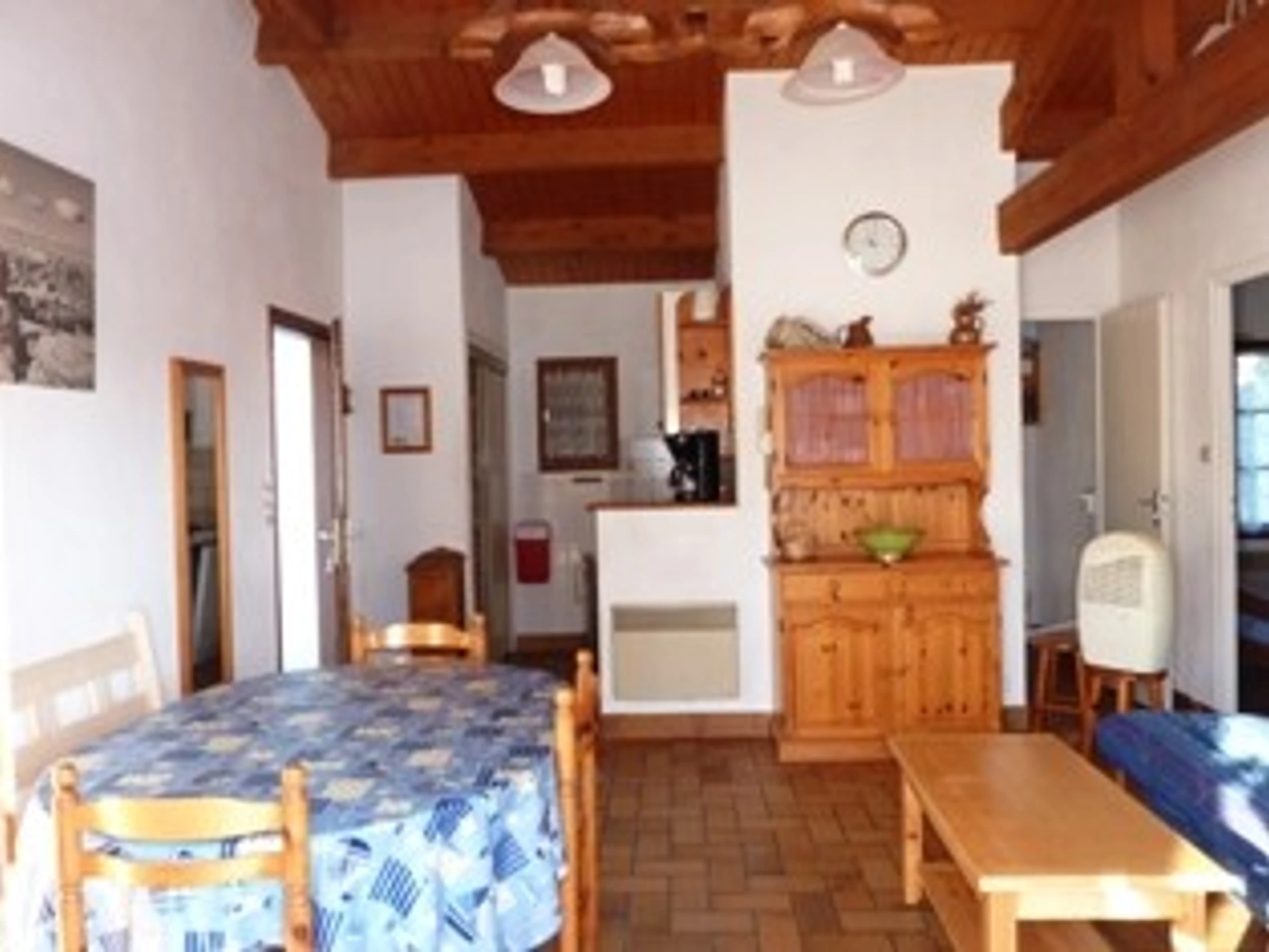 Située à 900m de la plage et du centre de la station, à l'orée du Bois de la Chaise, au calme d'une impasse, cette maison de vacances, comprend un coin cuisine équipé et aménagé ouvert sur un séjour lumineux donnant accès au jardin, une chambre avec un lit double, une chambre avec deux lits d'une place et une chambre avec un canapé clic clac pour deux personnes, une salle d'eau et un wc.