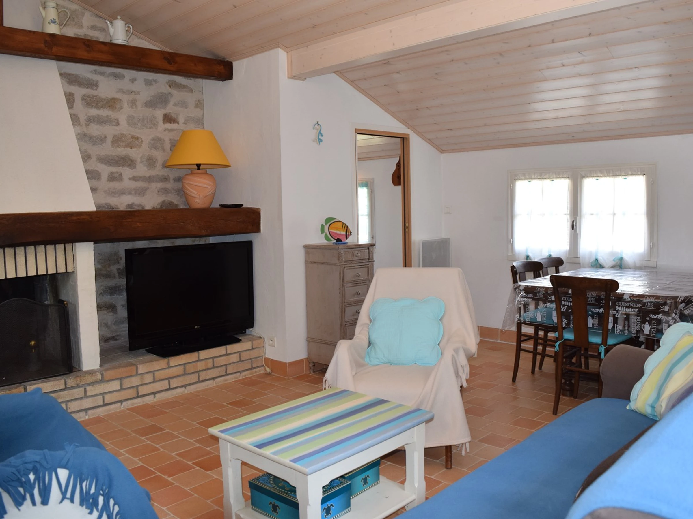 Cette charmante maison en pierre de plain pied située à 400 m de la plage des Dames et à 1600 m des commerces de Noirmoutier, vous propose pour passer d'agréables vacances d'un séjour avec une télévision et canapé convertible en lit de 160, une cuisine équipée, une chambre parentale avec un lit double en 140, une chambre avec un lit double, une salle d'eau, un wc indépendant.