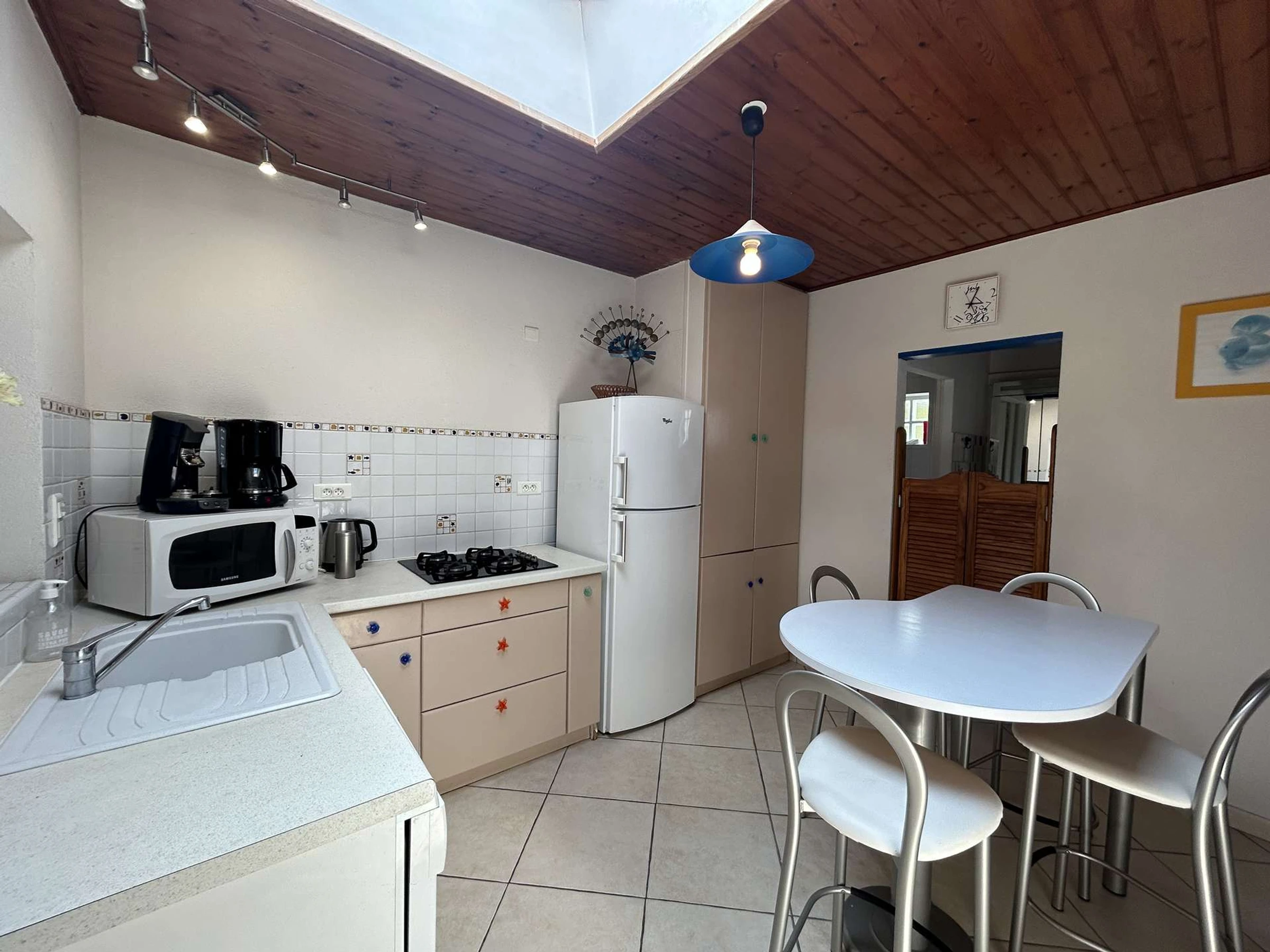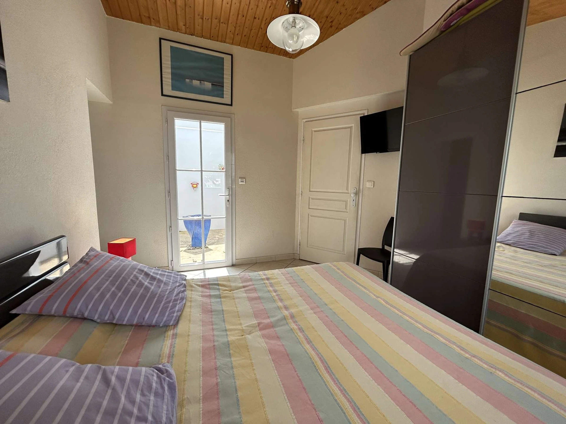 Située dans une impasse, à 500m de la plage et 500m du port cette maison comprend un salon séjour avec canapé convertible, une télévision, DVD,WIFI, NETFLIX, une cuisine aménagée, deux chambres avec des lits 140, un coin douche, lavabo et wc séparé, une chambre avec un lit double, une télévision et une salle d’eau attenante avec wc et un cellier buanderie.