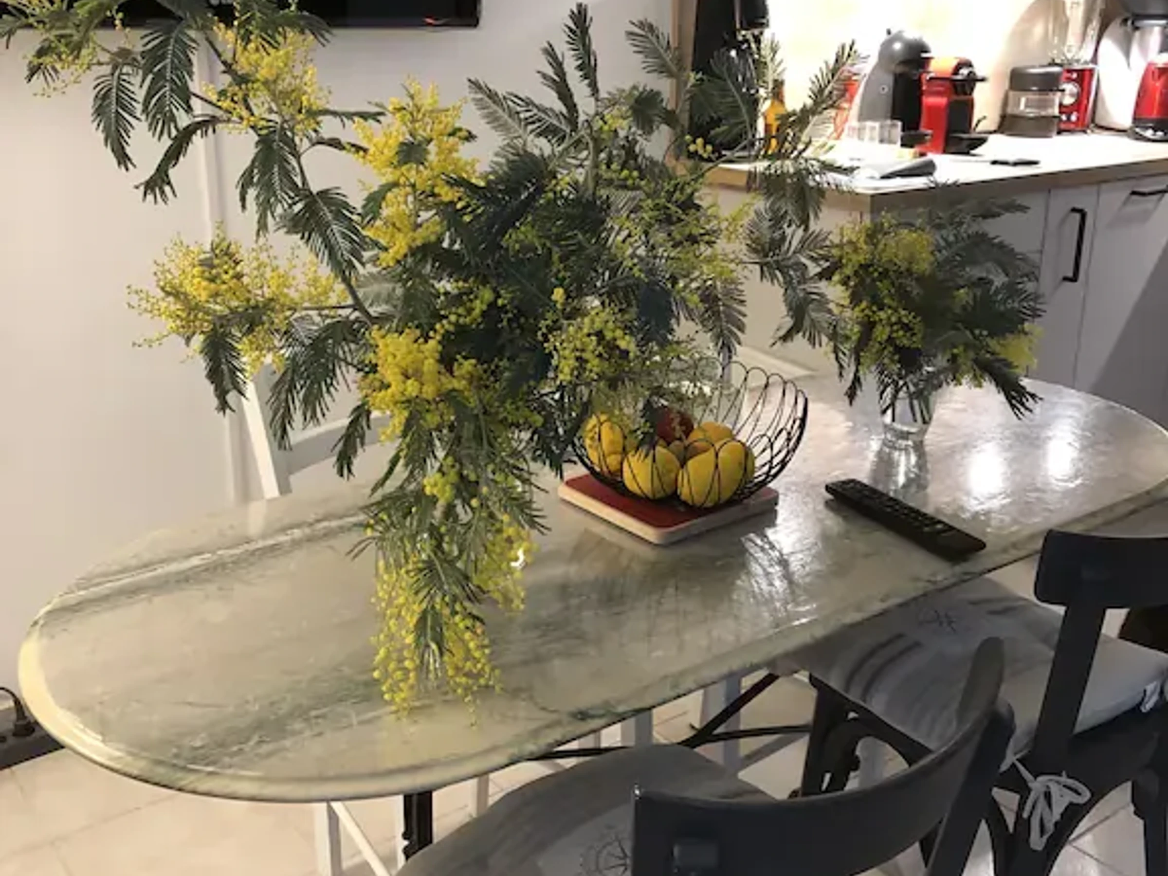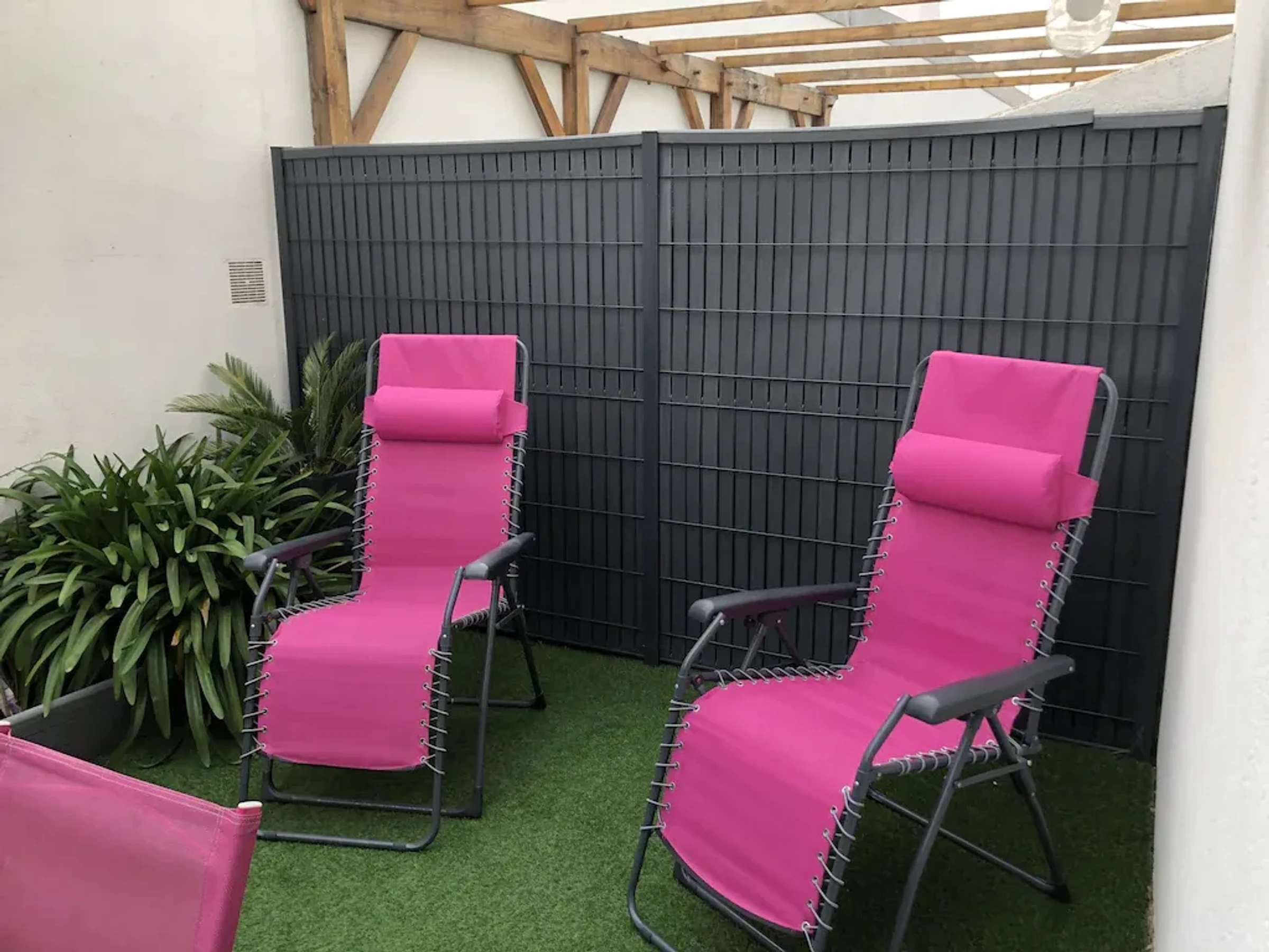 Cette pièce de vie dessert une terrasse privée, exposée plein sud et équipée d'un store banne électrique/salon de jardin/transats et d'une plancha.