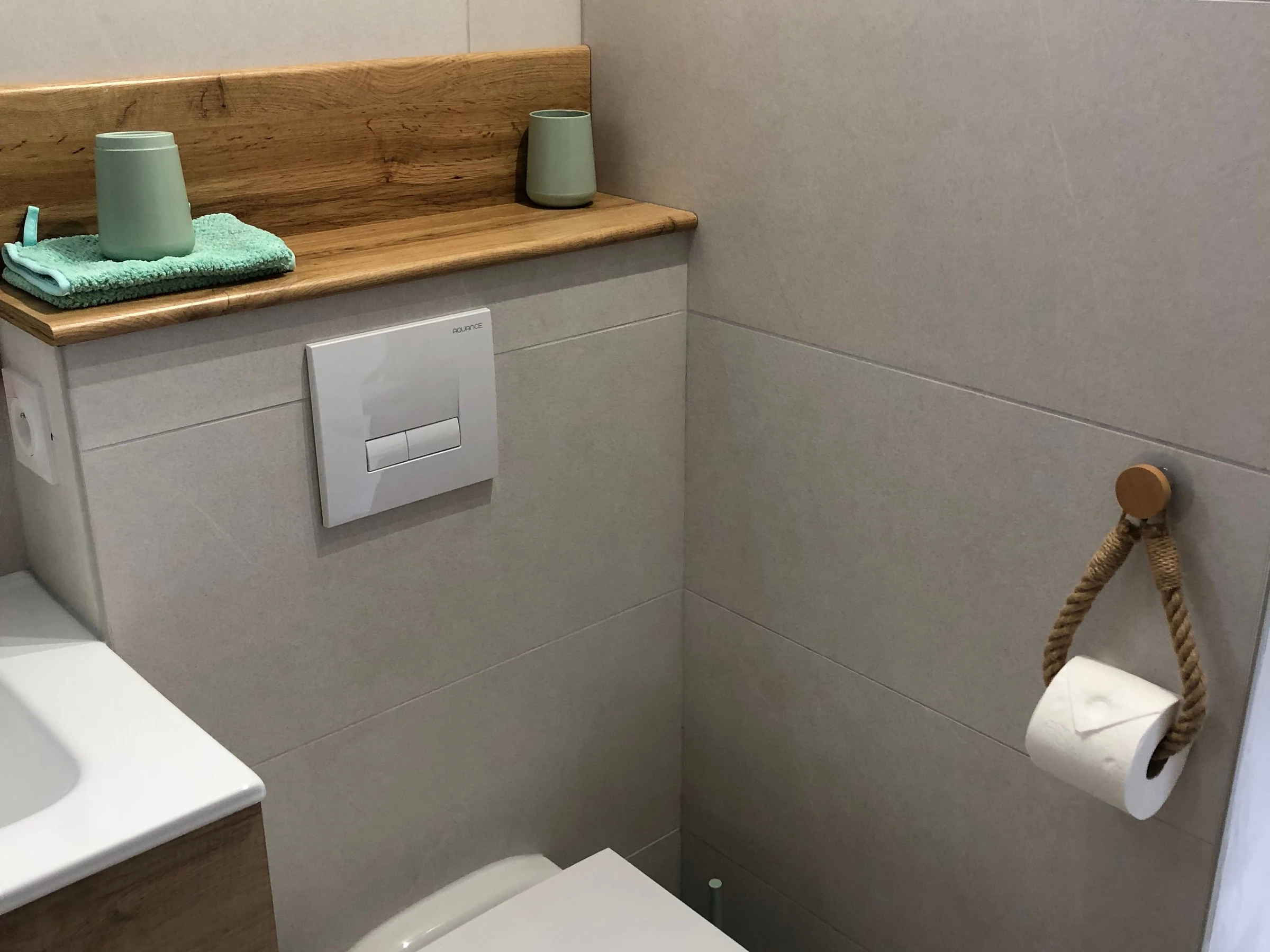 A l'entrée : une salle d'eau avec douche/wc/lave linge.