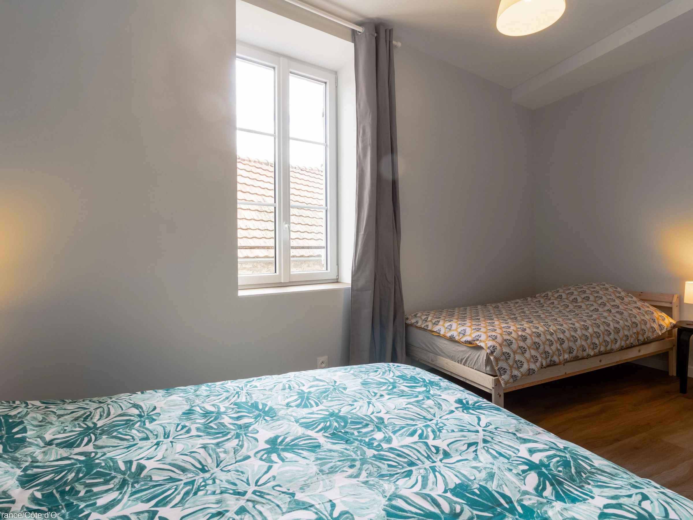 Une chambre pouvant accueillir 3 personnes avec un lit 2 pers . (140x200) et un lit 1 pers. (90x200). Une seconde chambre équipée de deux lits 1 pers. (90x200) et une troisième avec un lit 2 pers. (140x200).