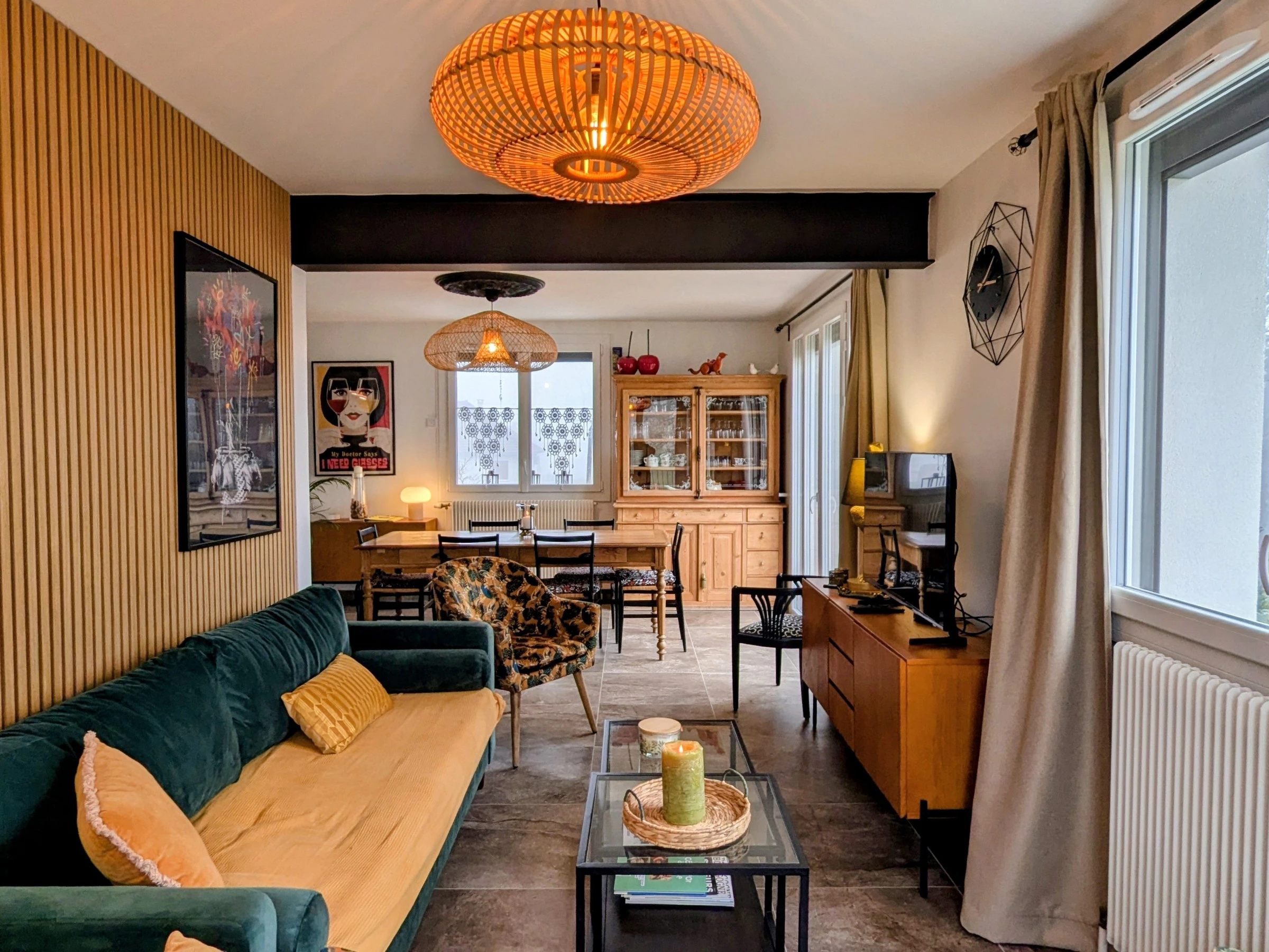 A Nolay, dans un quartier calme, à quelques minutes du centre du village Le gîte "le 8Clos", est une maison indépendante entièrement rénovée et décorée avec goût. Au 1er niveau (maison sur sous-sol, accès par un escalier ) : cuisine entièrement équipée, salle à manger ouverte sur salon, , avec TV, wifi, jeux de société... avec accès direct à la terrasse, 1 chambre avec 1 lit de 180 cm, 1 chambre avec 2 lits de 90 cm jumelables, 1 salle d'eau, 1 WC indépendant. A l'étage : 1 salon sur palier avec TV, 1 chambre avec 1 lit de 160 cm avec bureau, 1 salle d'eau avec WC. Clim réversible à l'étage. Au sous-sol : buanderie avec lave linge/sèche linge combiné. Lit parapluie et chaise haute à disposition. A l'extérieur : grand terrain de 2000m², entièrement clos, terrasse avec store banne, salon de jardin, barbecue à charbon. Garage.