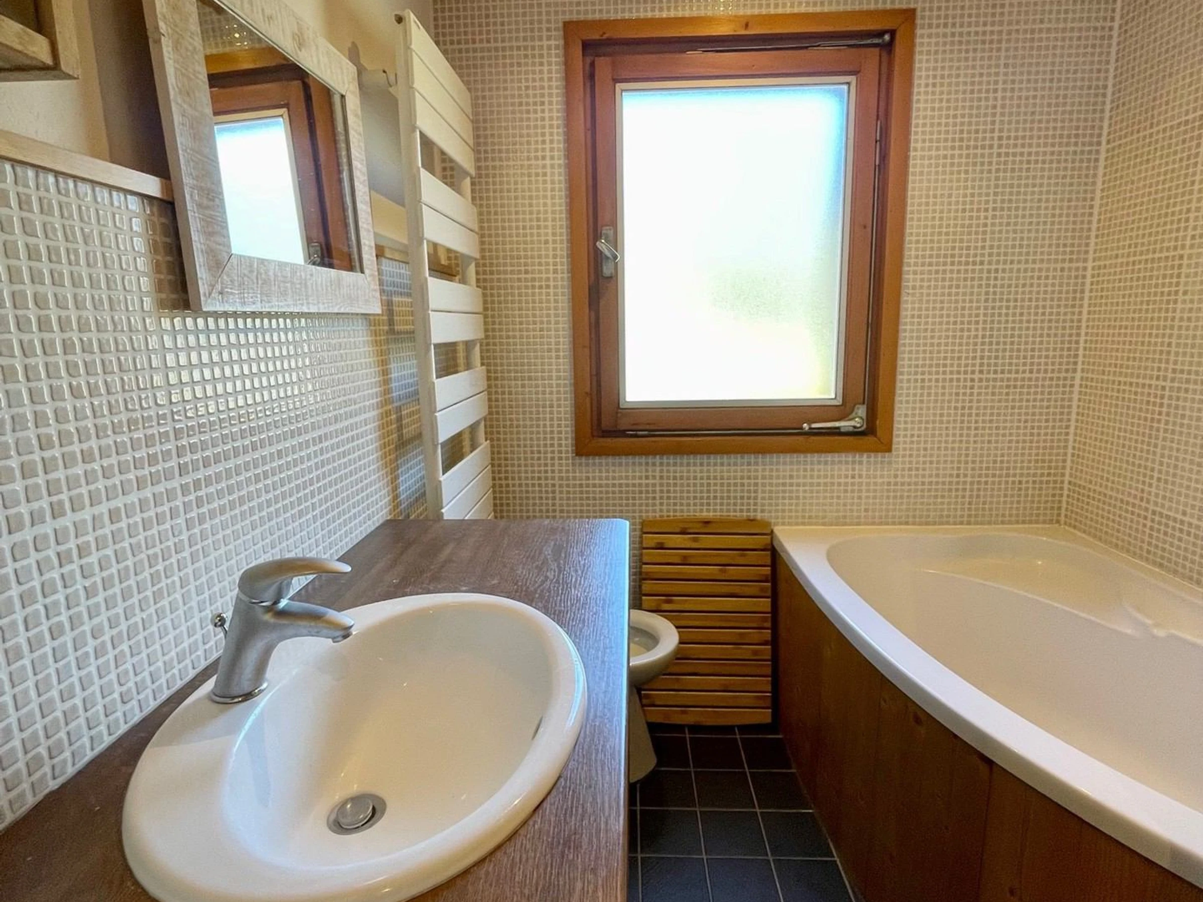 A deux pas de La Ferme de Victorine, spacieux appartement de 125m² situé dans un chalet divisé en trois appartements. Il se situe au premier étage avec une terrasse de 23m² en exposition Sud avec vue sur les montagnes, les pistes, et le Mont Charvin.