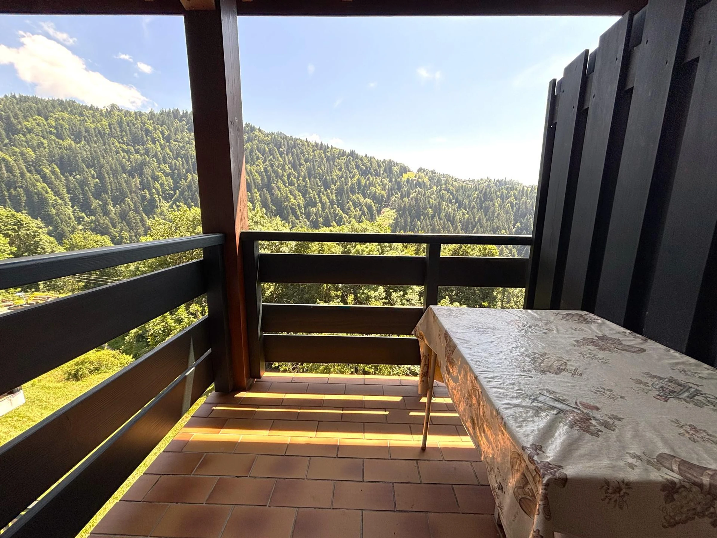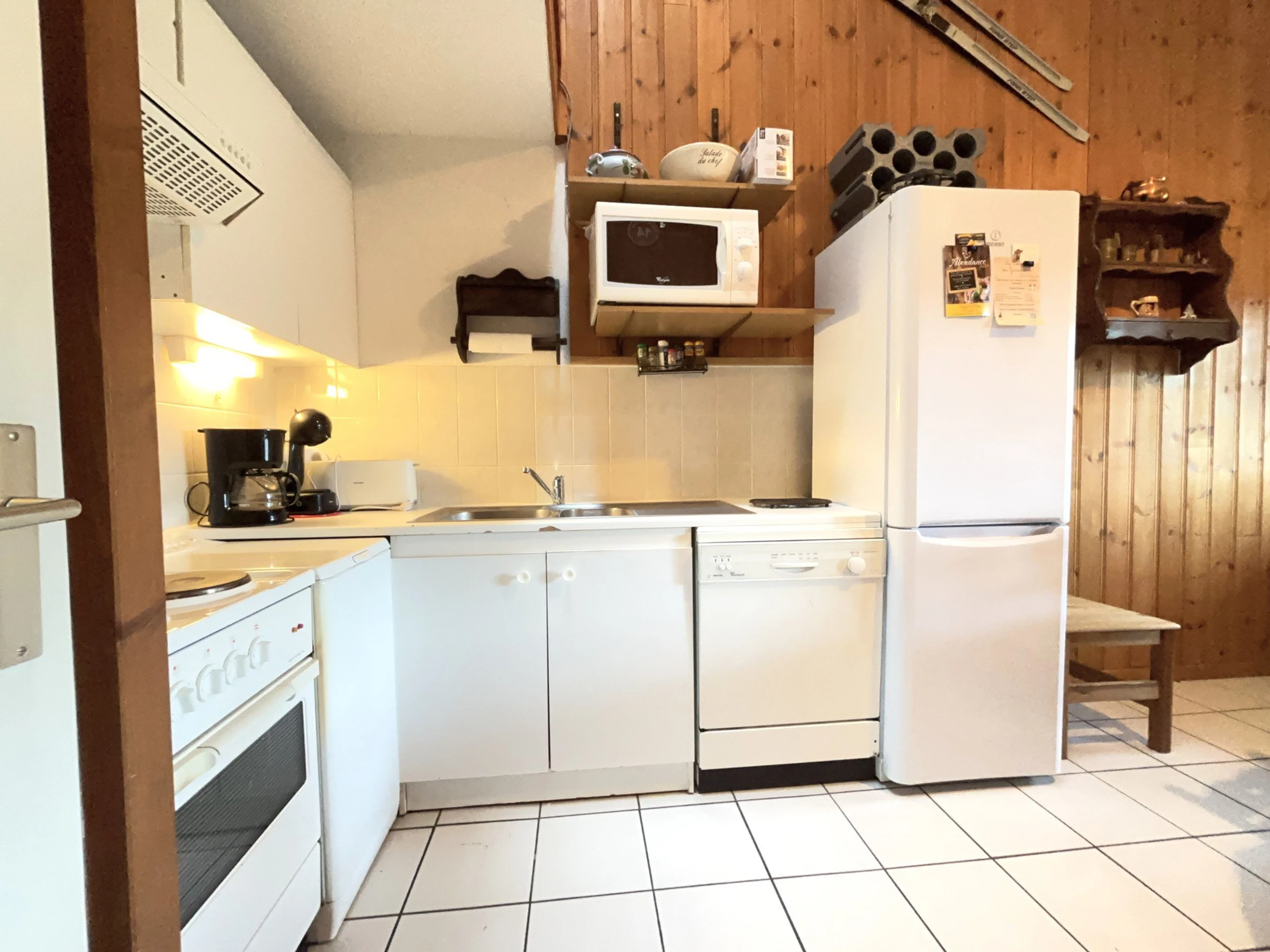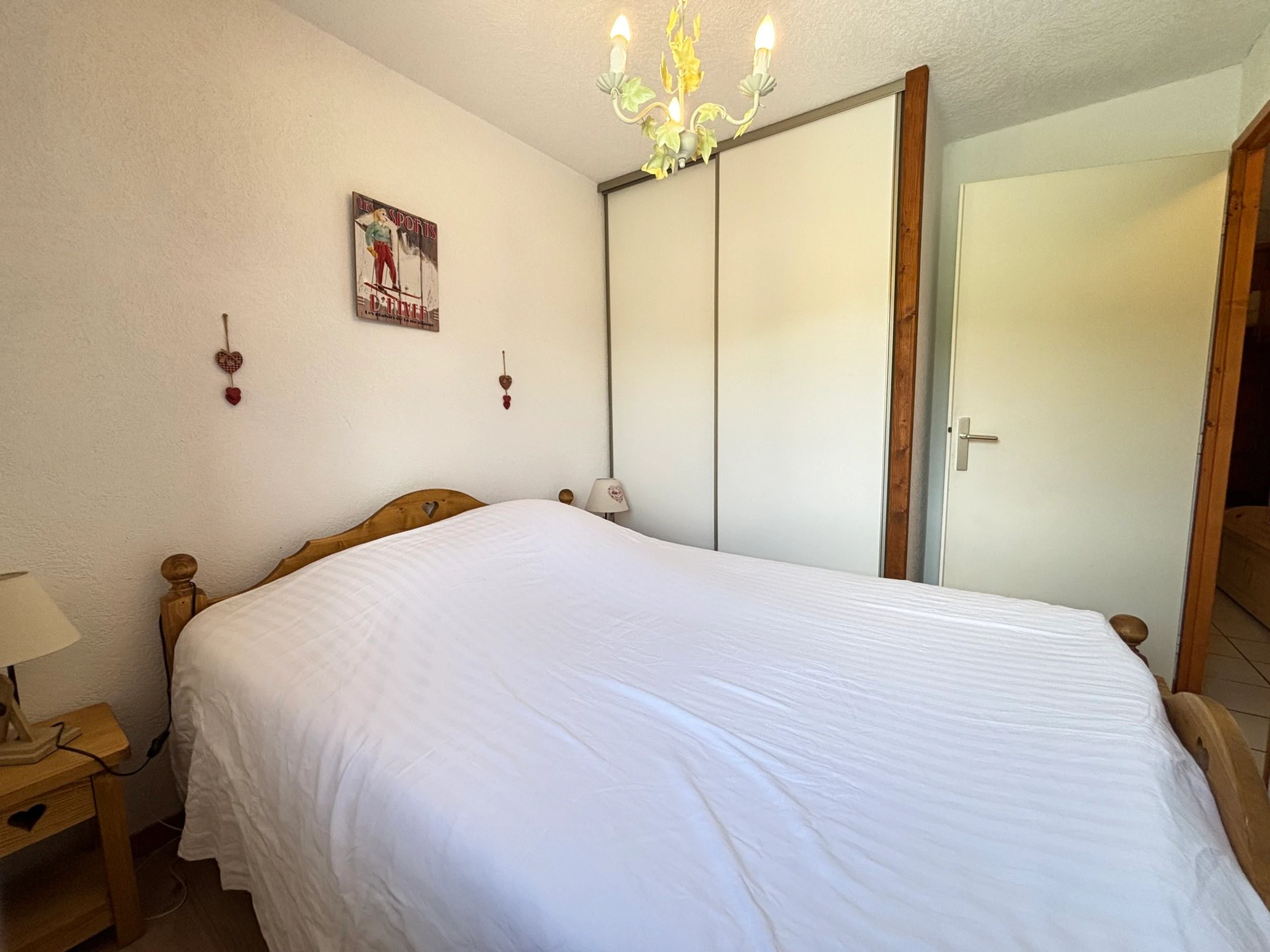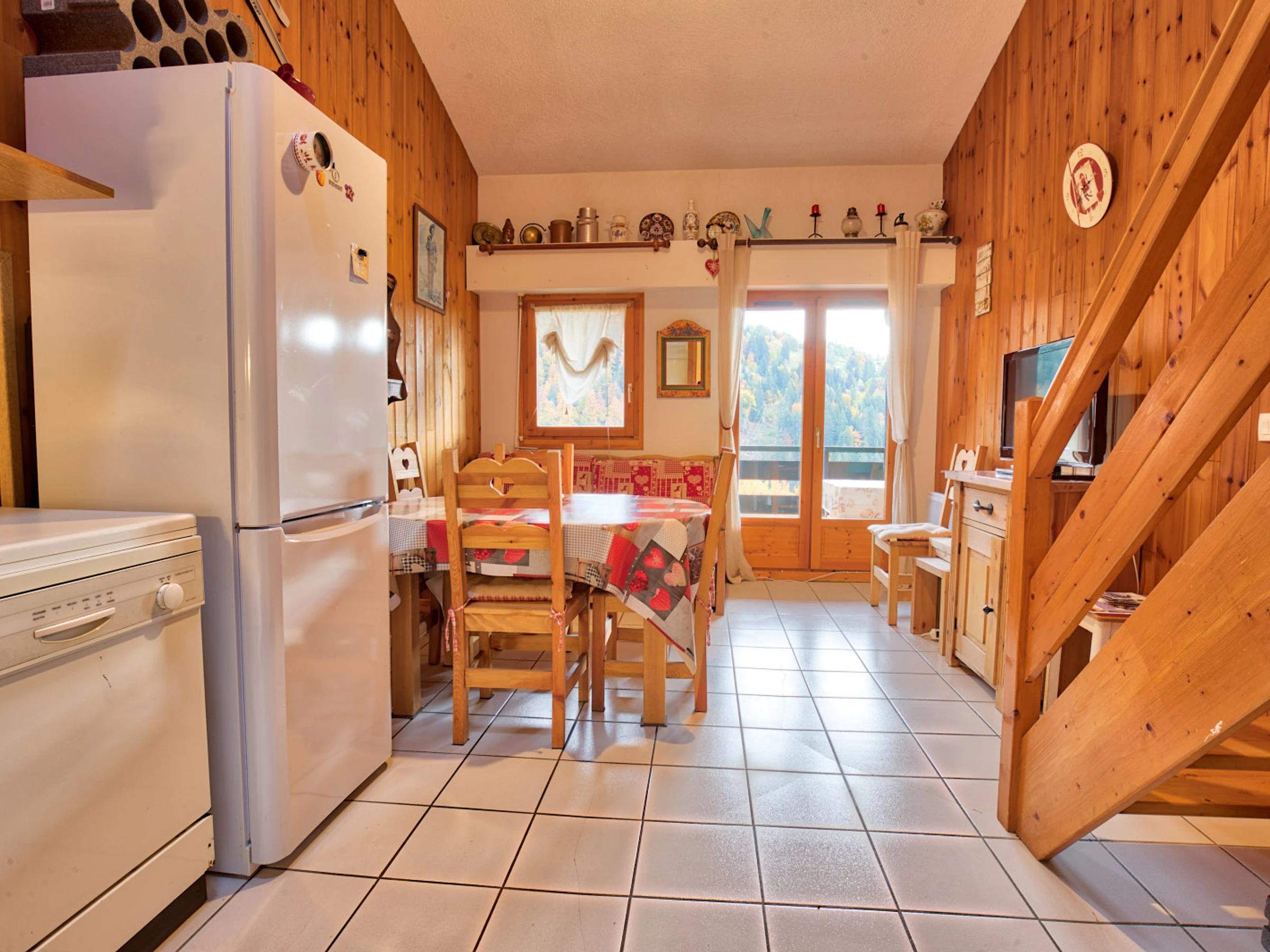 Chaleureux duplex de 42m² + 12.5m²<1.80m au premier étage de cette résidence calme, avec balcon Sud offrant une jolie vue sur le Mont Charvin et la vallée.